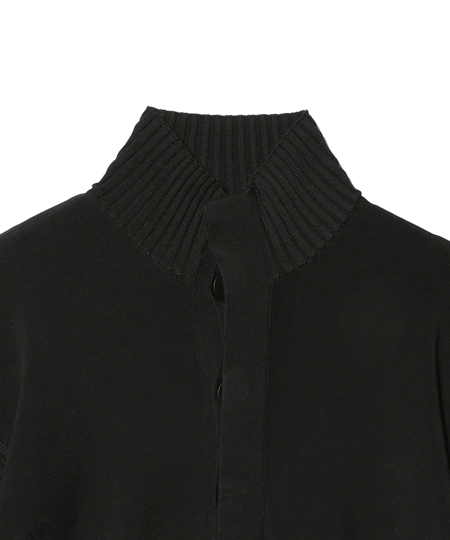 あえて高さを出したハイネックデザインがシンプルな中にモードなニュアンスをプラス。