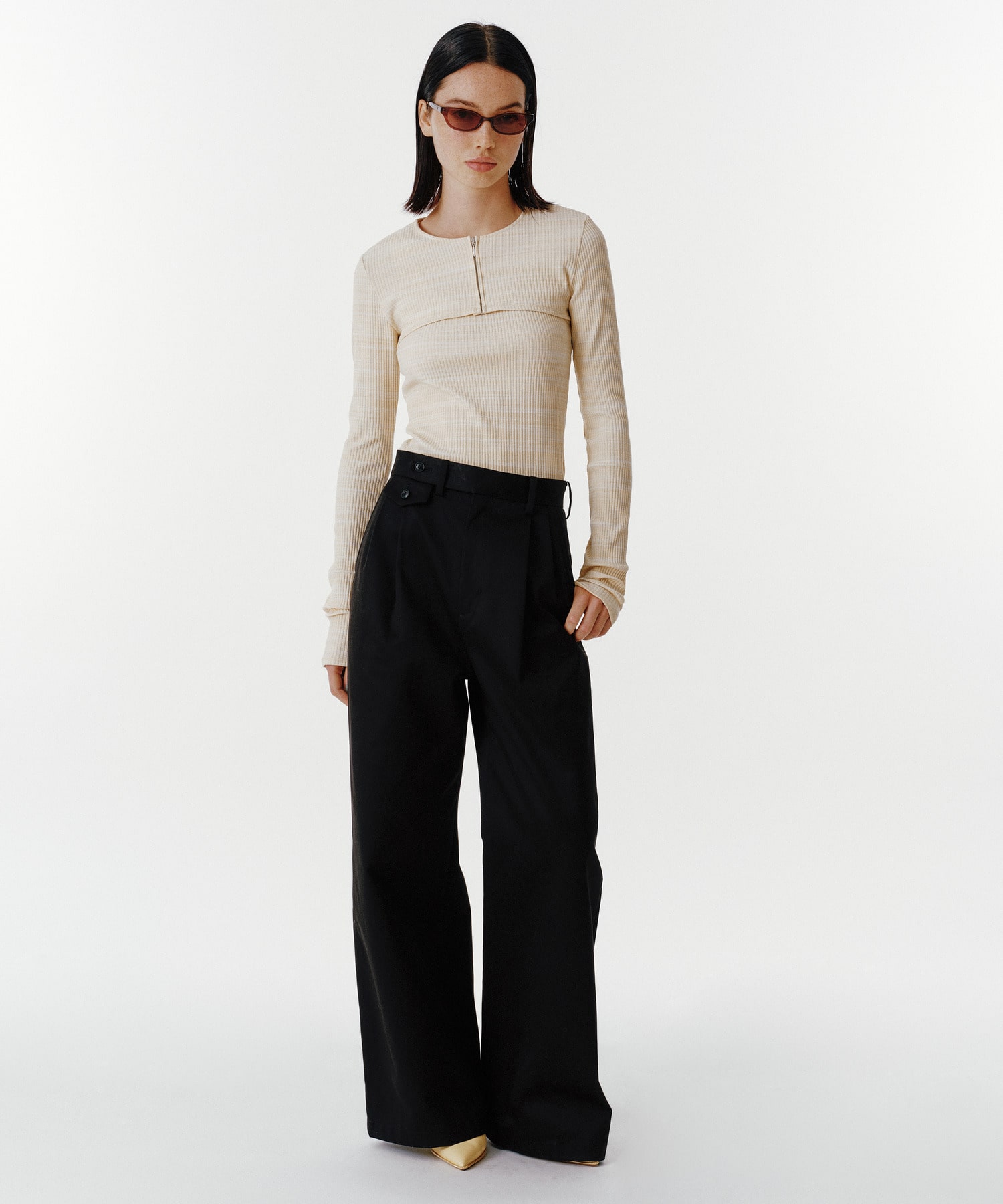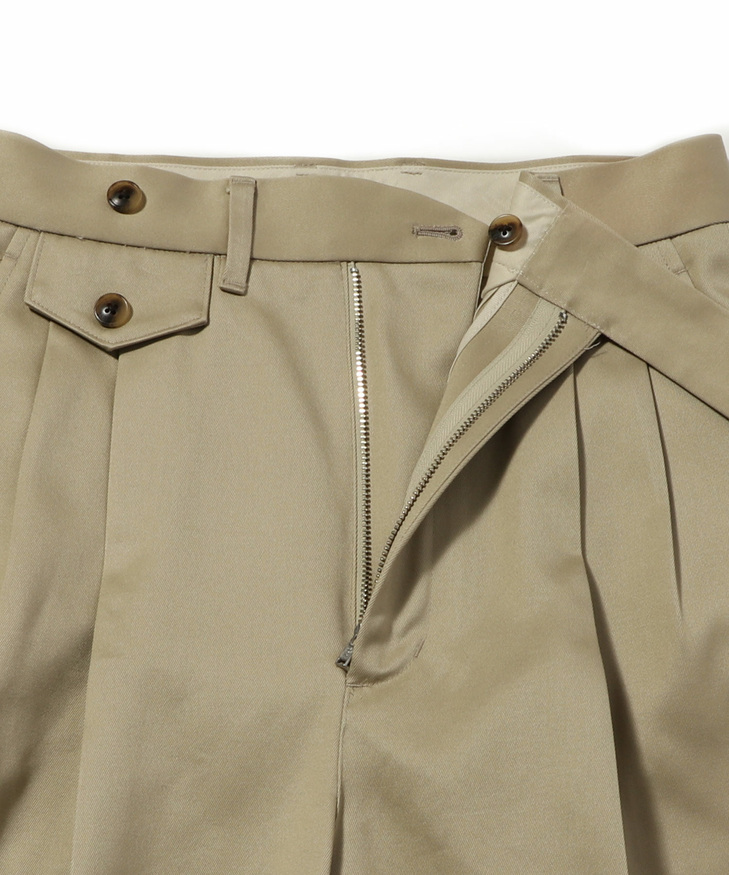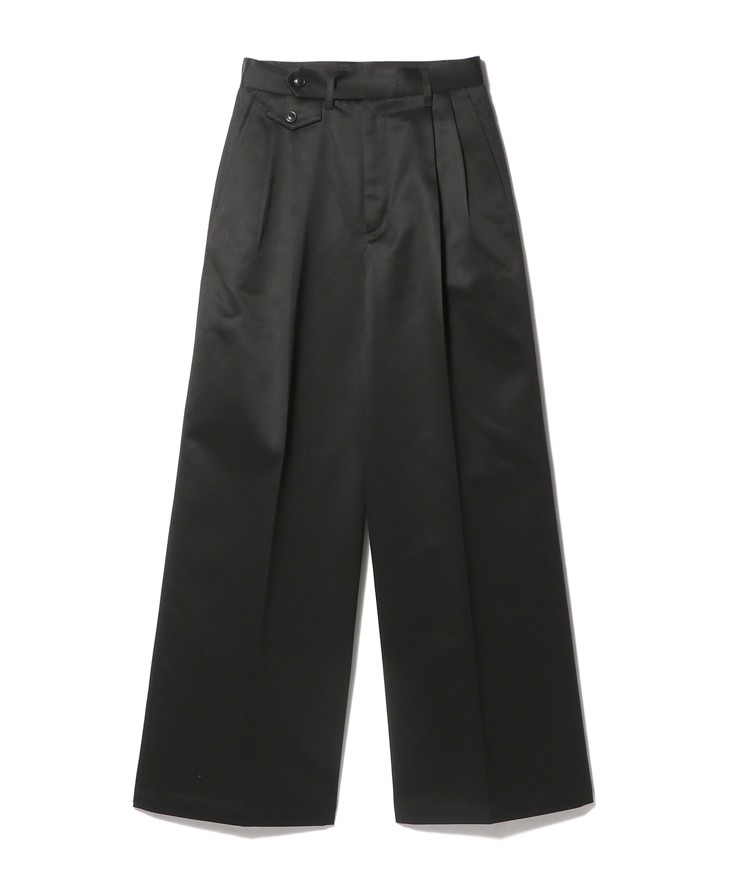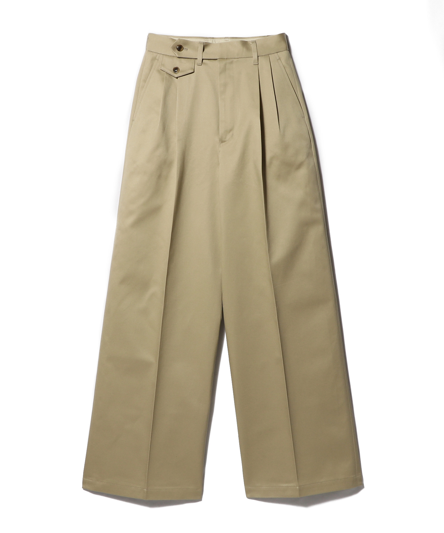 タック入りで腰まわりに程よいゆとりを持たせつつも、ストンと落ちるワイドラインが洗練された印象に。