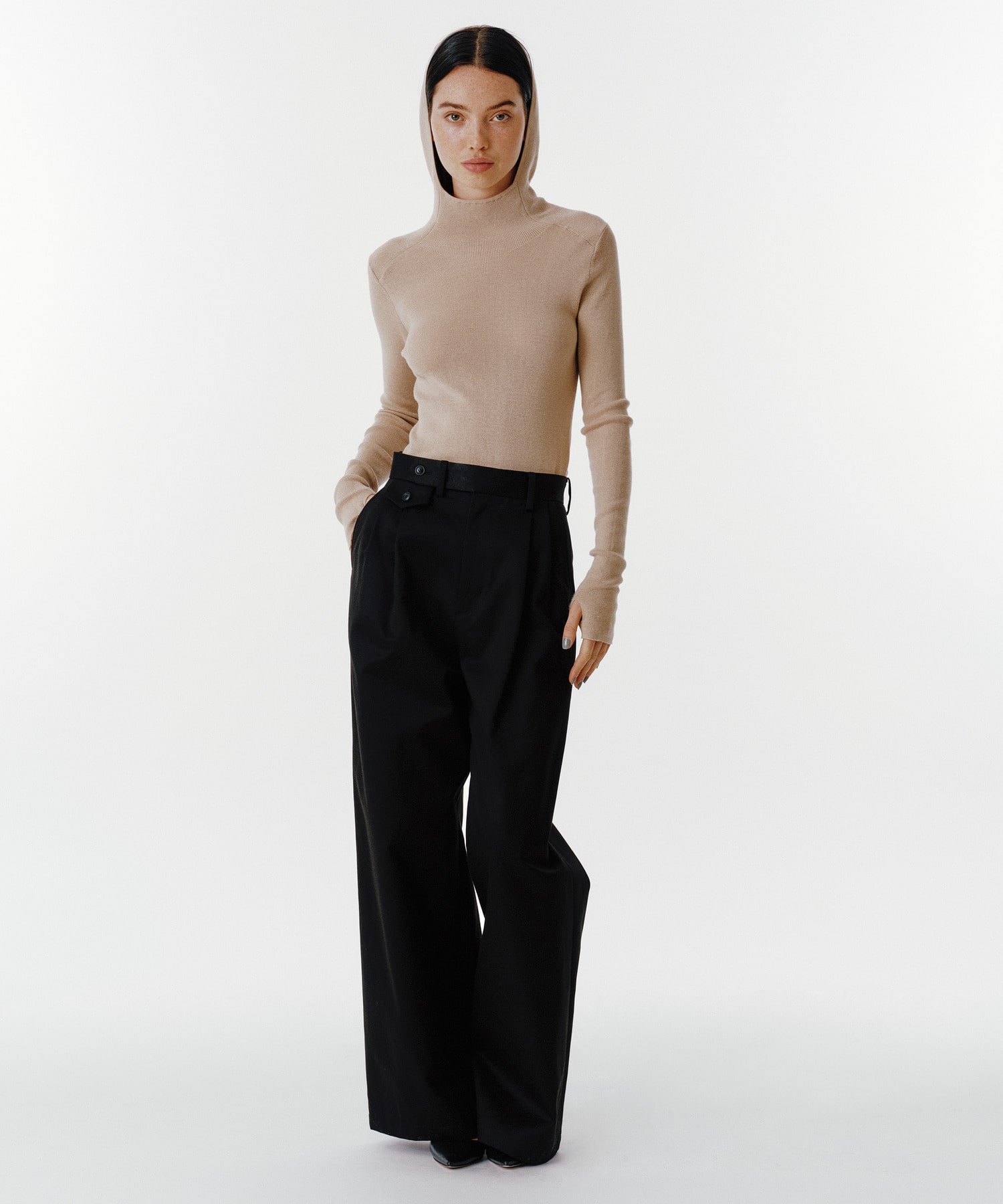 肌にフィットするリブ編みで、美しいシルエットを際立たせながらも快適な着心地を実現します。