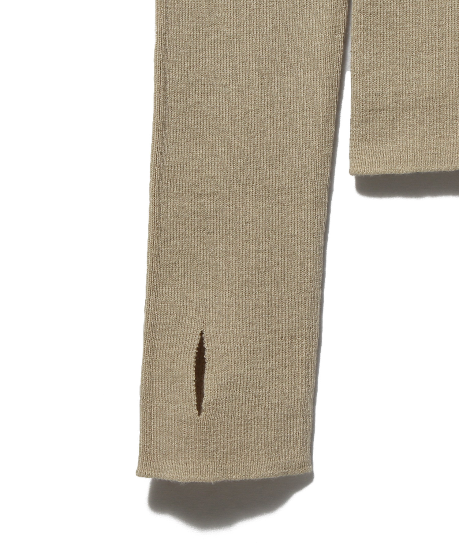 サムホール付きのロングスリーブは、実用性とさりげないモード感をプラス。