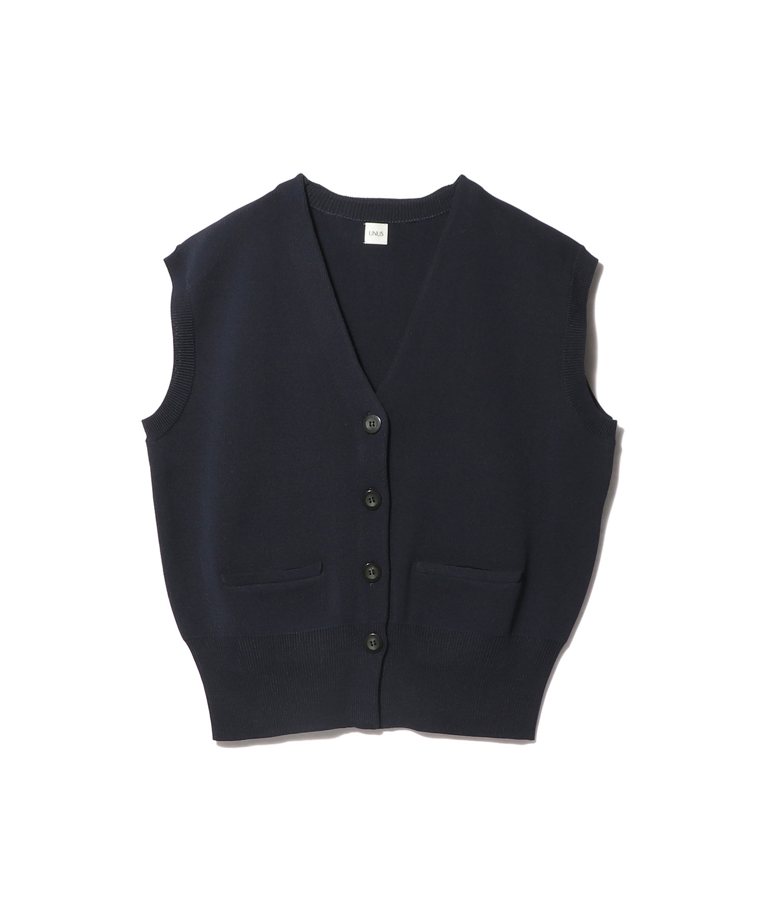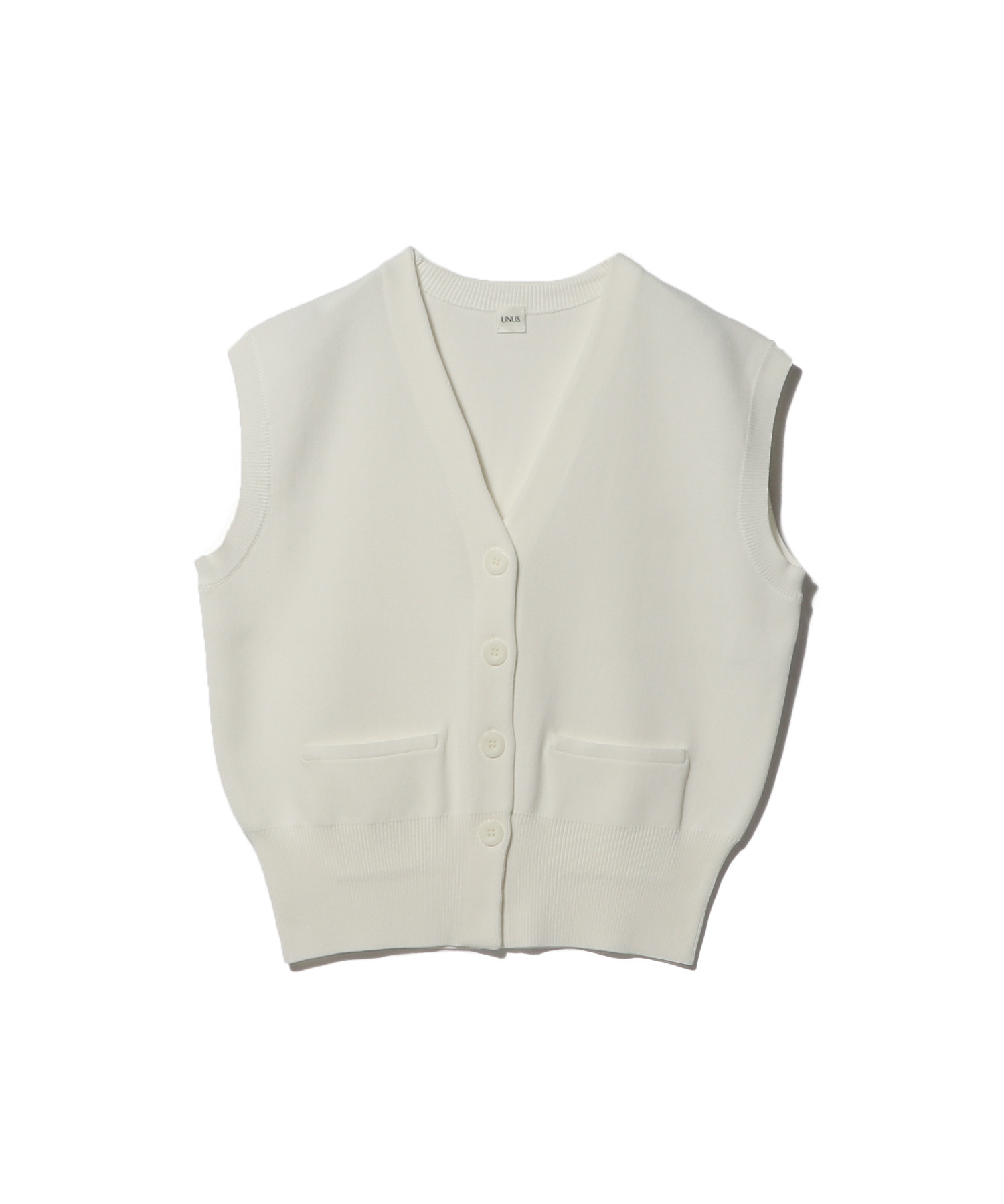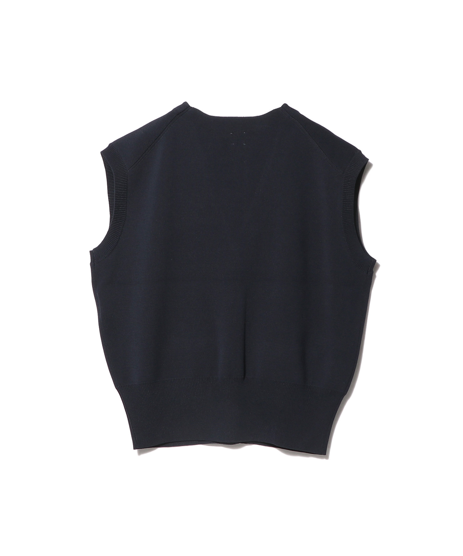 ハリのある編地で立体的なフォルムを描く、ミニマルなニットベスト。