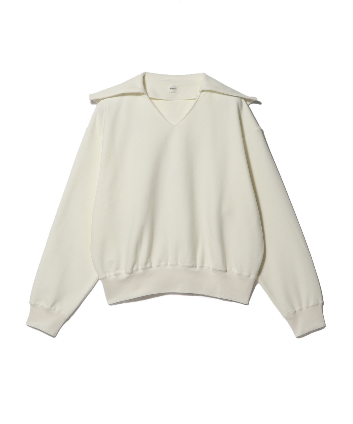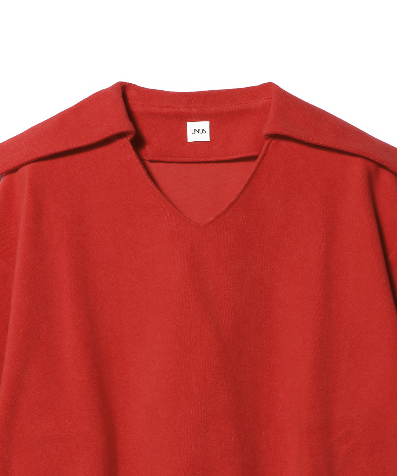 大きめの襟が印象的なスキッパーデザインのスウェット。