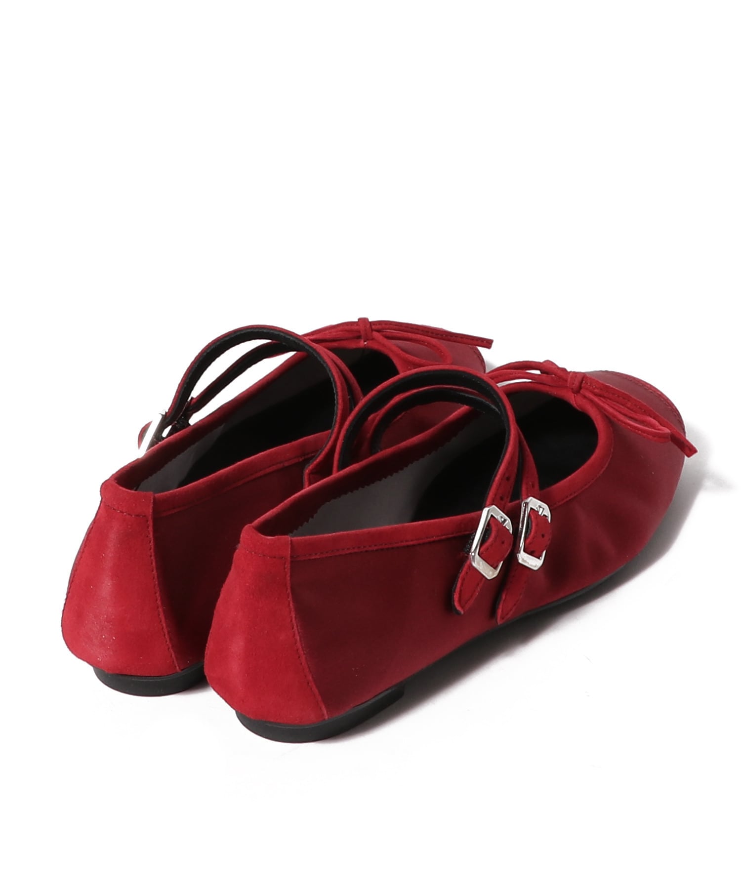 ラウンドトゥのシルエットと快適なラバーソールが特徴です。スエードのリボンがアクセントになり、快適な履き心地を実現する調節可能なダブルストラップで仕上げられています。