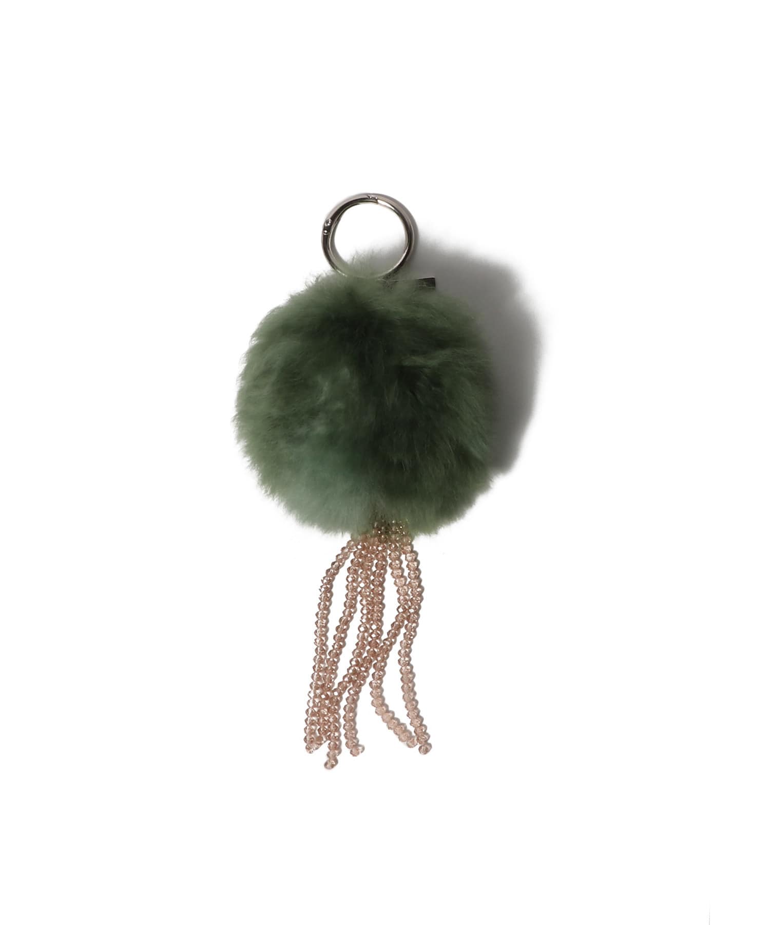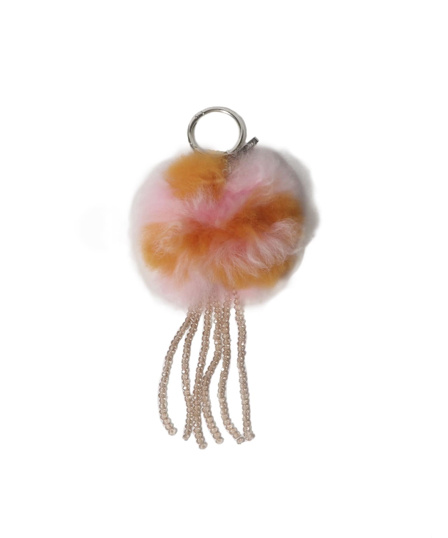 ふわふわのファーとグラスビーズのコントラストが華やかなチャーム。