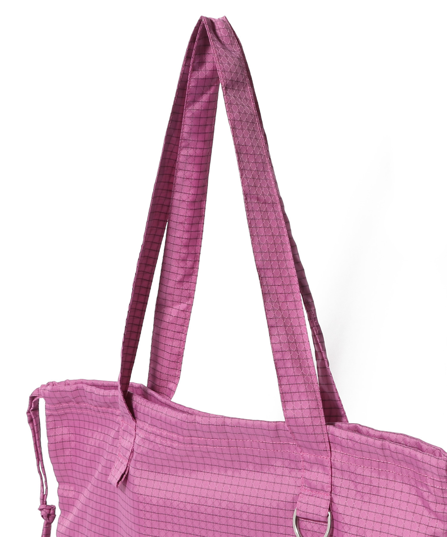 A3サイズがすっぽり入る大きめのシルエットで、本や洋服をたくさん買ってもしっかり収まるサイズ感。撥水ナイロン素材を使用し、鍵やチャーム、サングラスを引っ掛けられるキーリングや、内側には収納できるポケット付きで機能性も抜群です。