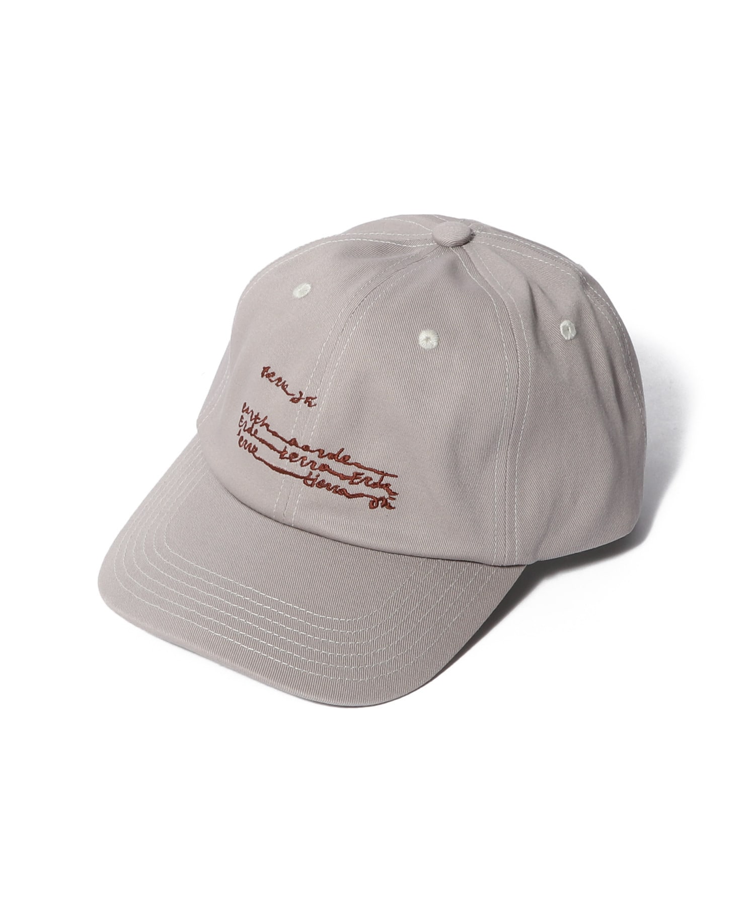 手書きの本のメモや道端のタイル、付箋の走り書きなどからトレースし、ロゴとして刺繍に落とし込んだ“落書きシリーズ”のキャップ。