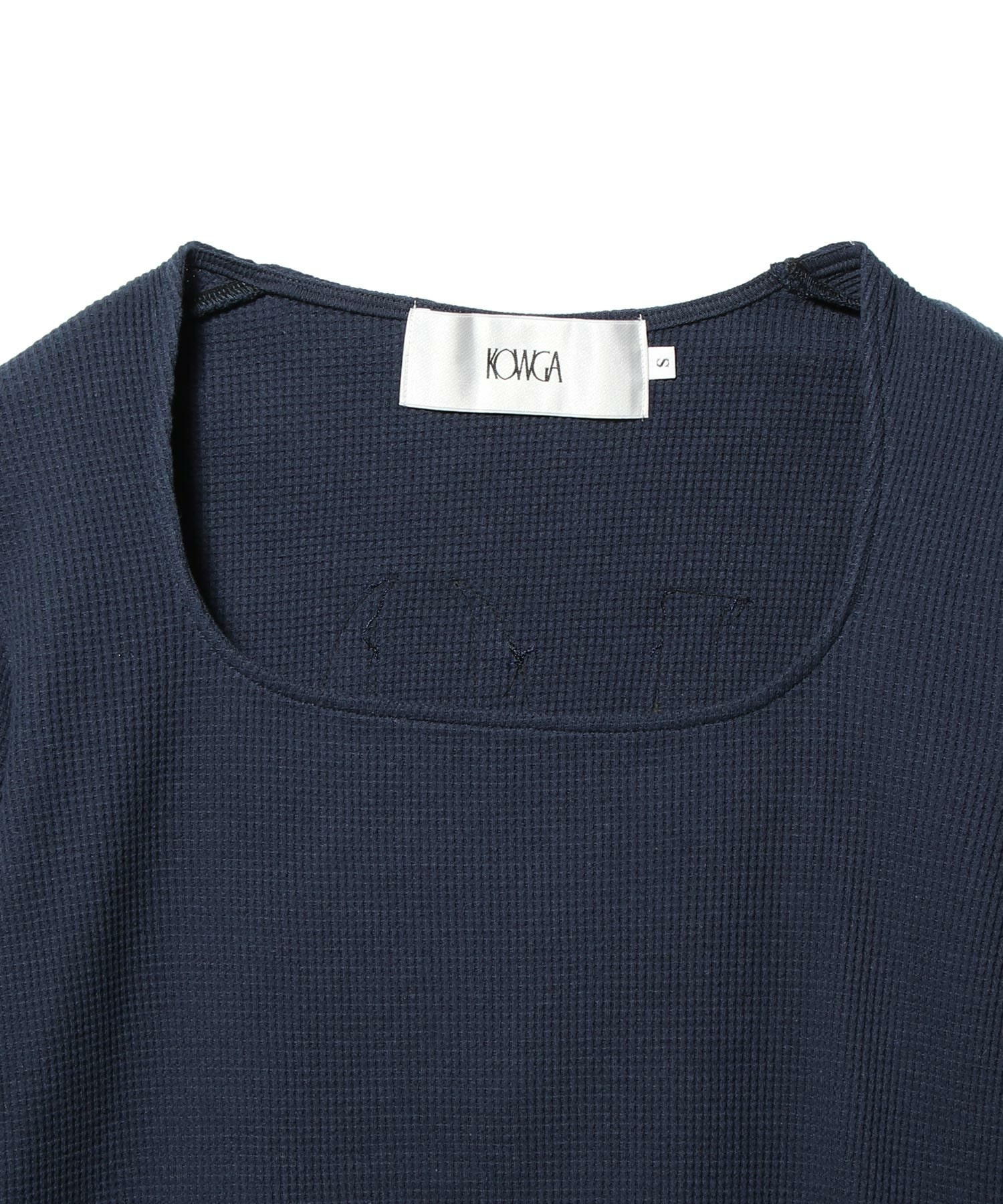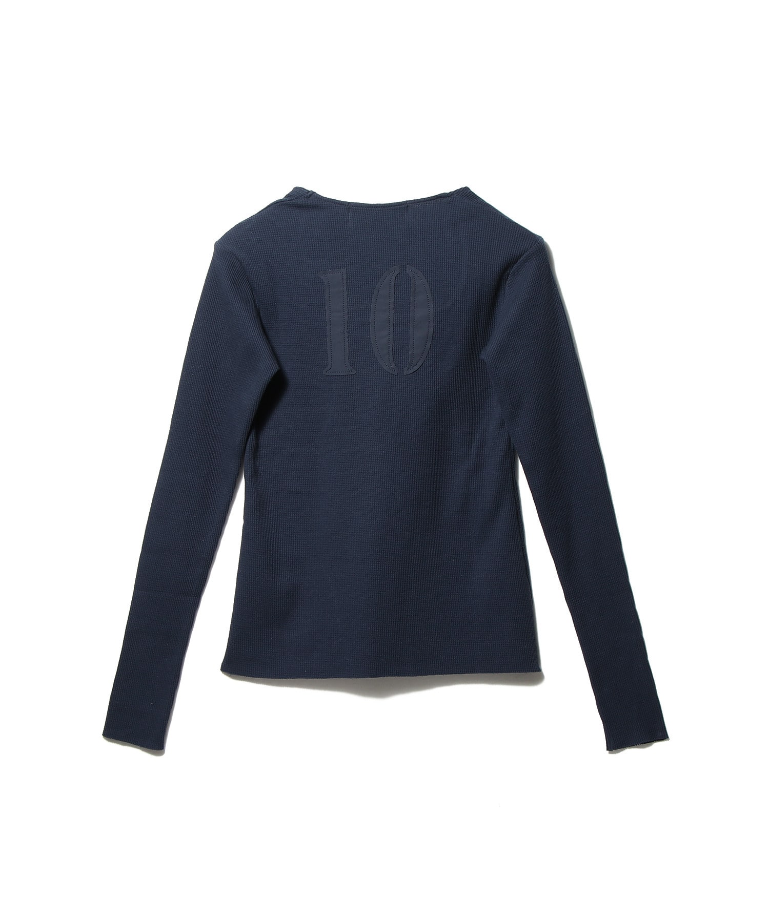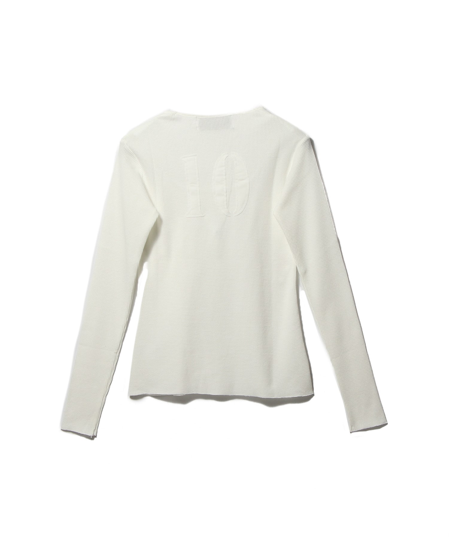 柔らかな質感と身体に沿うタイトで自然な落ち感が特徴です。スクエアネックが首元から胸元にかけて端正なラインを描き、 背面にはナンバリングを配置しています。