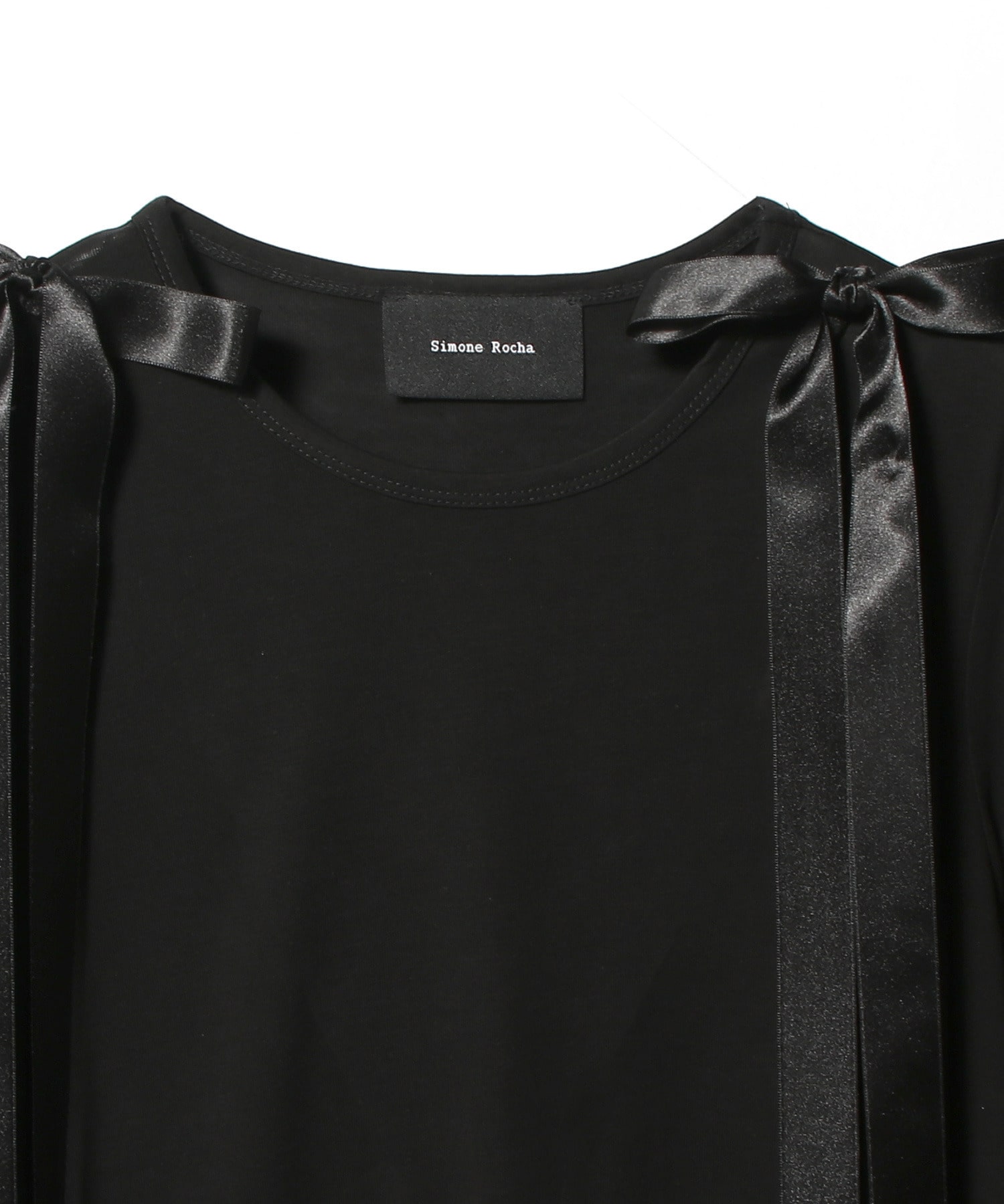 肩のリボンモチーフがポイントのロングスリーブカットソー。
