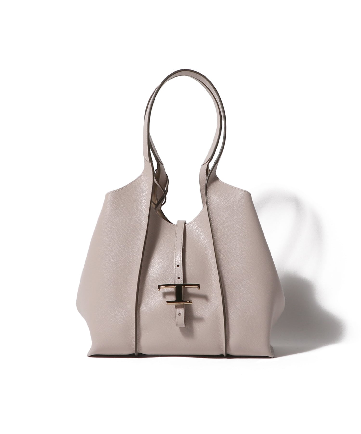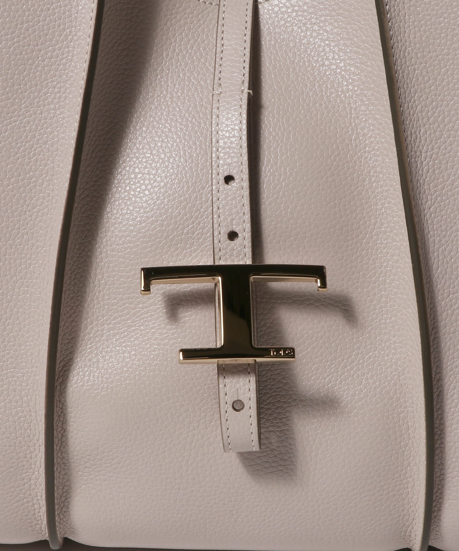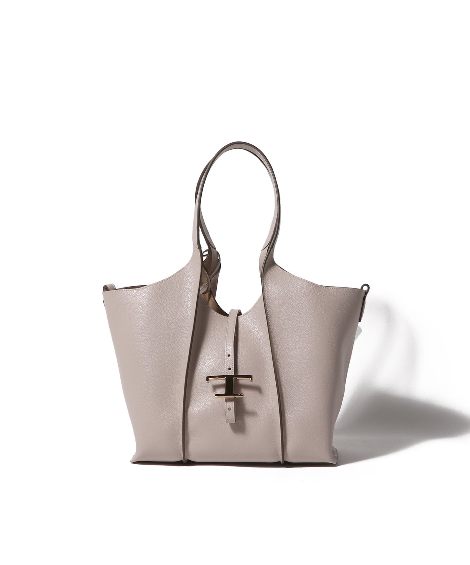 滑らかな表面と控えめな光沢感が、装いにエレガンスを添えます。ブランドを象徴する「T タイムレス」メタルペンダントがアクセントとなり、上品な存在感を放つデザインです。