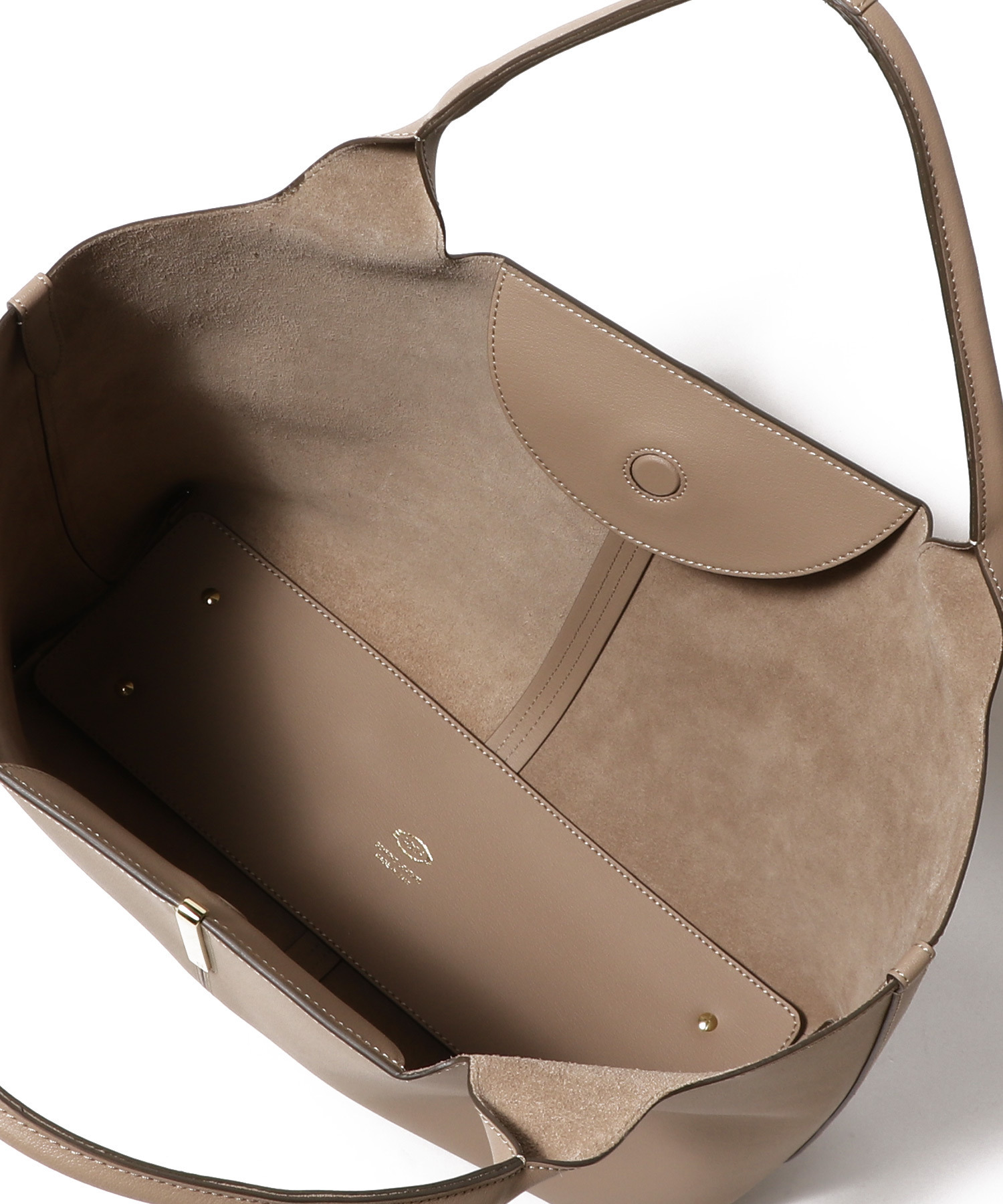 フロントにロゴ入りのメタルバーアクセサリーとマグネットクロージャーを合わせた、タイムレスで洗練された佇まいの一品。