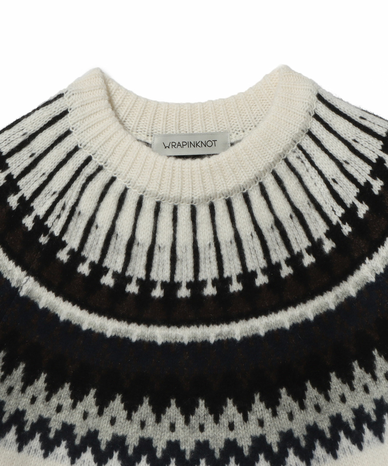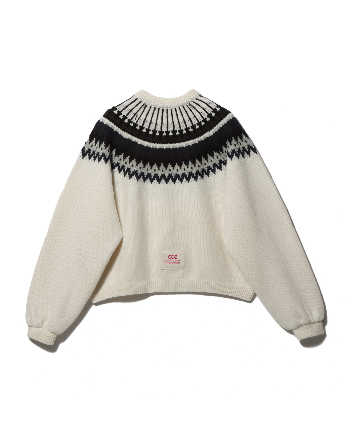懐かしいノルディックセーターを、短丈でバルーン袖の可愛いシルエットバランスに落とし込んだニットプルオーバー。