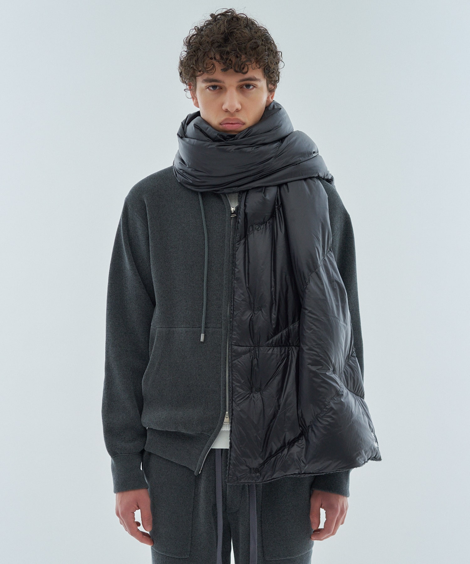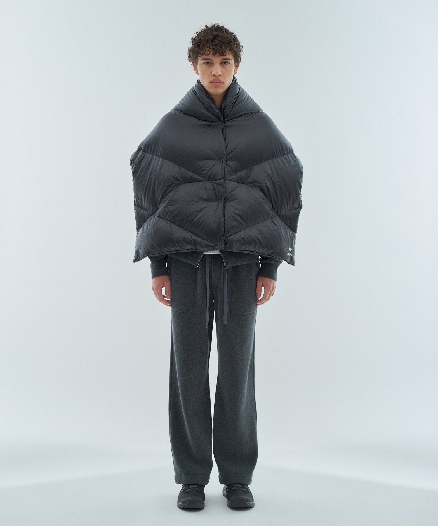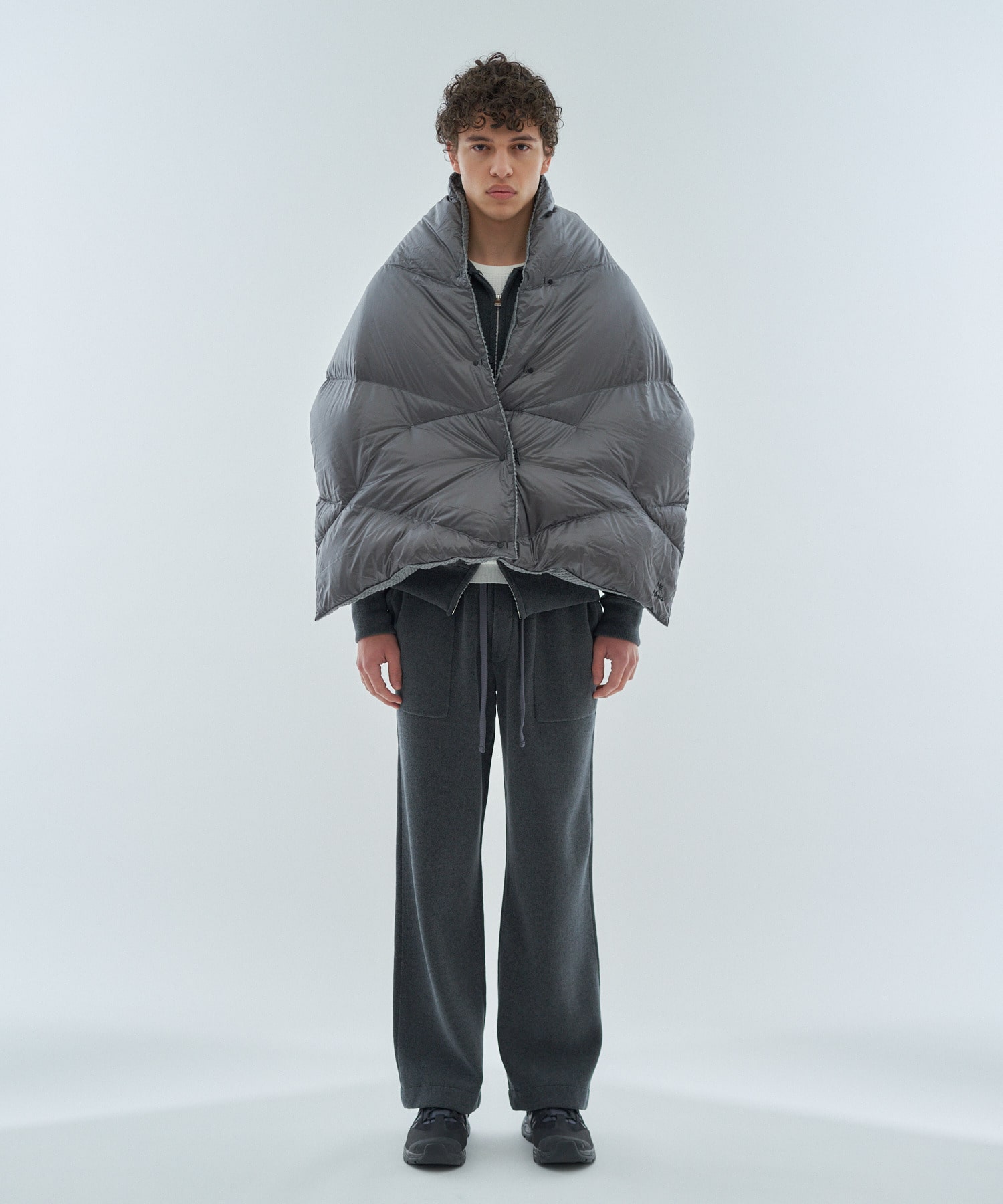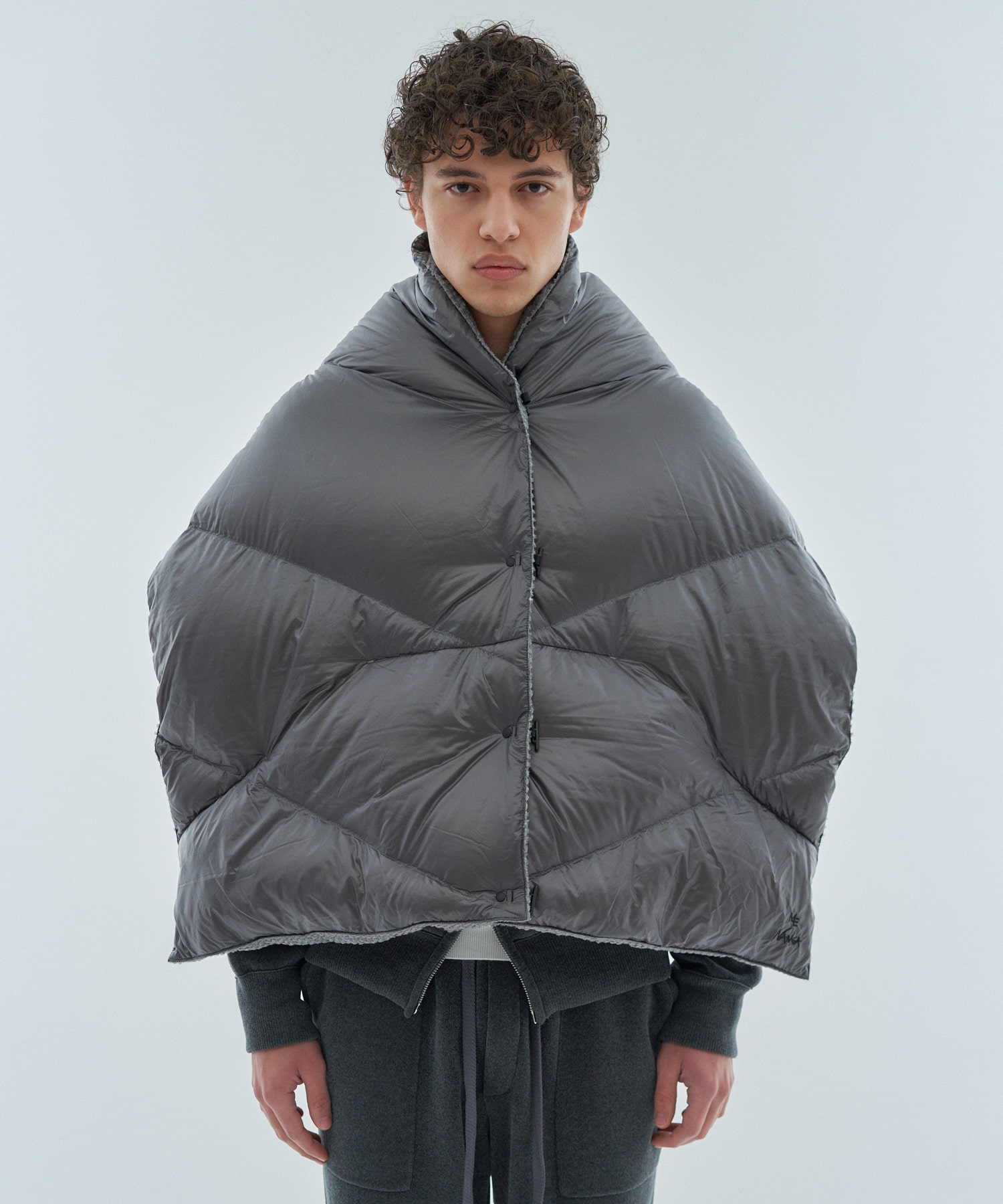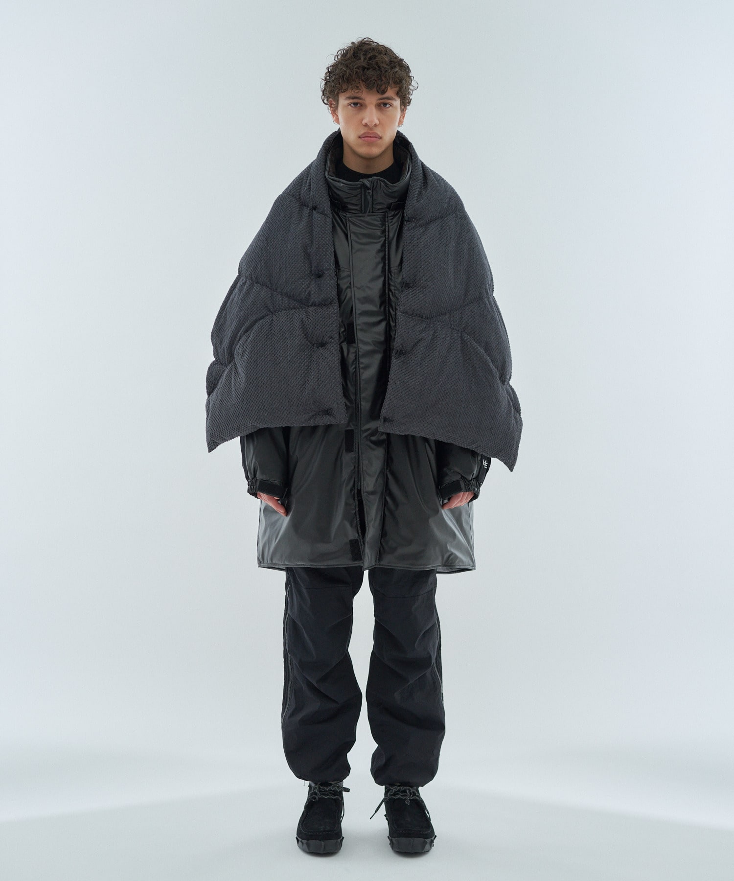 NANGA × MINOTAUR INST. for ESTNATION コラボレーションによる大判サイズのダウンポンチョマフラー。