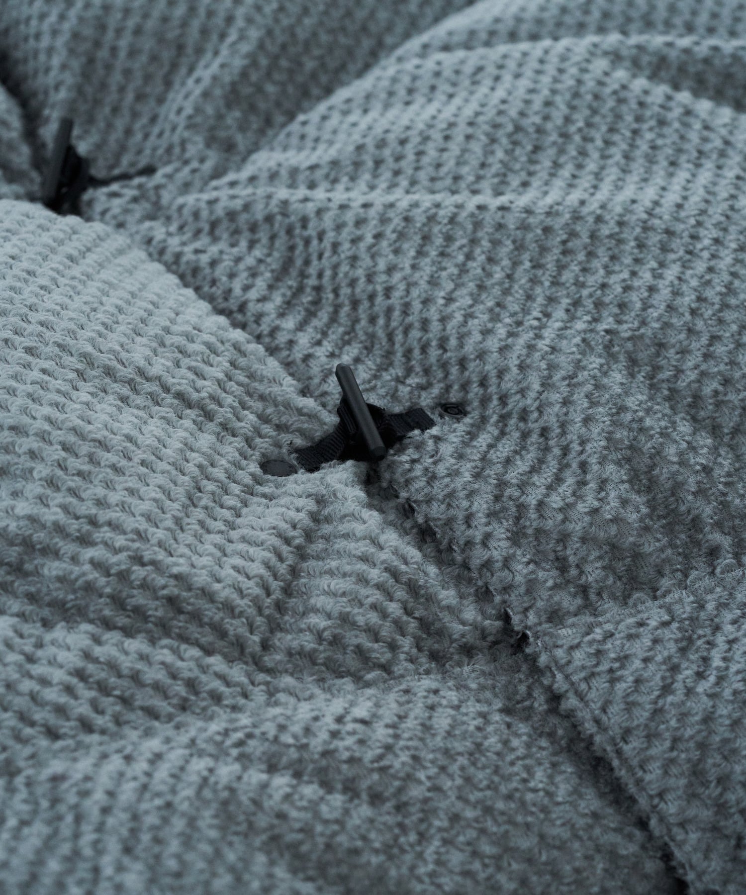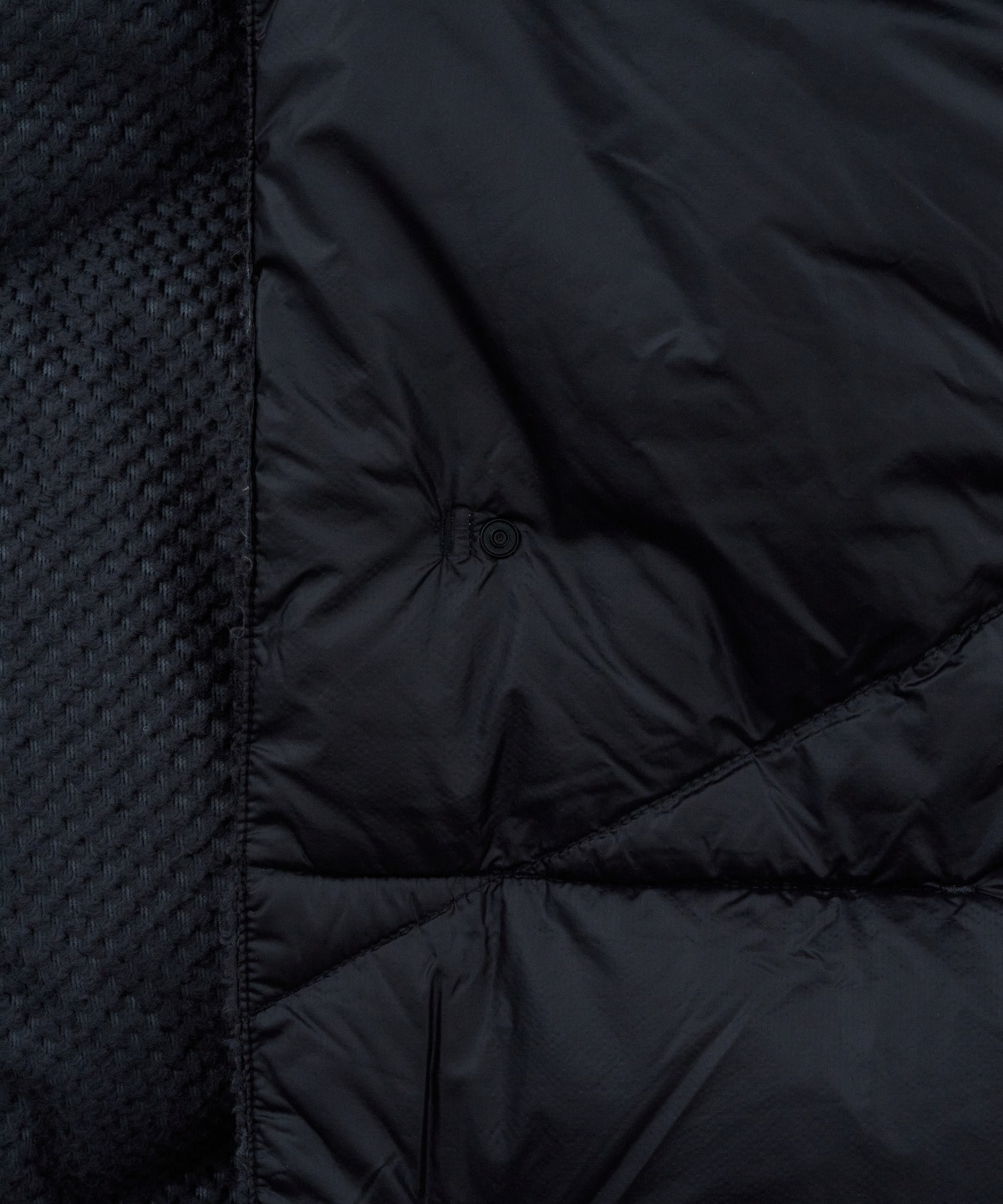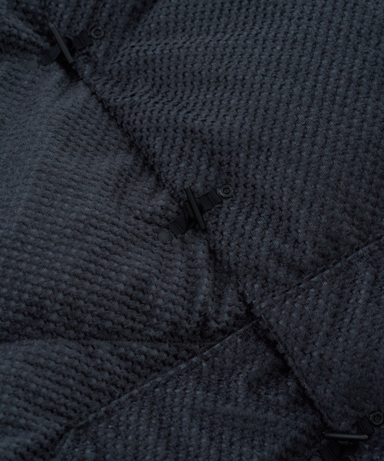 タウンユースからアウトドアシーンまで幅広く対応し、インドアではブランケットとしても使用可能。高い汎用性を備えた、冬の防寒に欠かせない一枚です。