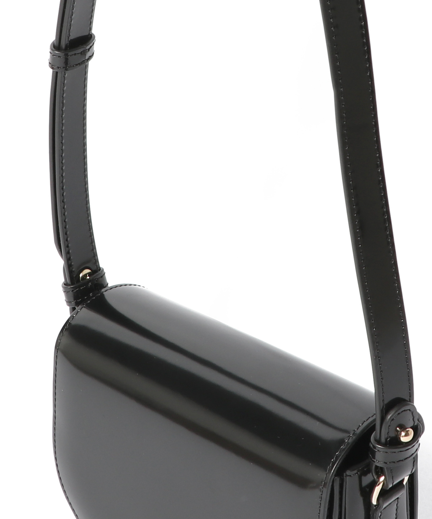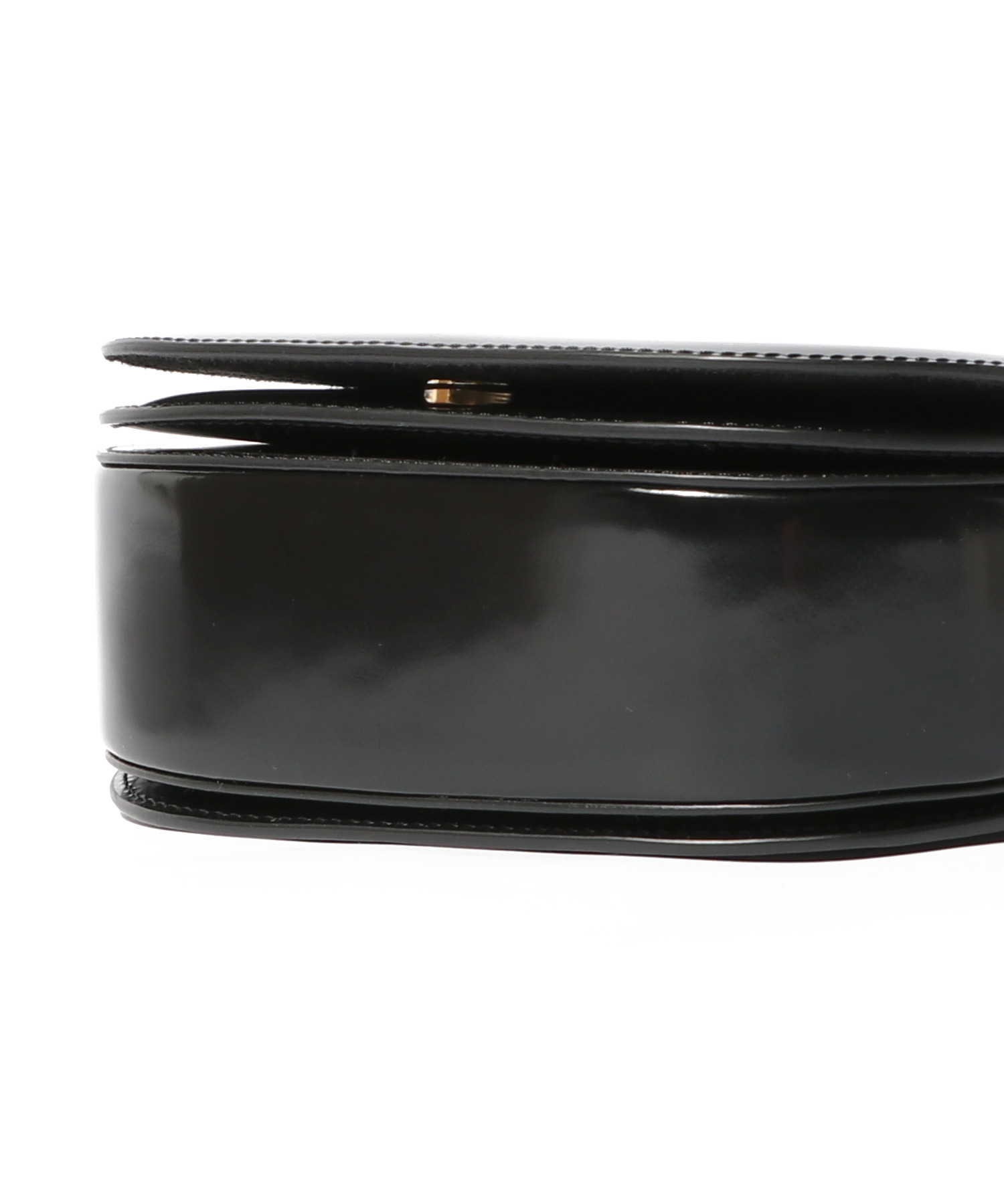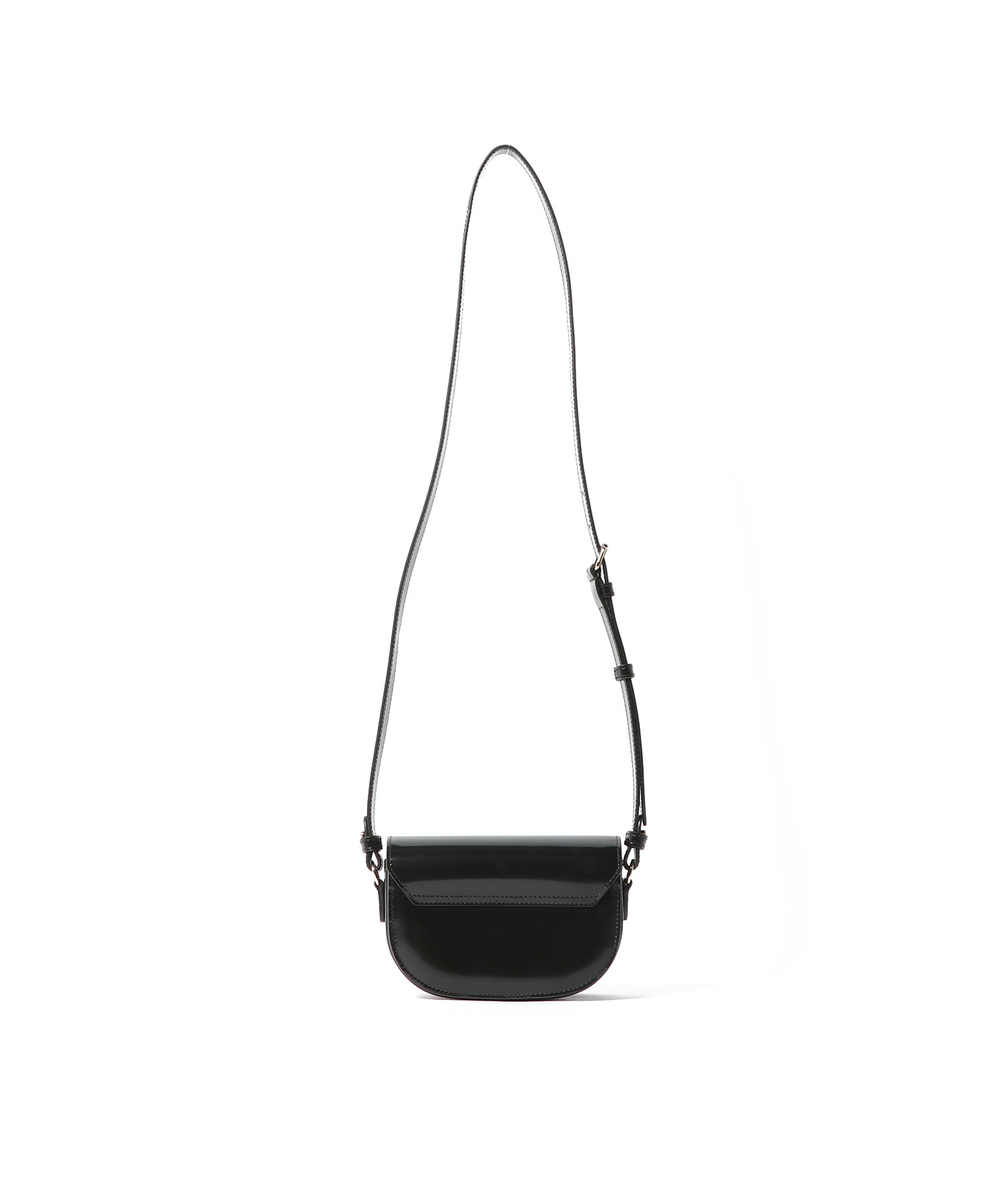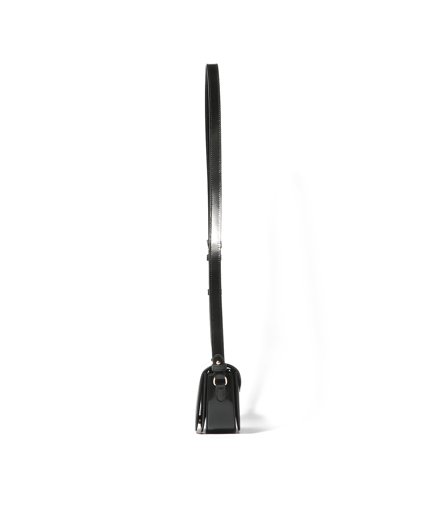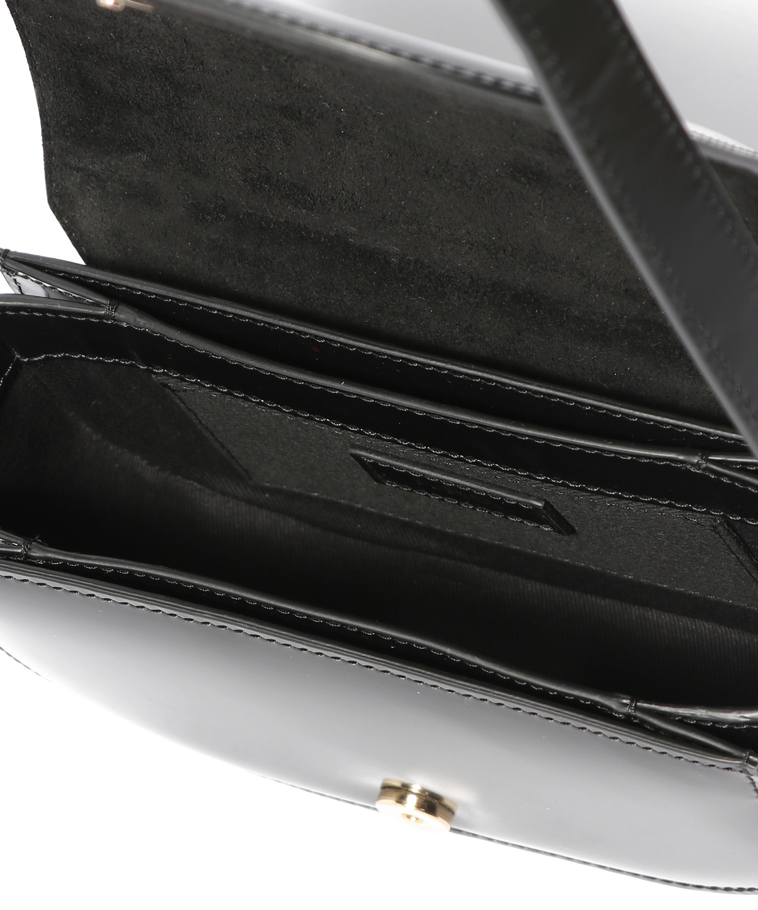 グレイズドレザーのラージフラップ付スモールバッグ。