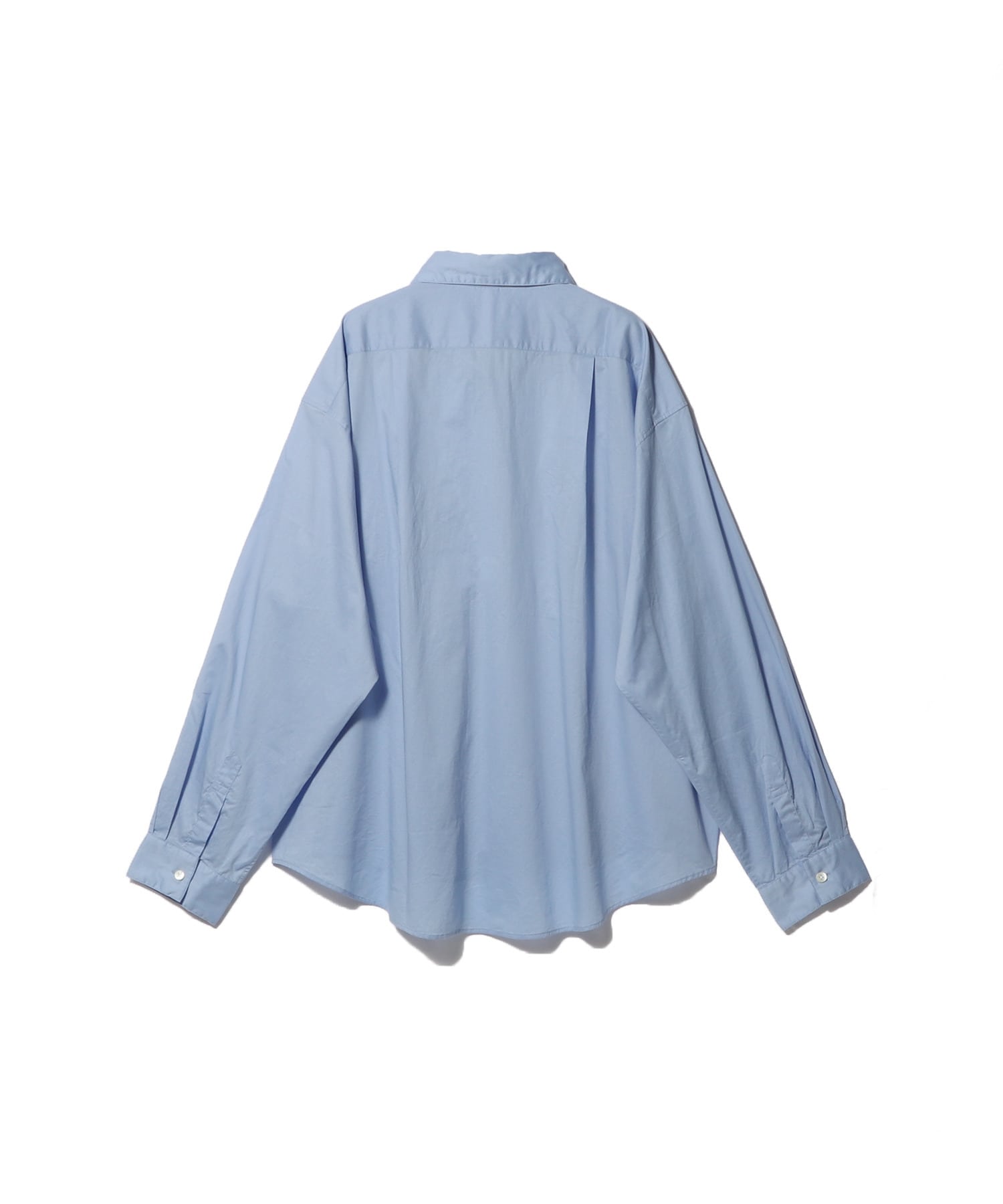 しっかりとした生地感とコットンのクリーンな雰囲気が、オーバーサイズのデザインと調和し、首元の開きやポケット位置、脇下の分量の違いを美しく際立たせます。