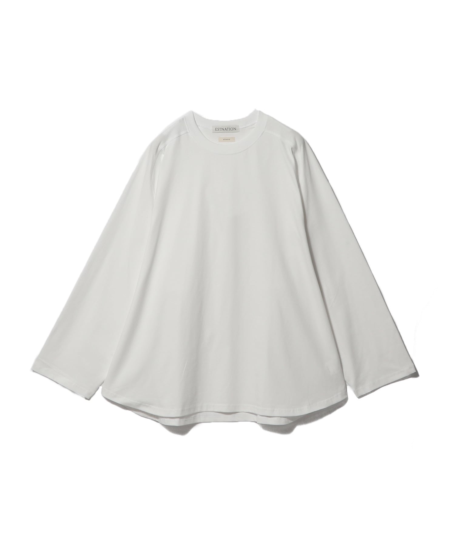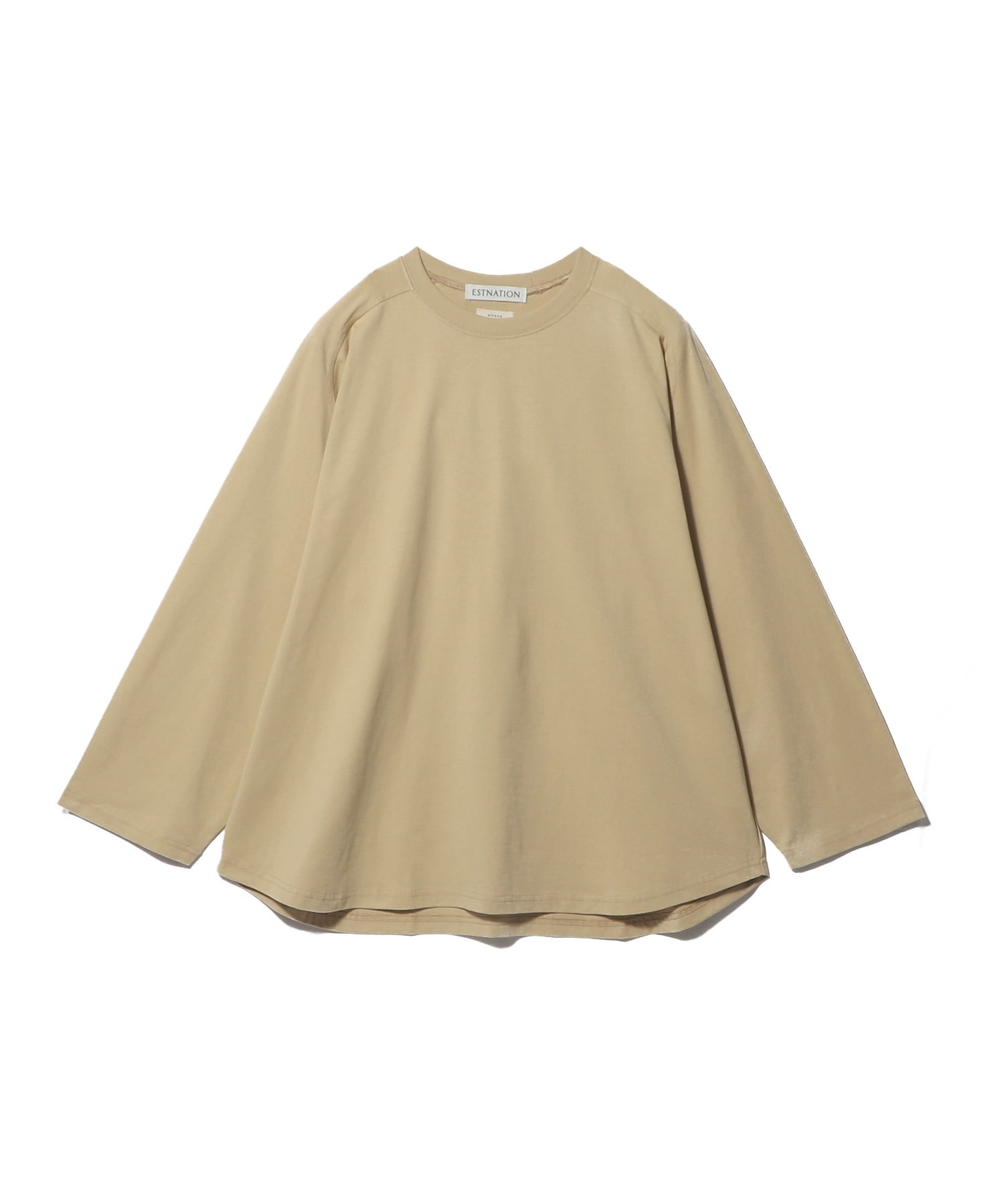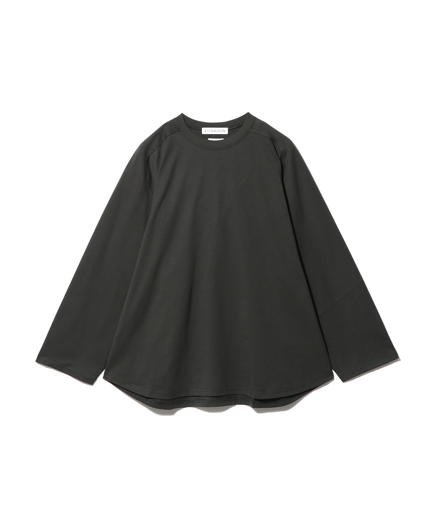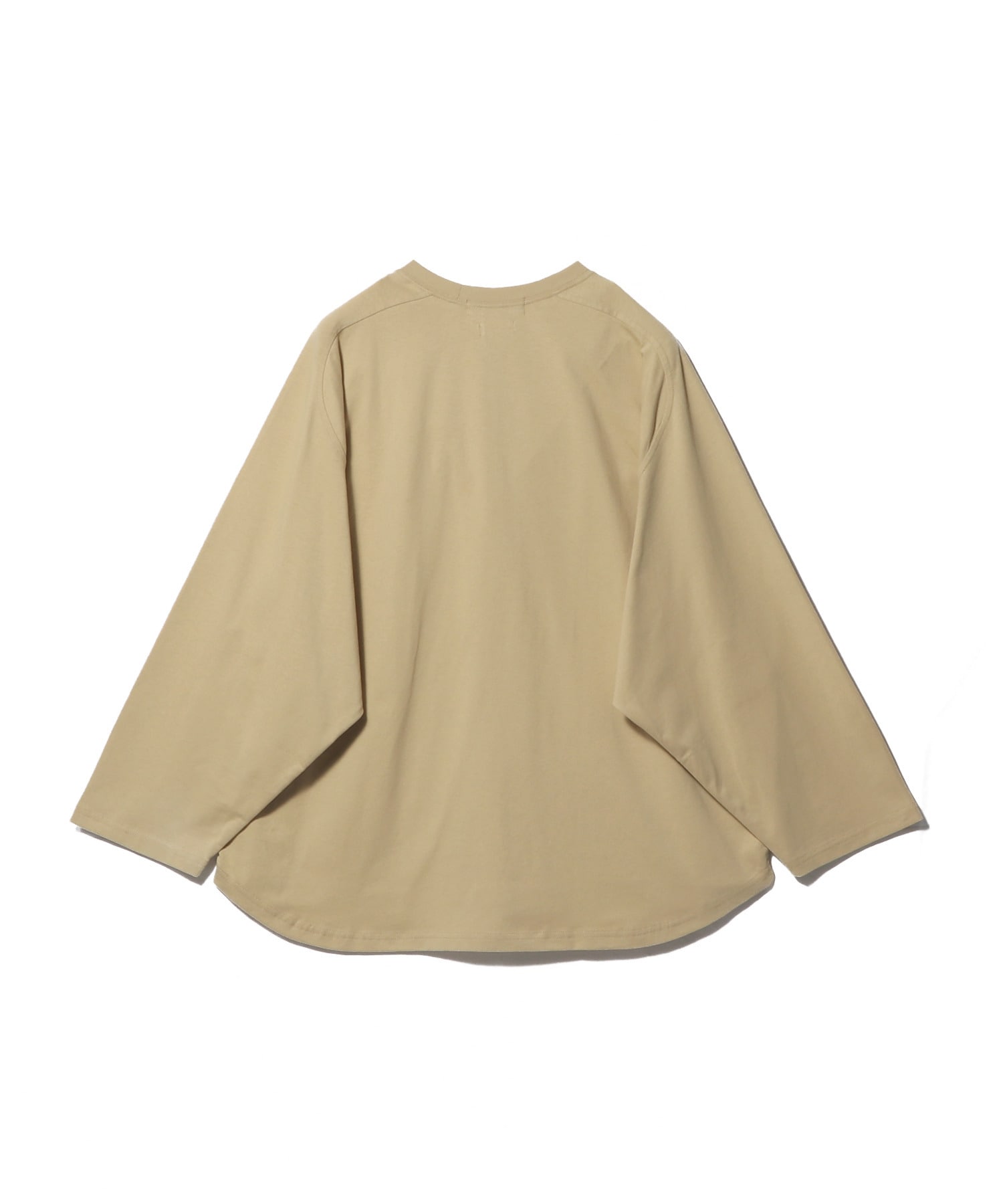 適度なゆとりのあるシルエットと、ラグランスリーブでミニマルながら落ち着いた印象に仕上げています。1枚着でもインナーでも活躍するベーシックアイテムです。