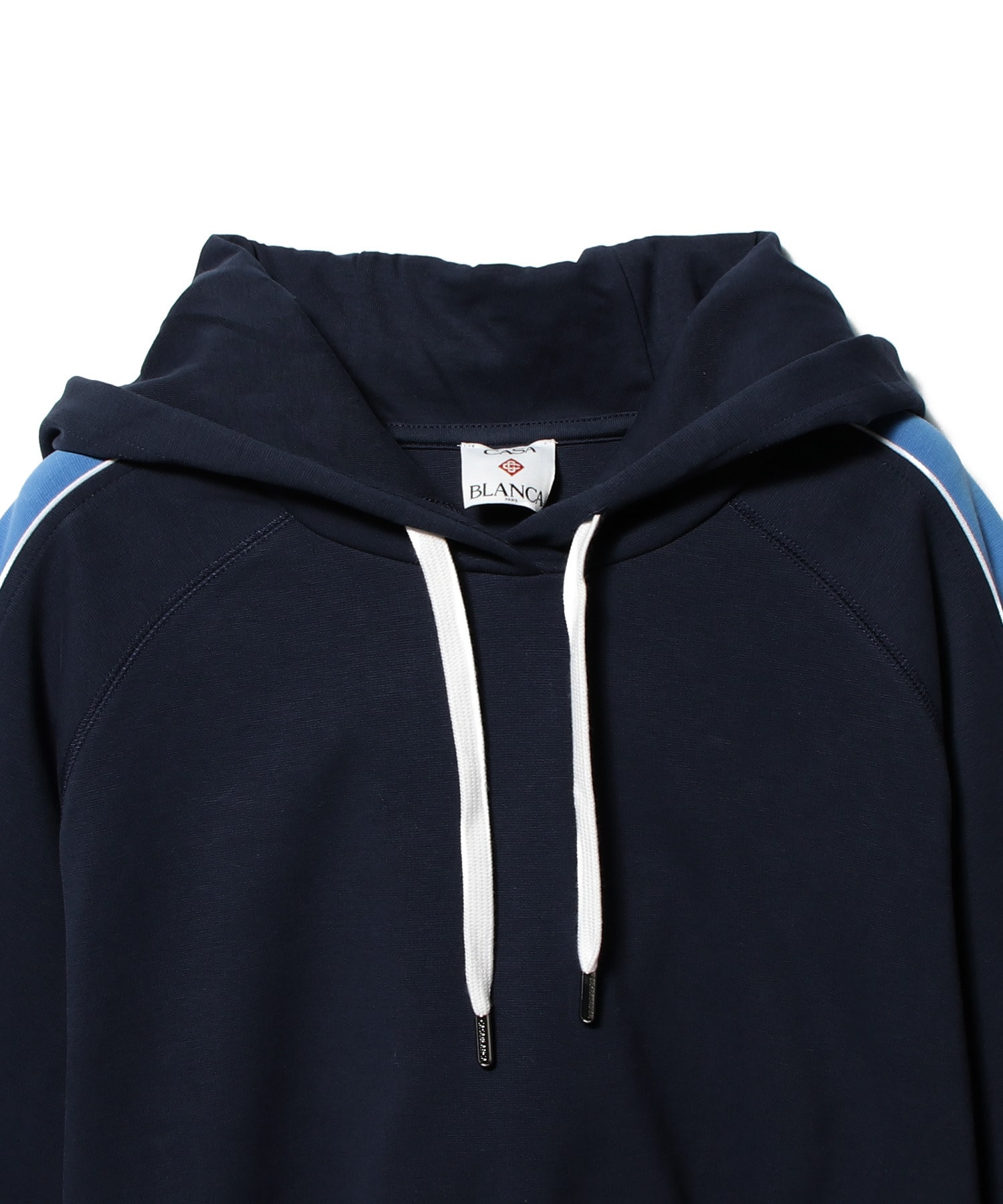 ネイビーにブルーのライン配色がポイントのパーカー。