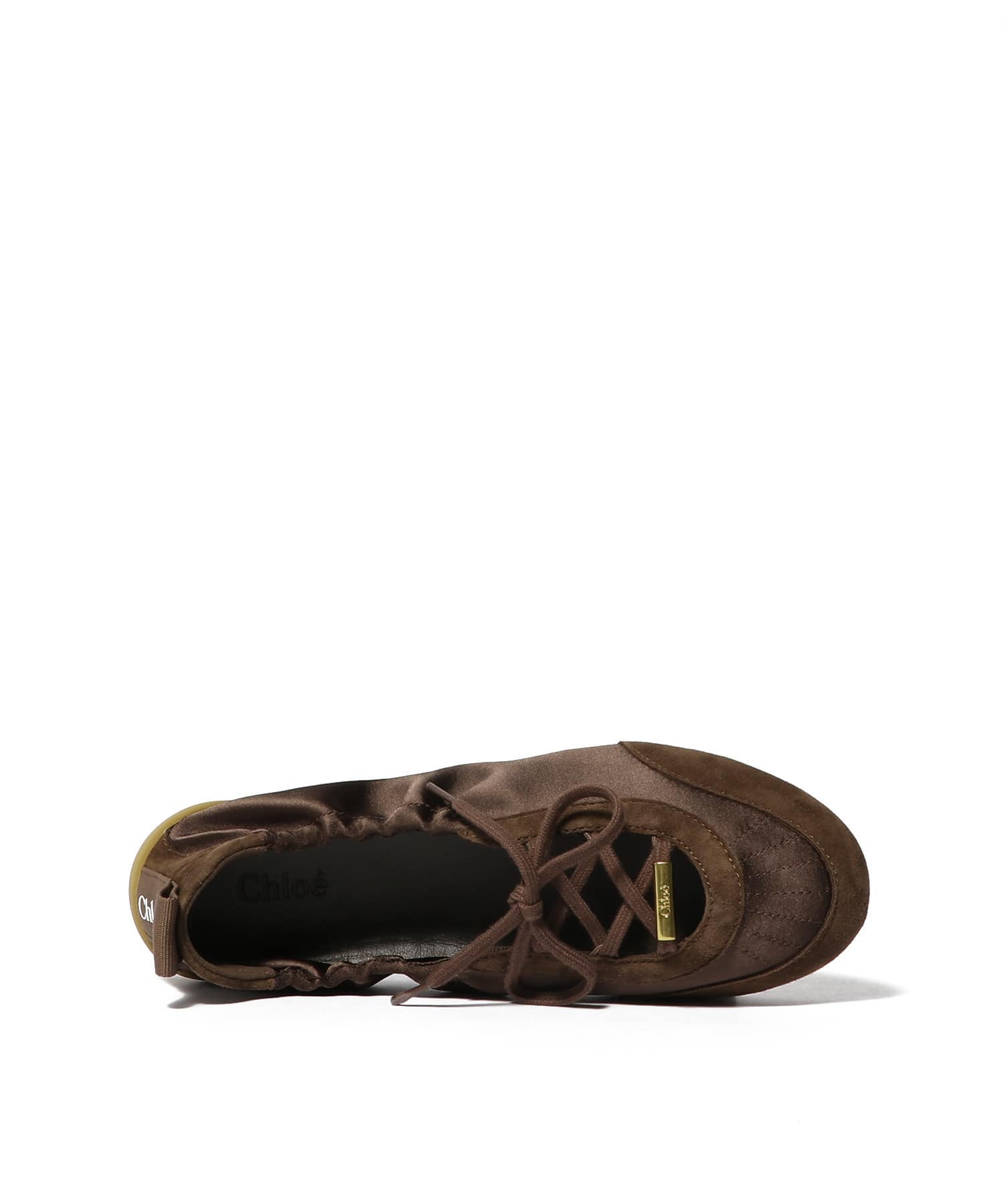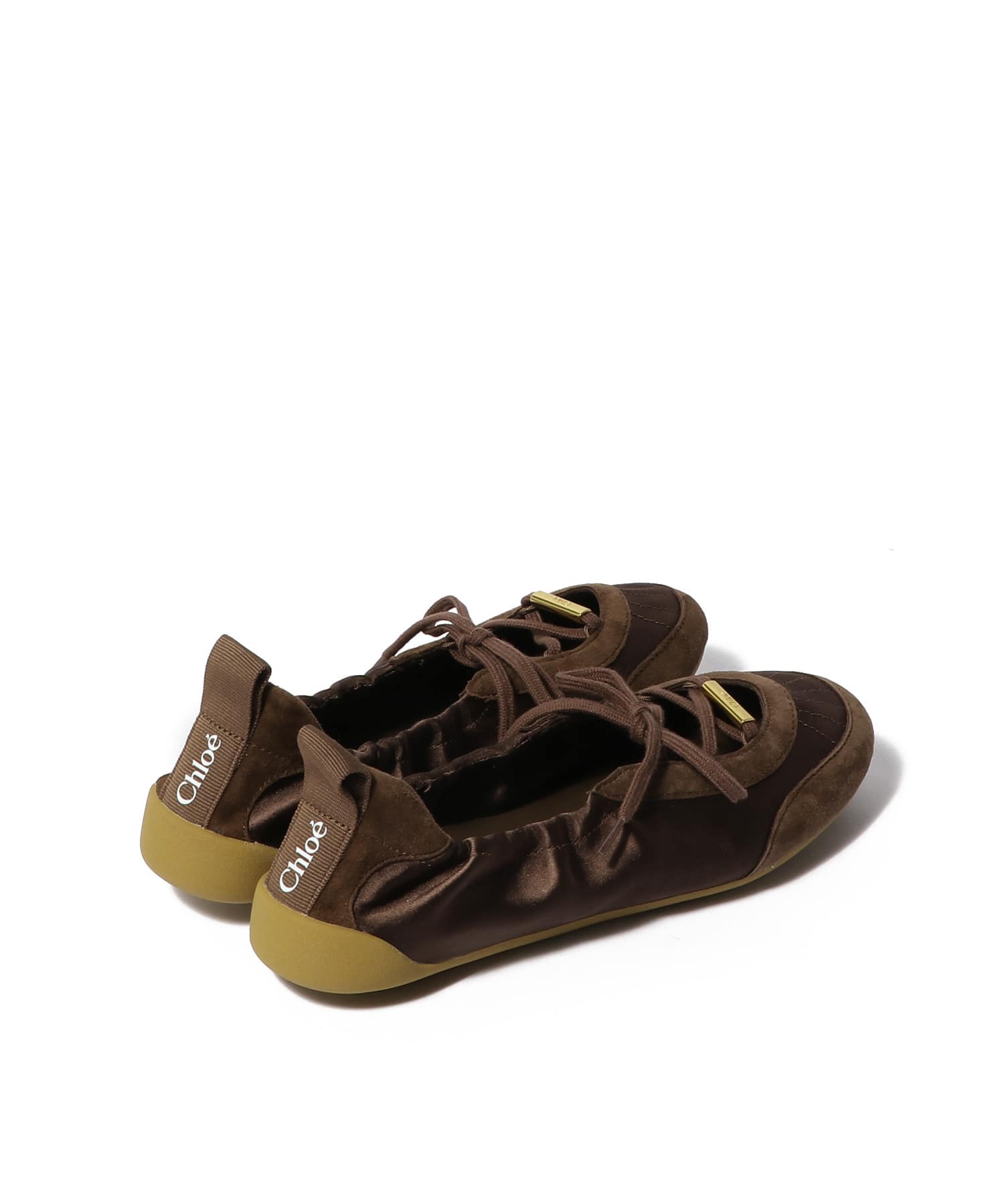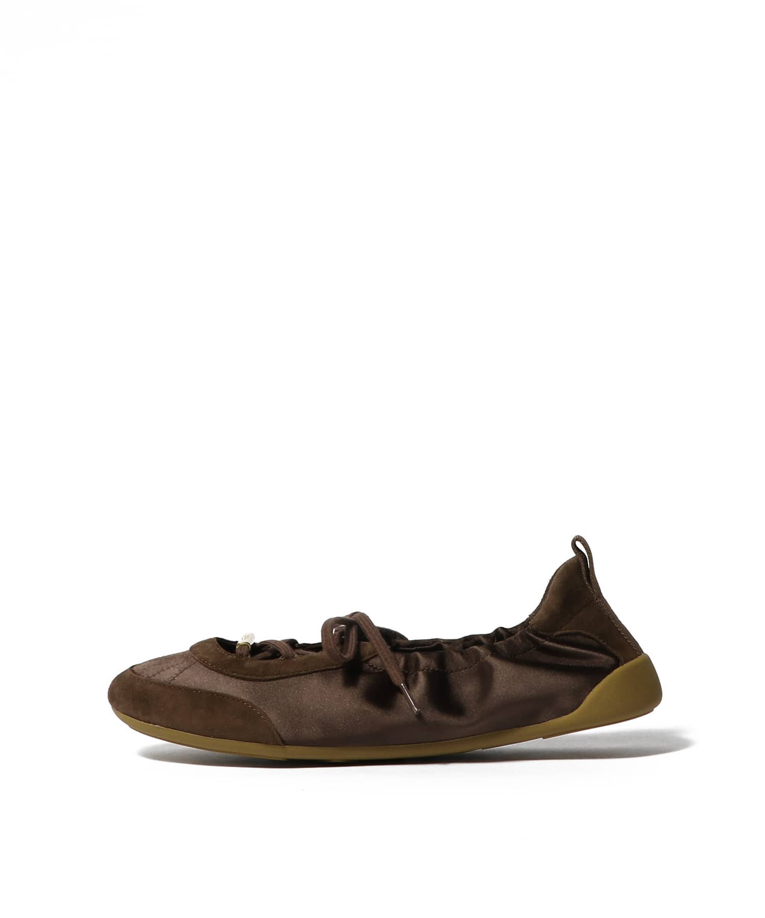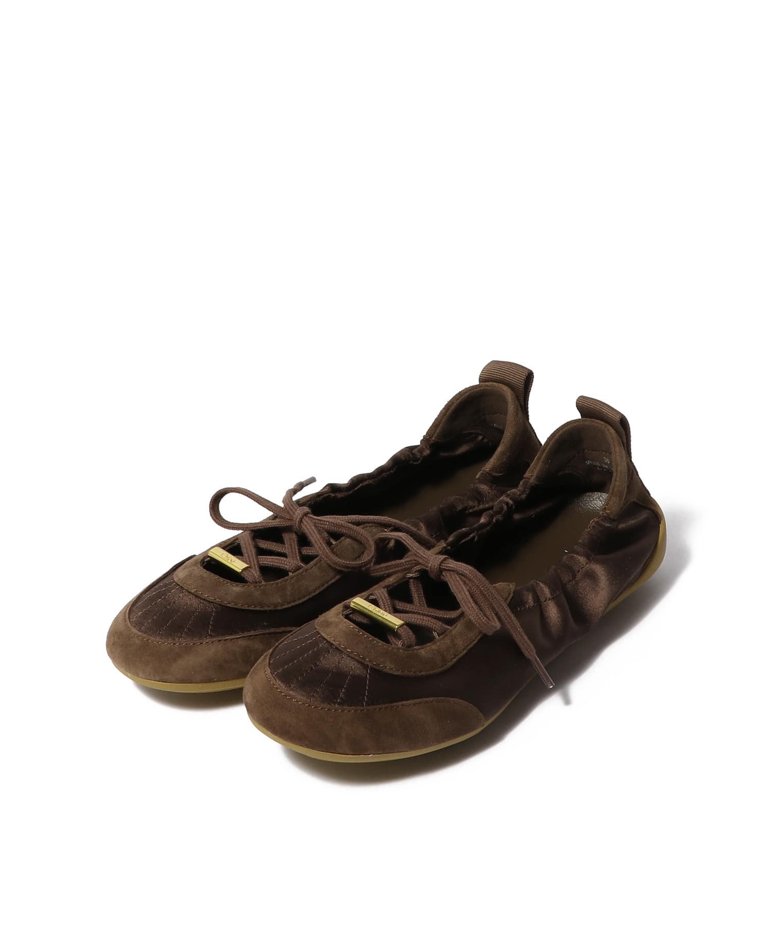 異素材のコントラストが印象的で、スニーカーのようなデザインが新鮮。ソックス合わせも素敵です。
