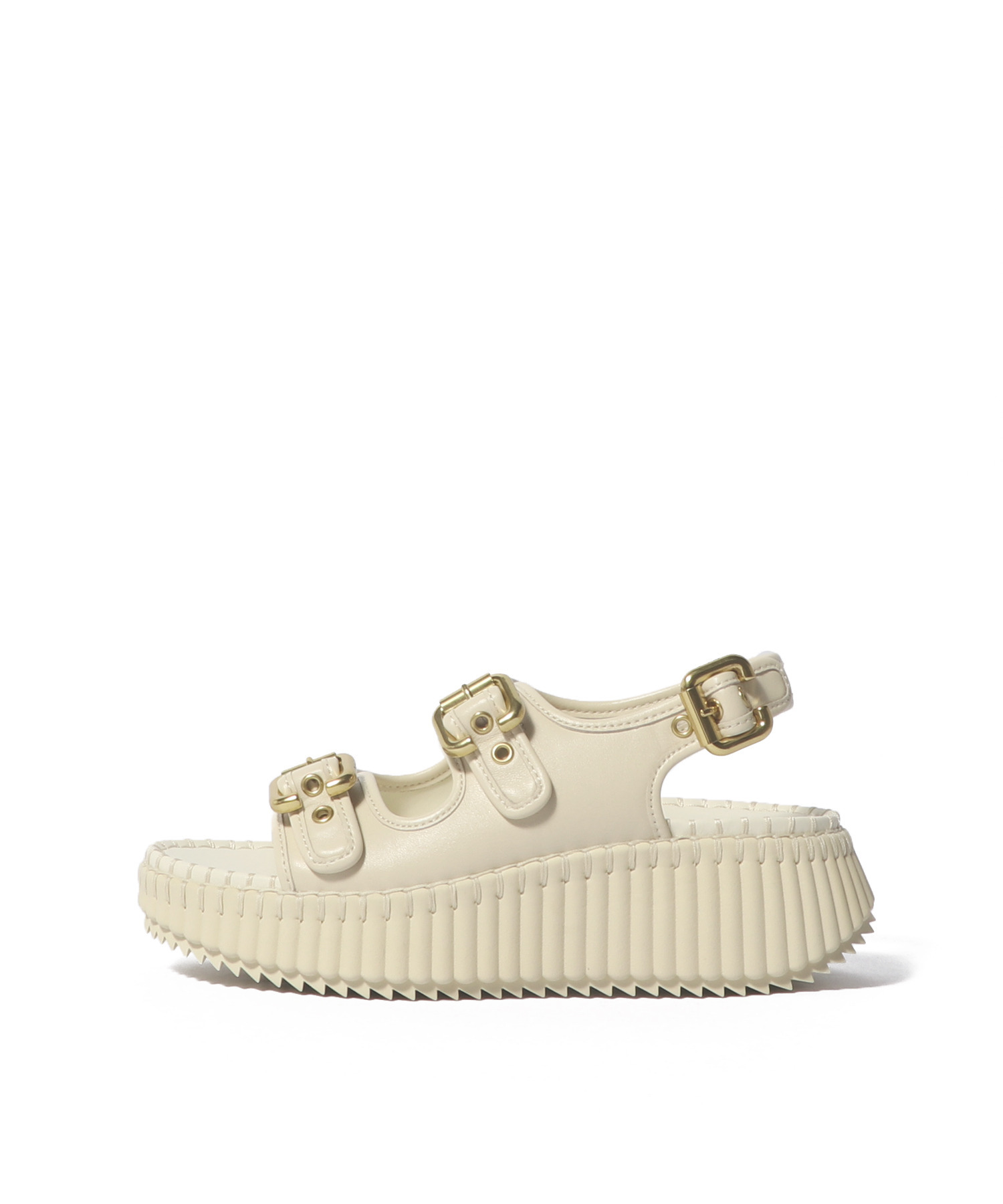 程よいボリューム感のソールとミニマルなデザインが印象的なサンダル。