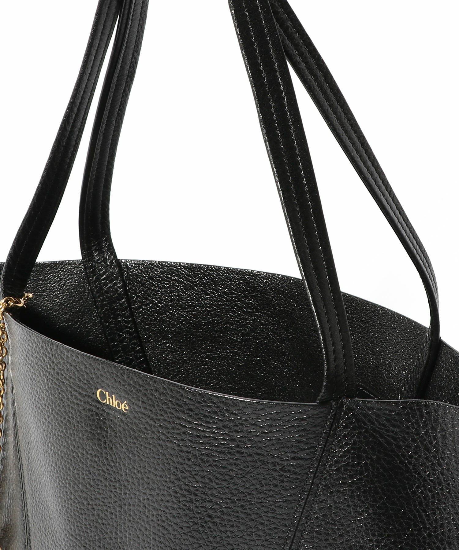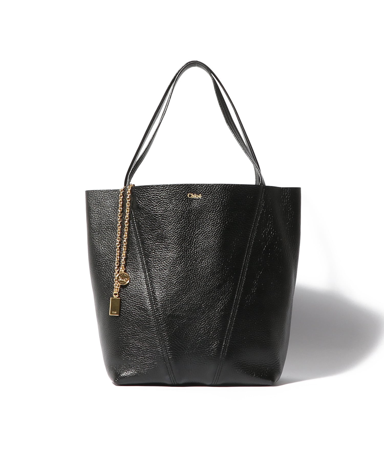 シャイニーグレインカウハイドを使用したChloé Spinトートバッグ。