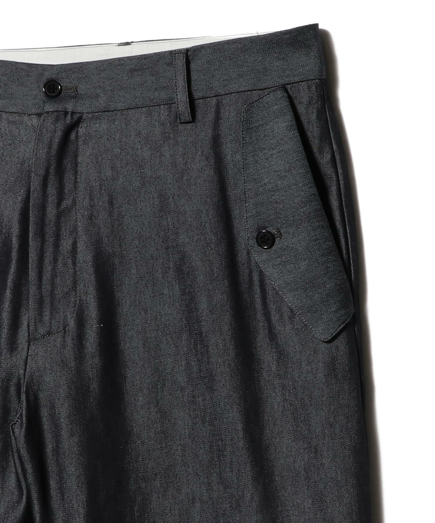 デニム生地ですが高級感のある雰囲気で、サイドポケットのデザインがアクセントになっております。