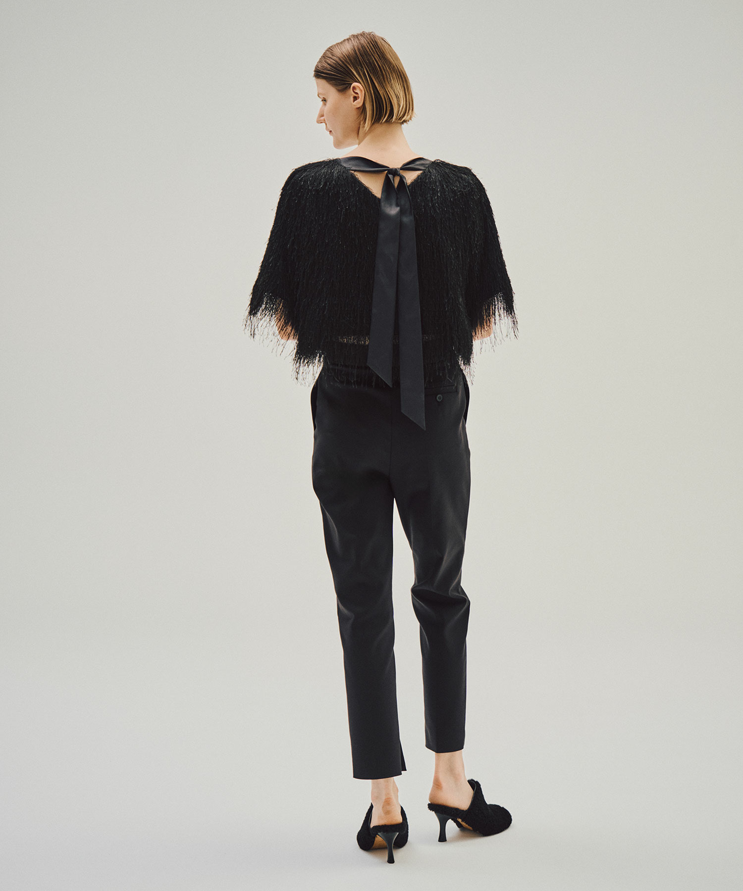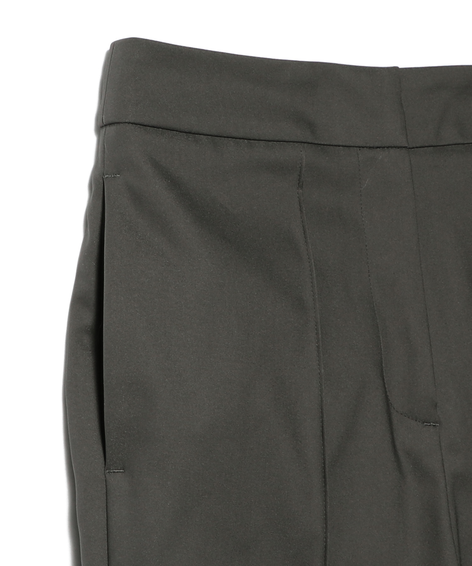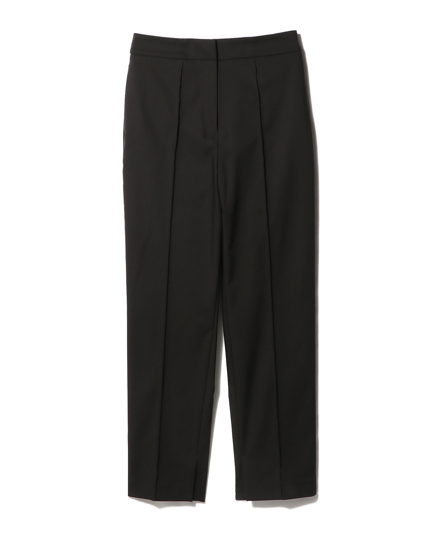 センターにピンタックラインを施したモードなデザイン。裾内側にはベントをいれ、端正な佇まいの中に抜け感を演出します。