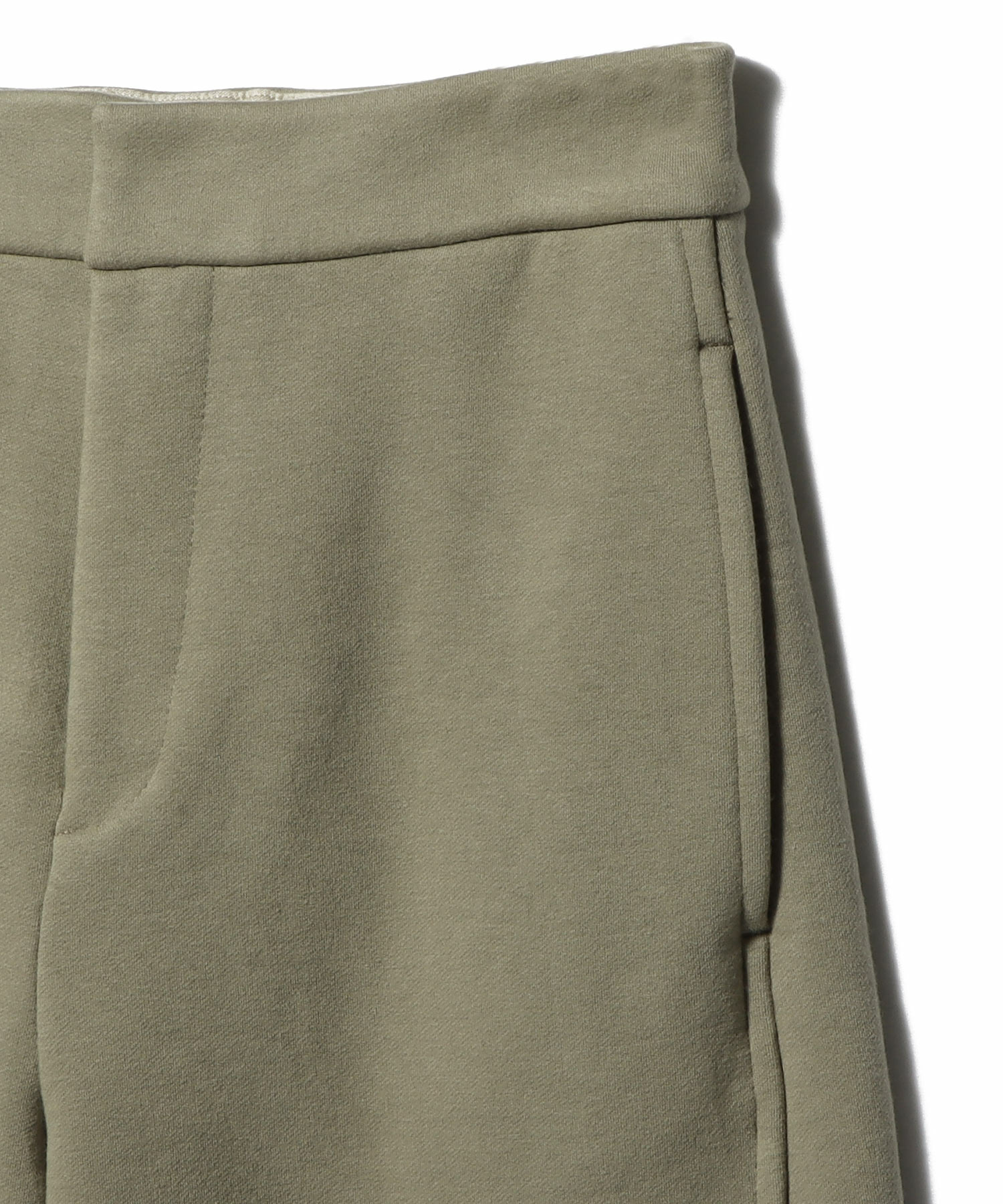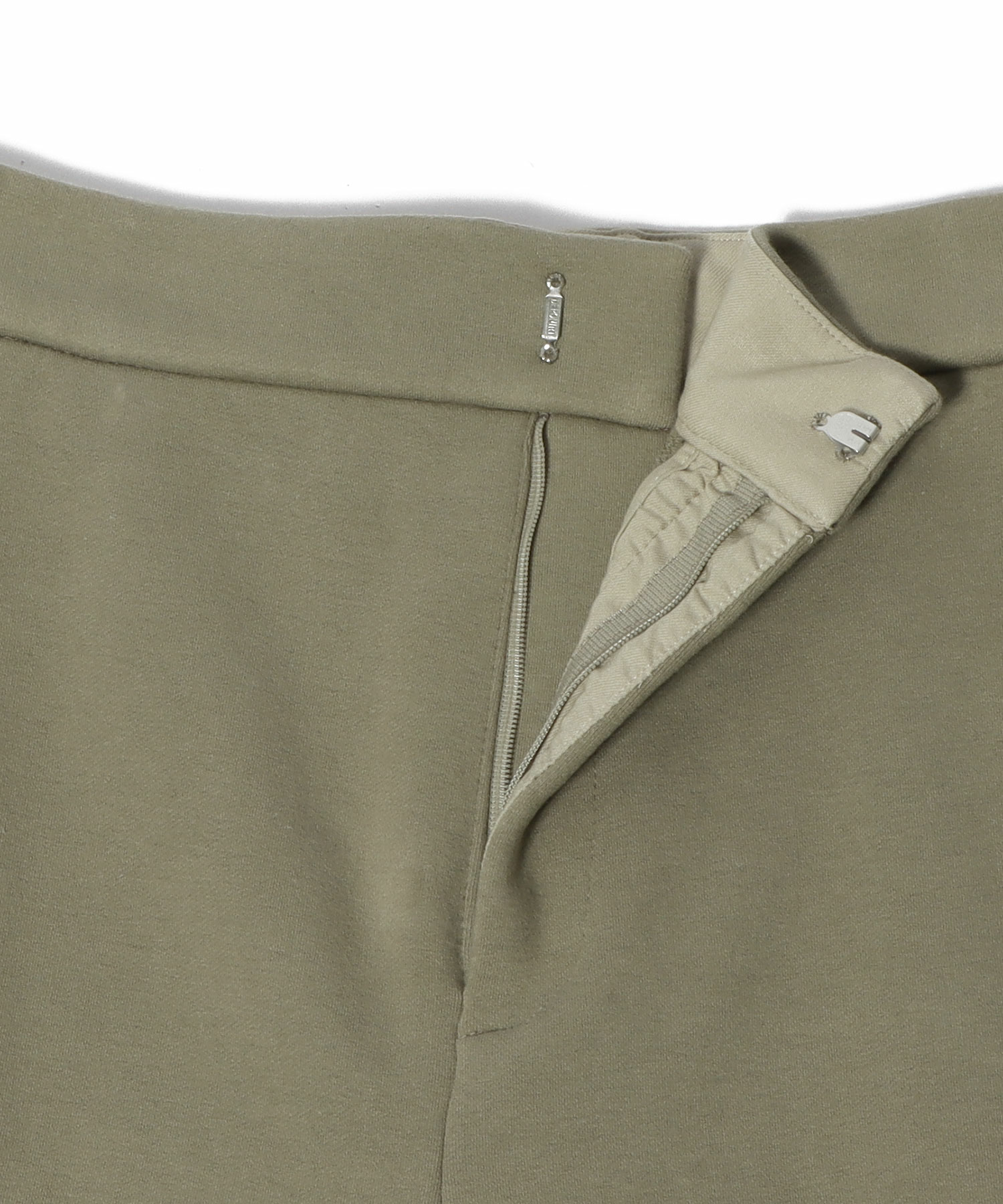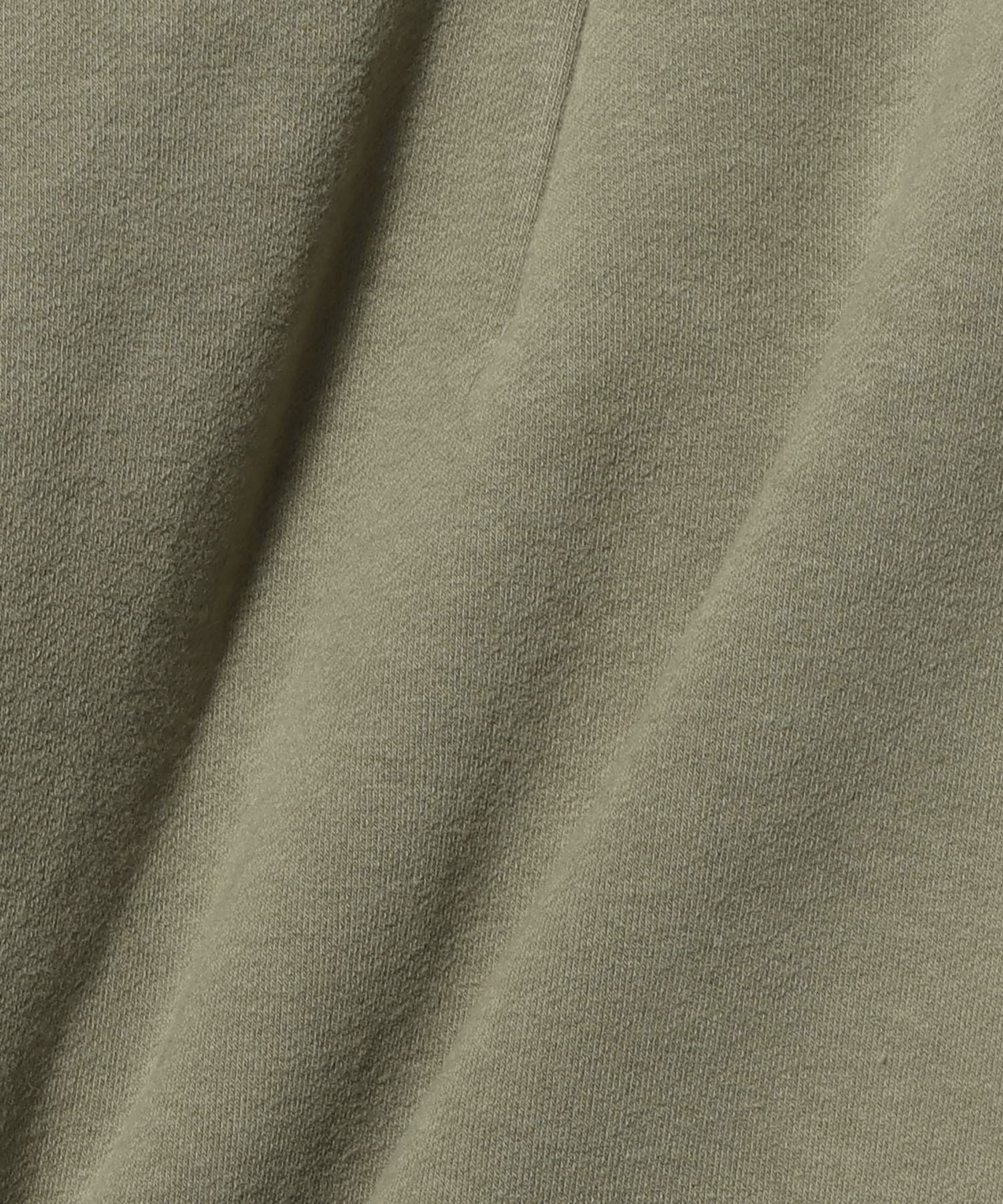 ヘビーウェイトの裏毛密度もしっかりとありながら、ハイゲージ見えするクリーンな印象の生地を使用。360度のストレッチ性を持ち、もちもちとした快適な着用感の素材です。