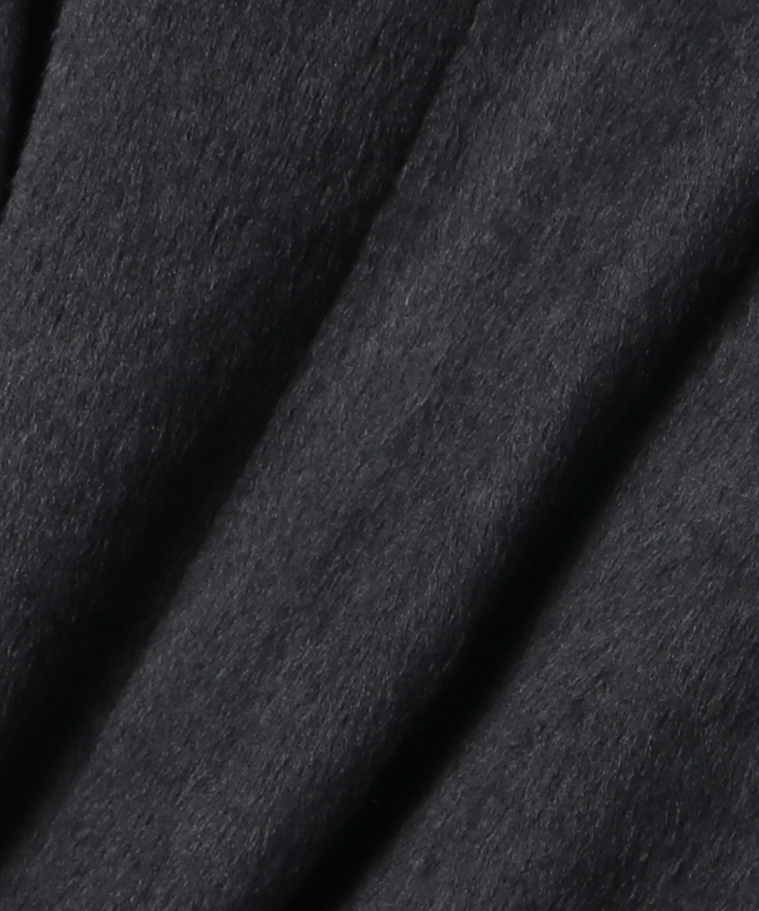タテ糸に48番手の梳毛、ヨコ糸にスーリーアルパカ100%を使用したビーバー生地は、長い毛足と上品な光沢感が特長。繊維が細かく肌あたりが非常に優しく、スケール(ウロコ)がないため毛玉ができにくく、蒸れにくいという機能性も兼ね備えています。さらに、毛の中空構造により空気を含み、高い保温性を発揮します。素材そのものの魅力を引き立てるため、デザインはあえてミニマルに構成。ロング丈にすることでパンツのシルエットを選ばず、さまざまなスタイルに自然と溶け込む一着に仕上げました。
