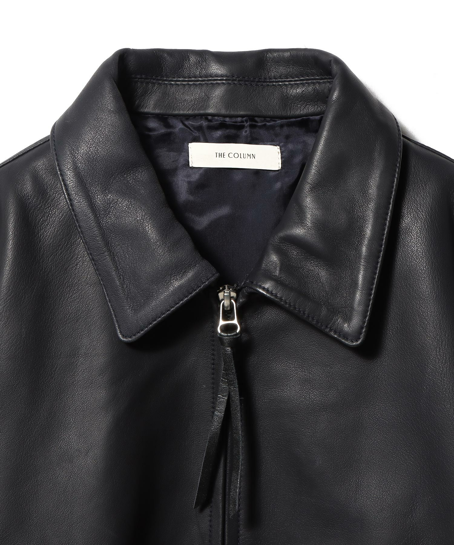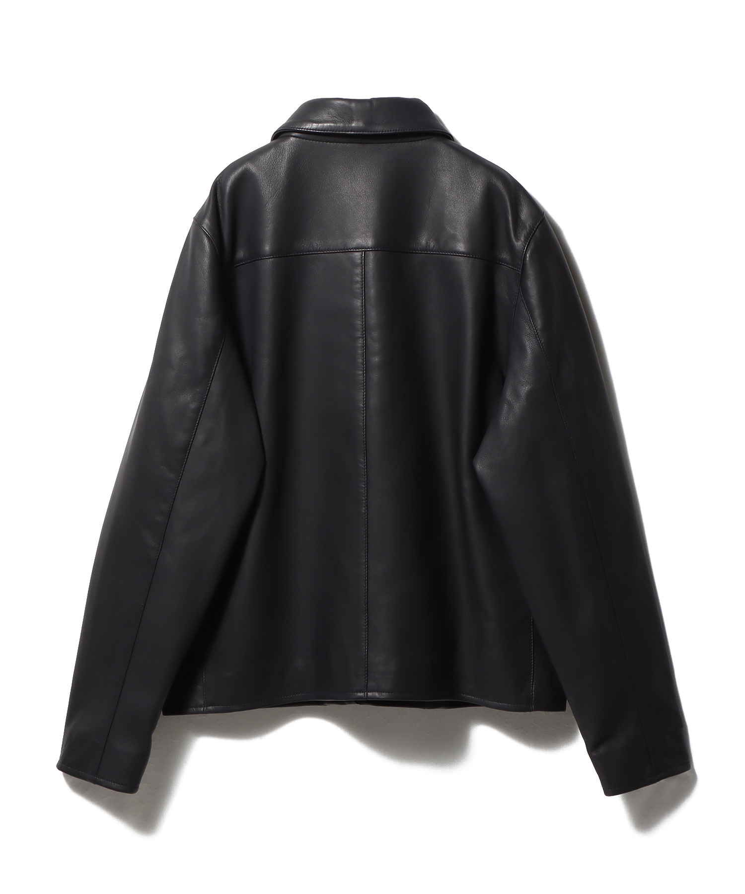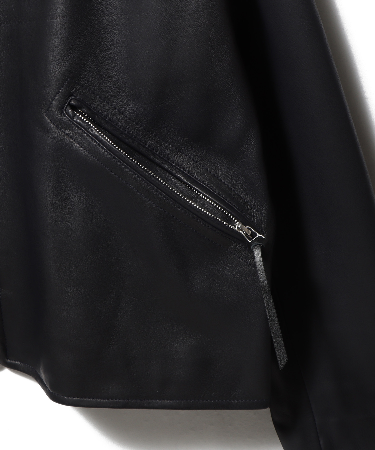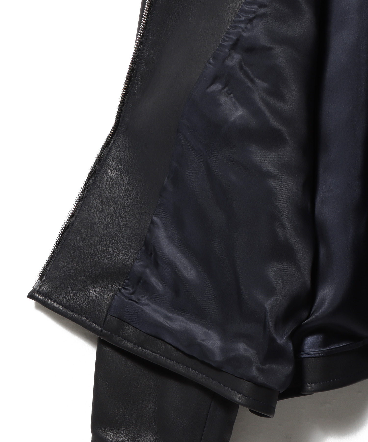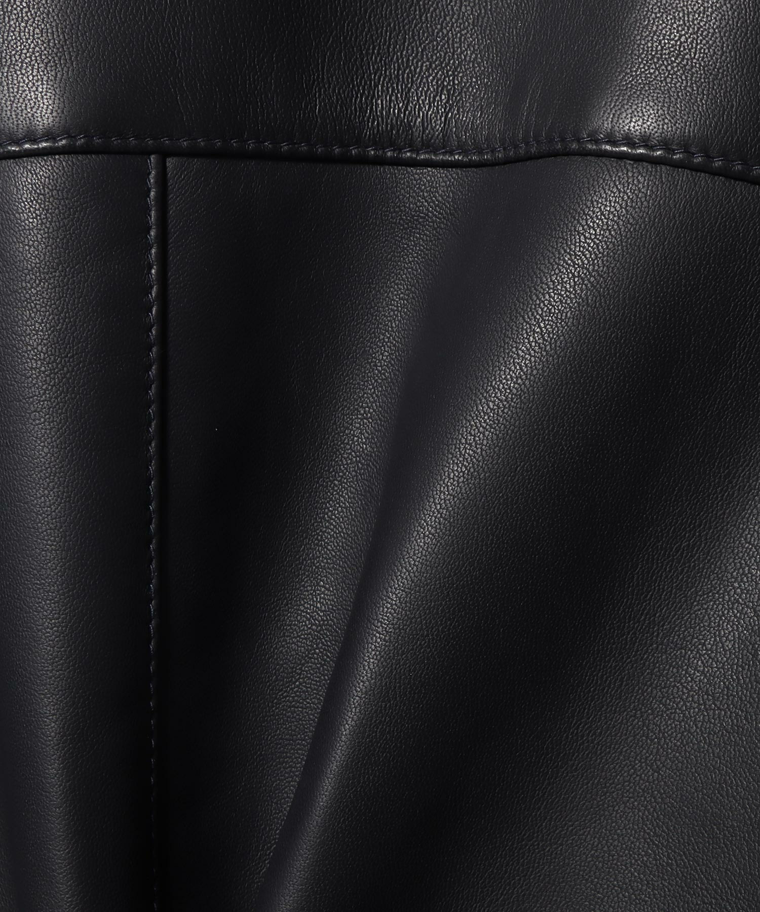 シープレザーならではの、柔らかくもっちりとした肌触りが魅力の一着で、深みのあるネイビーを採用することでモダンな印象に。