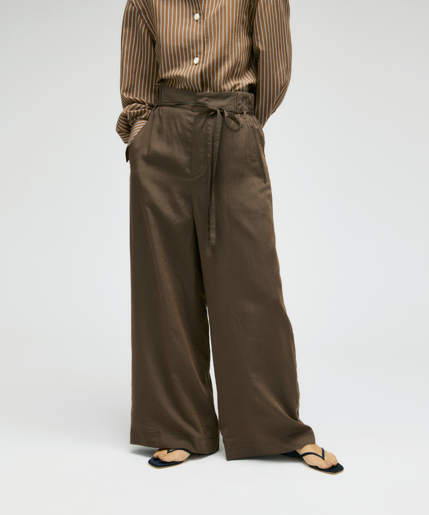 涼しげで着心地の良い、薄手の軽やかな素材で仕立てたワイドパンツ。