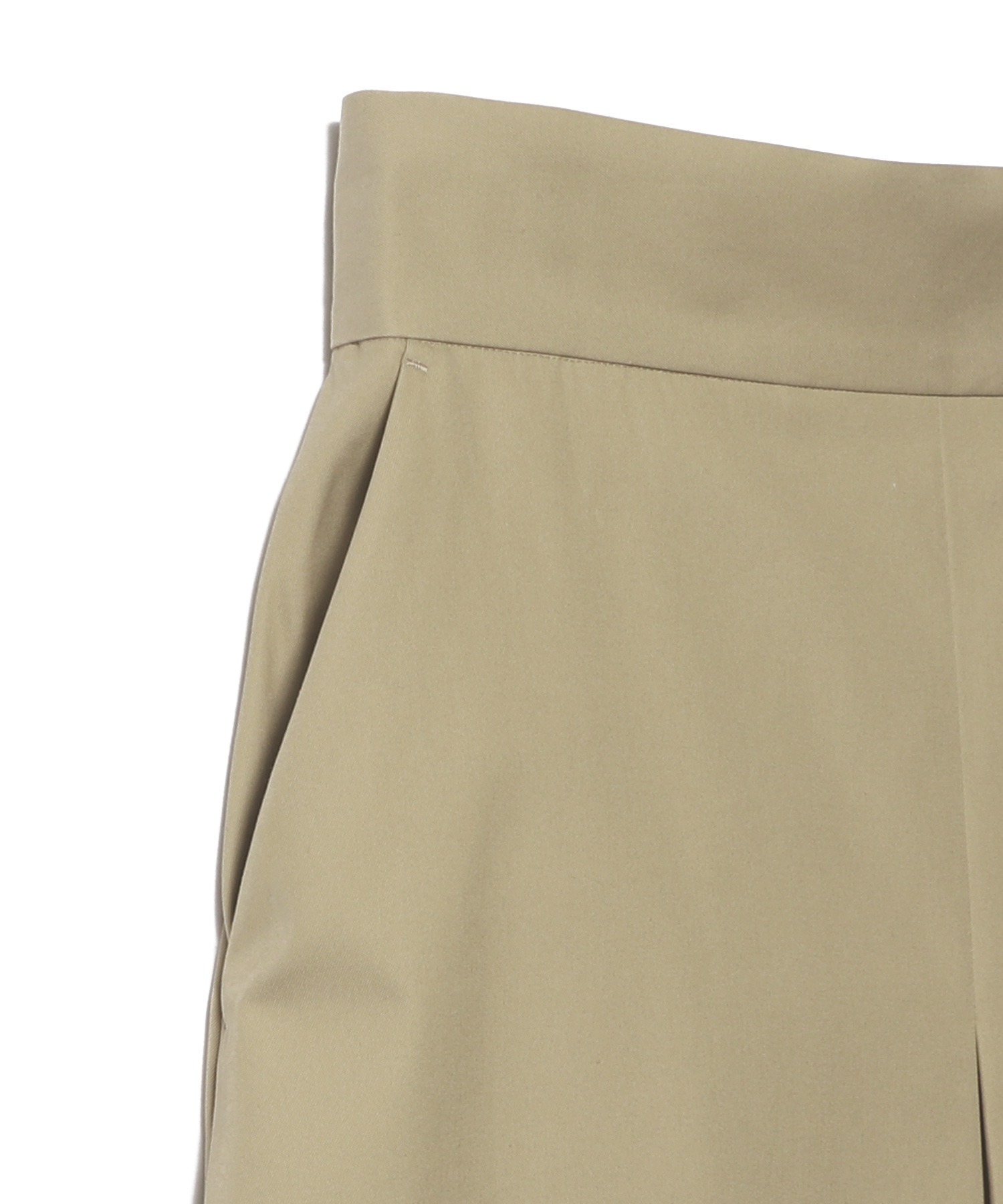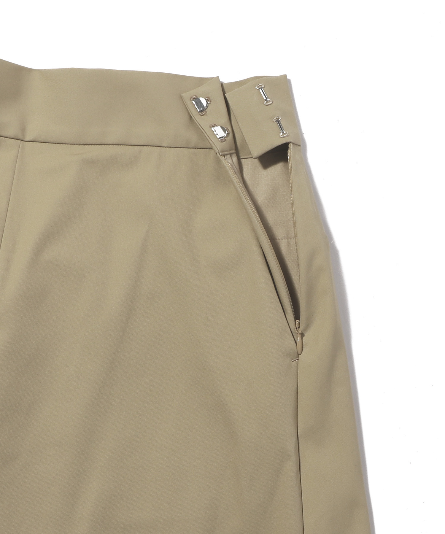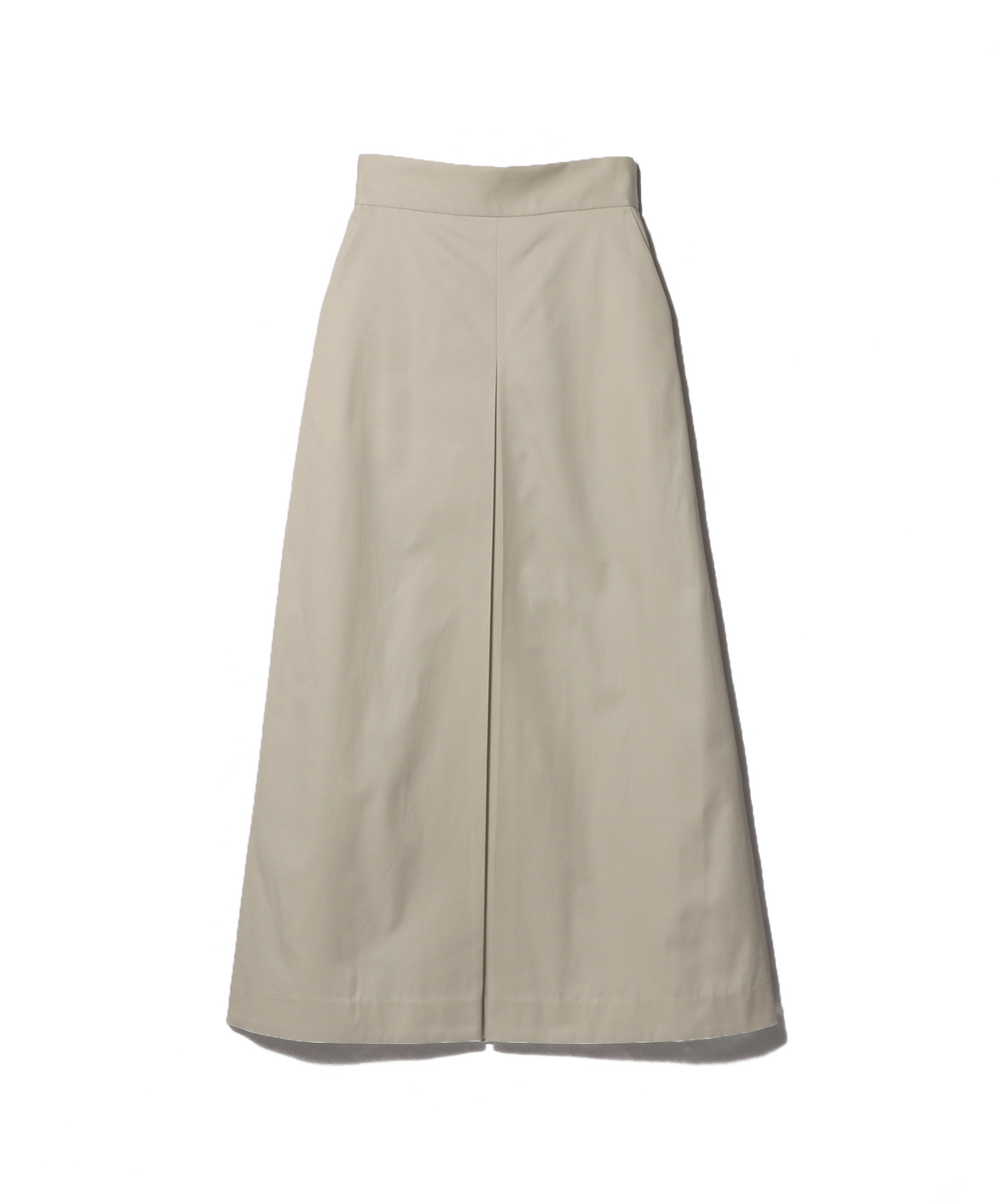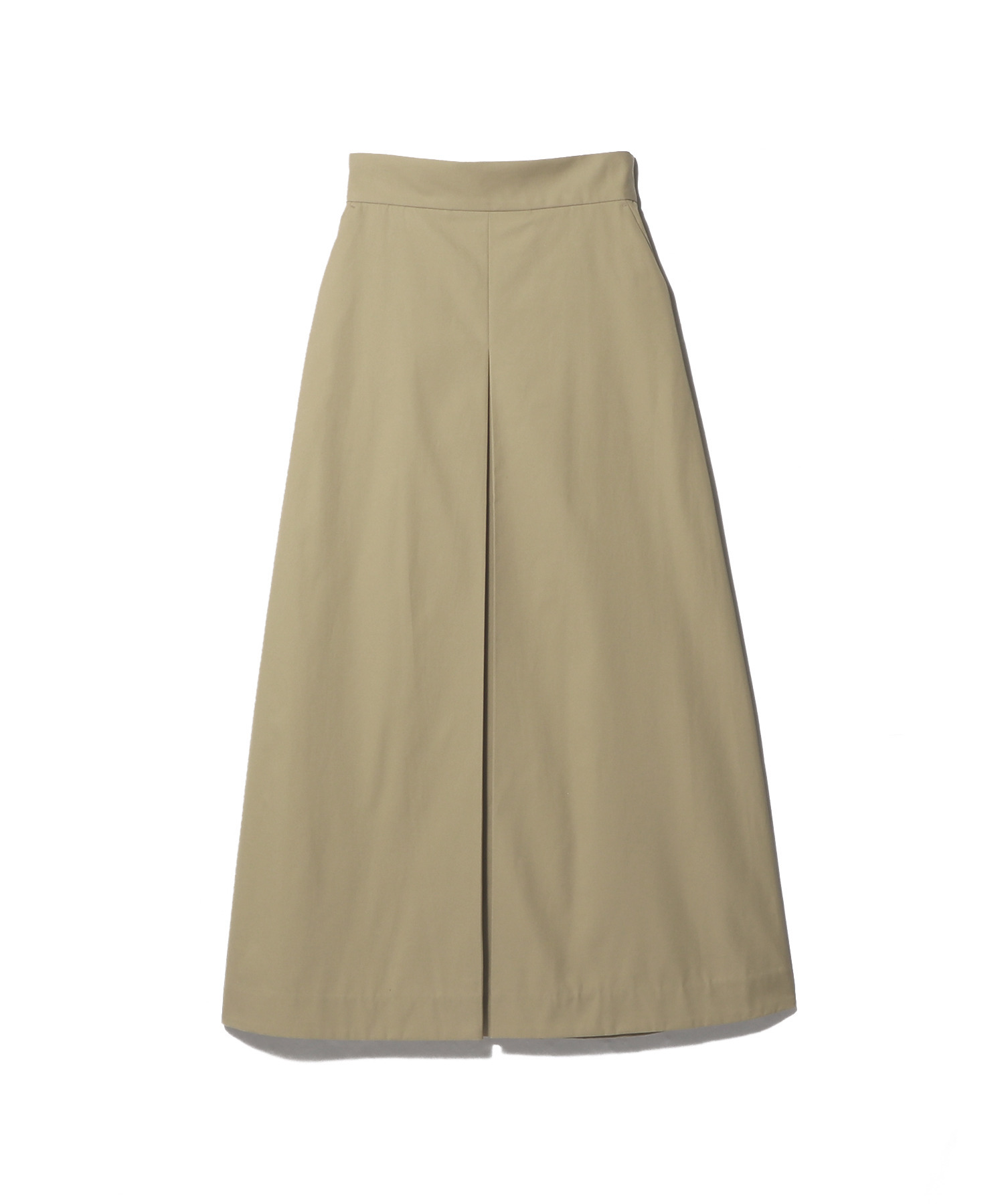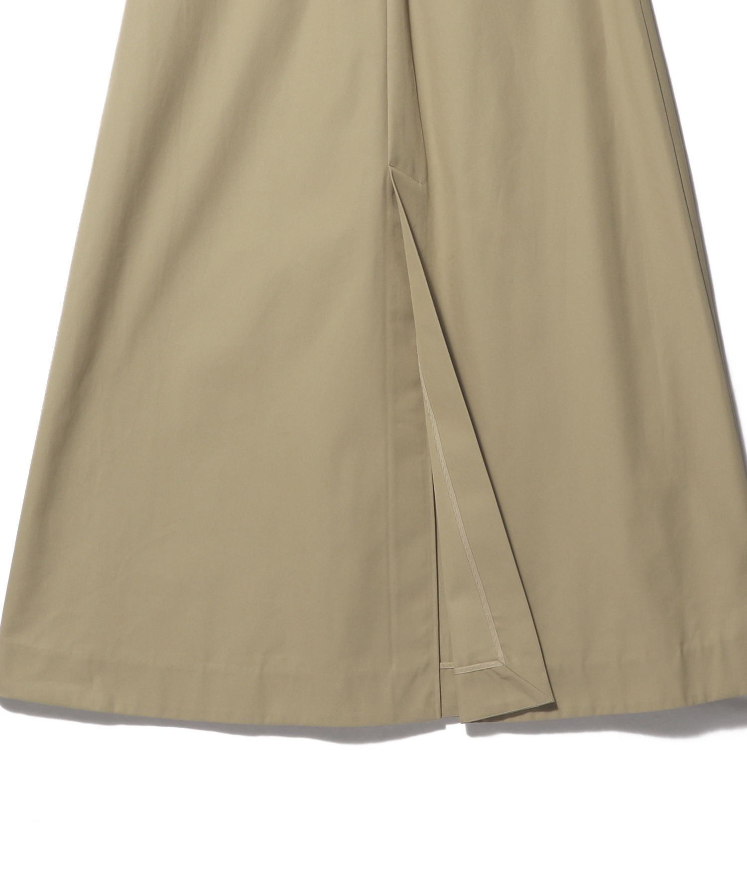 チノパンツのディテールを落とし込んだ、マニッシュな表情のAラインスカート。上品な光沢を放つ細番手のコットンツイルを使用し、センターには深めのタックを施すことで生地の質感を贅沢に際立たせました。