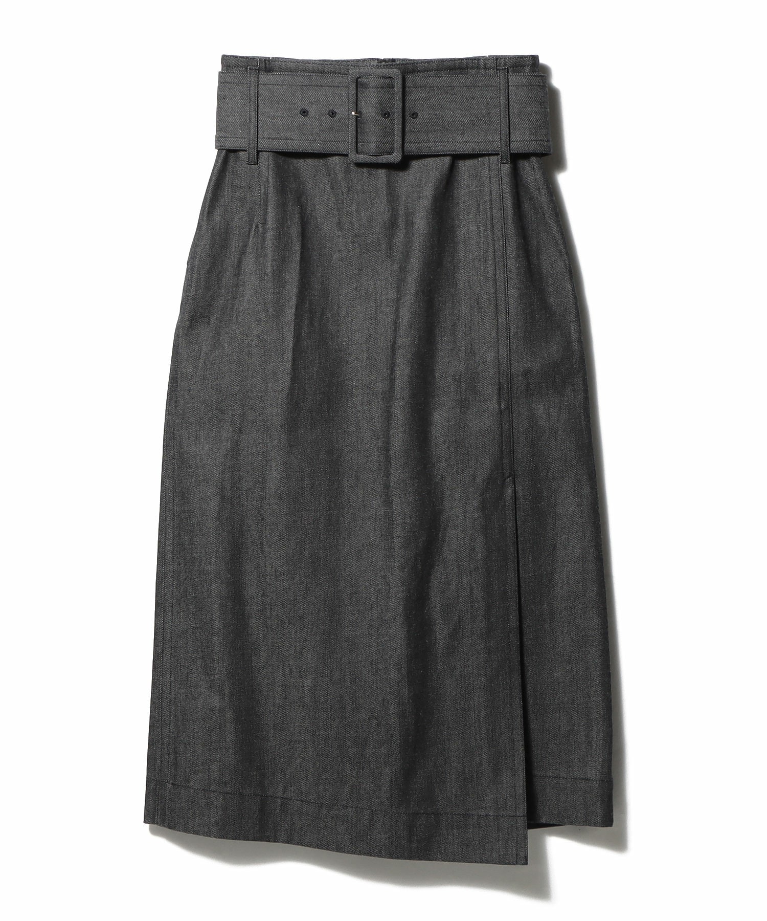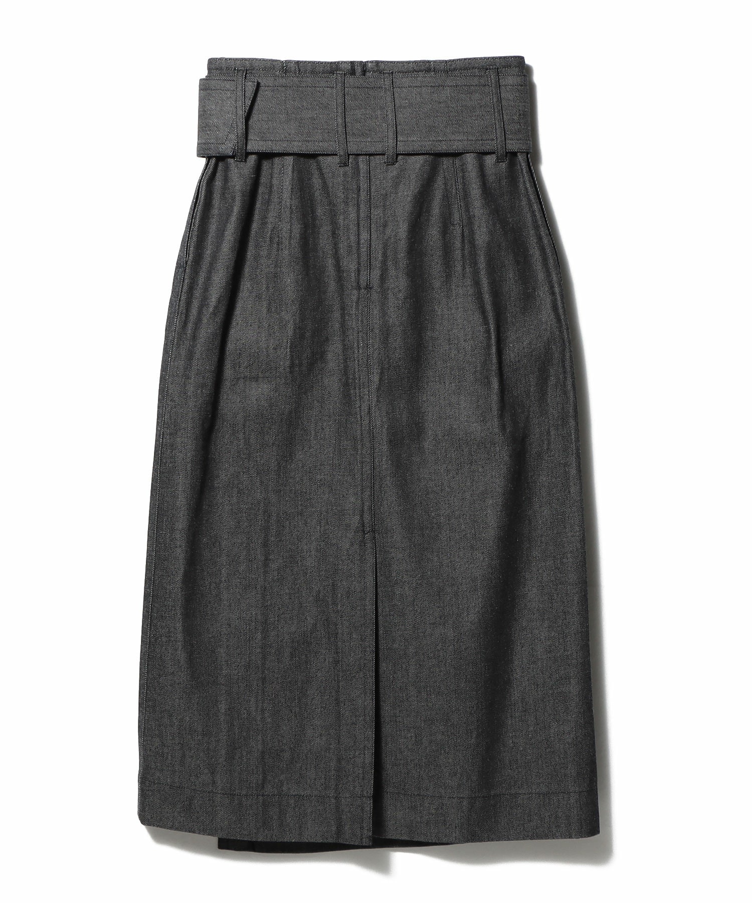 ハイウエストに存在感のあるベルトを効かせたタイトスカート。