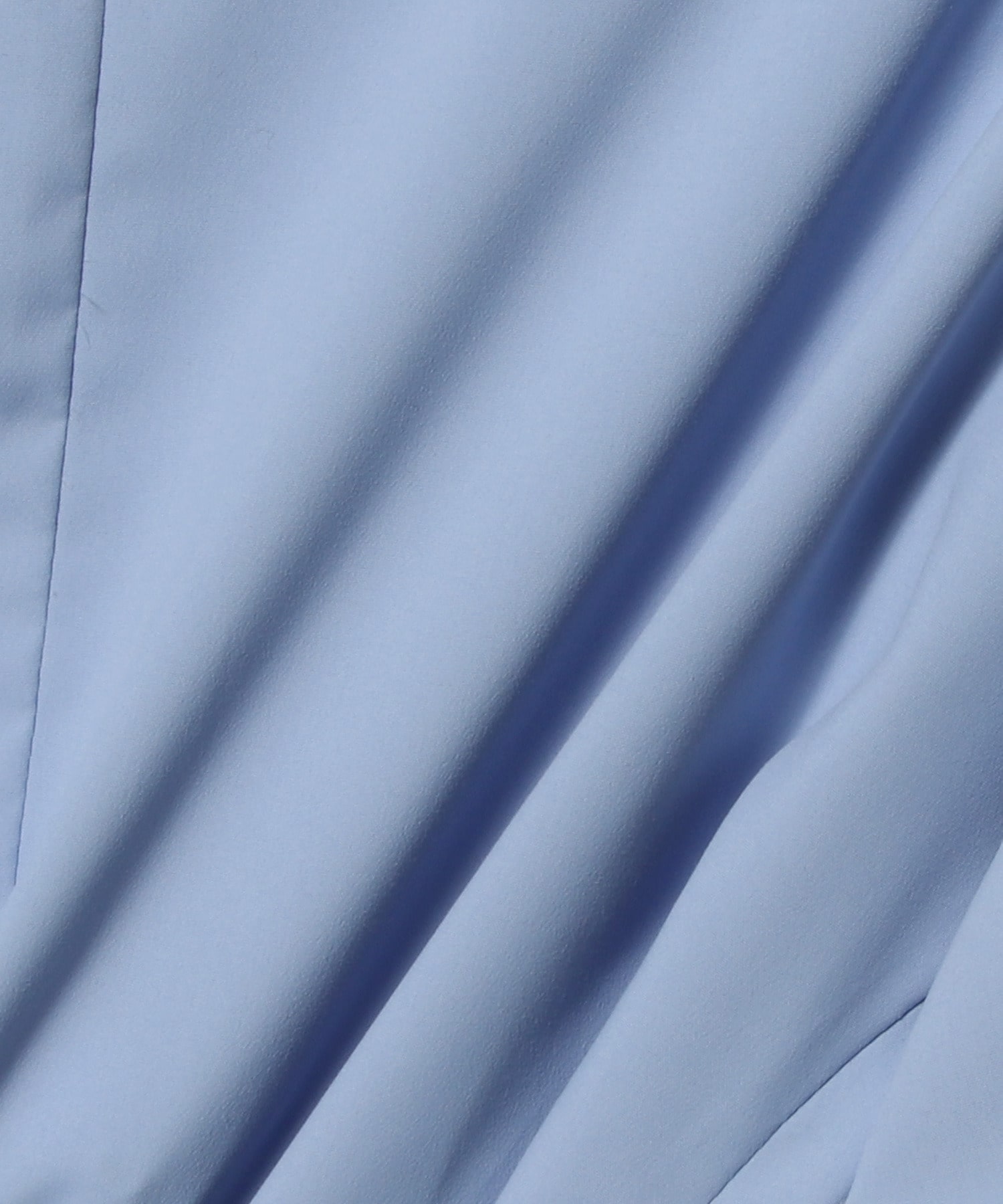 比翼仕立てで上品なペプラムフレアのボートネックシャツ。