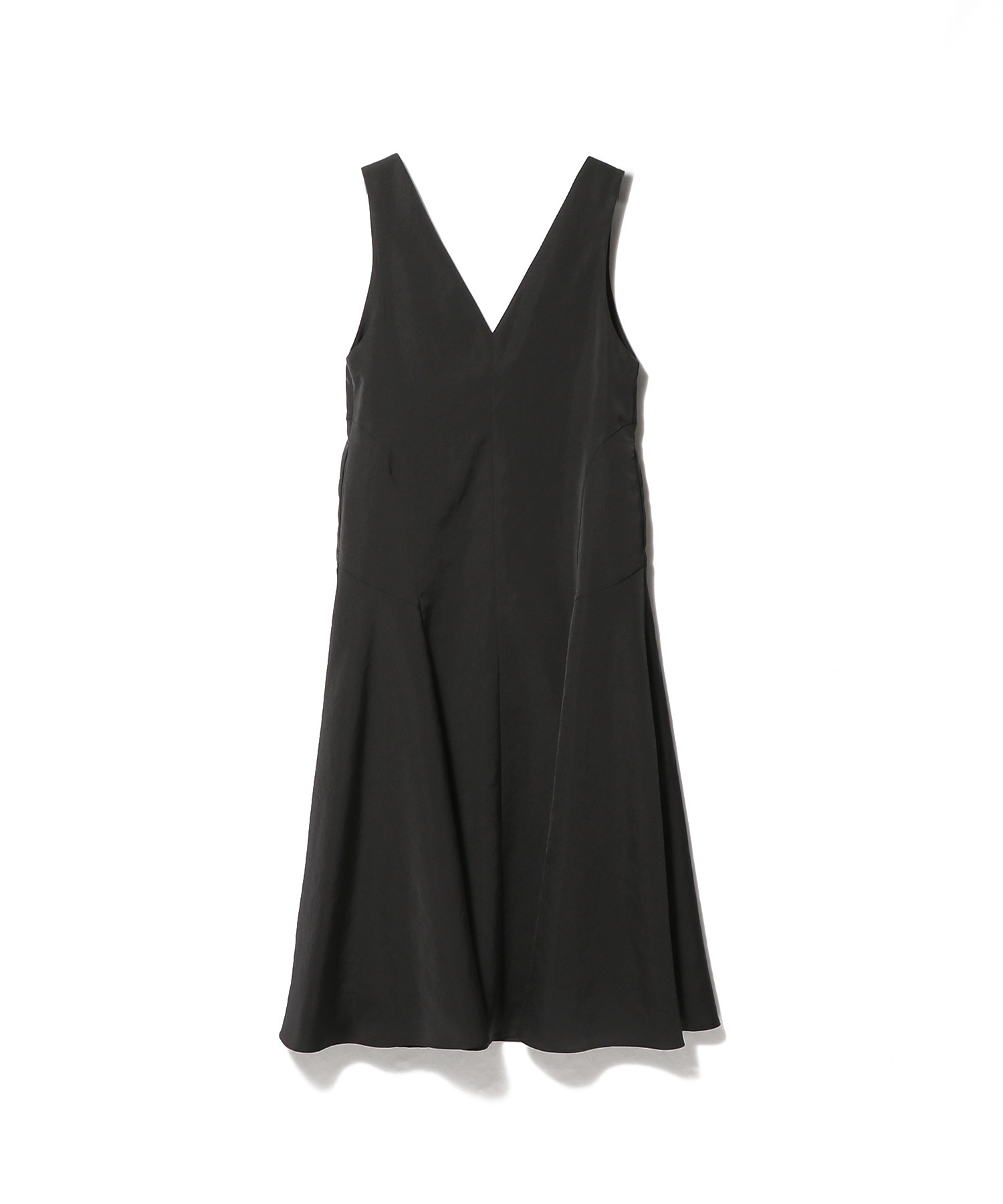 ウエストからデザインカッティングパネルを施したVネックジャンパードレス。