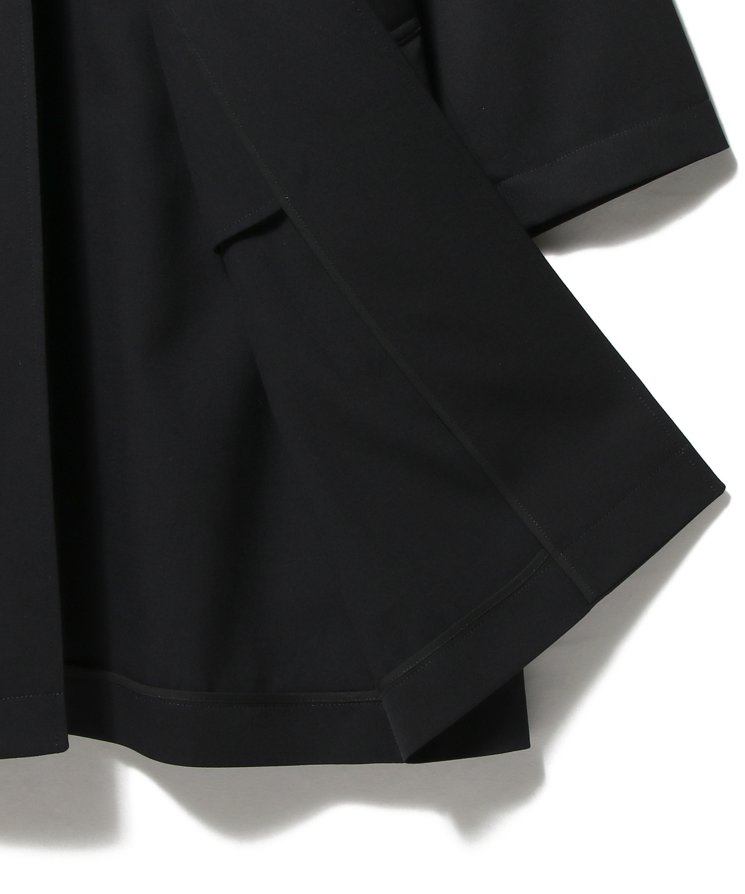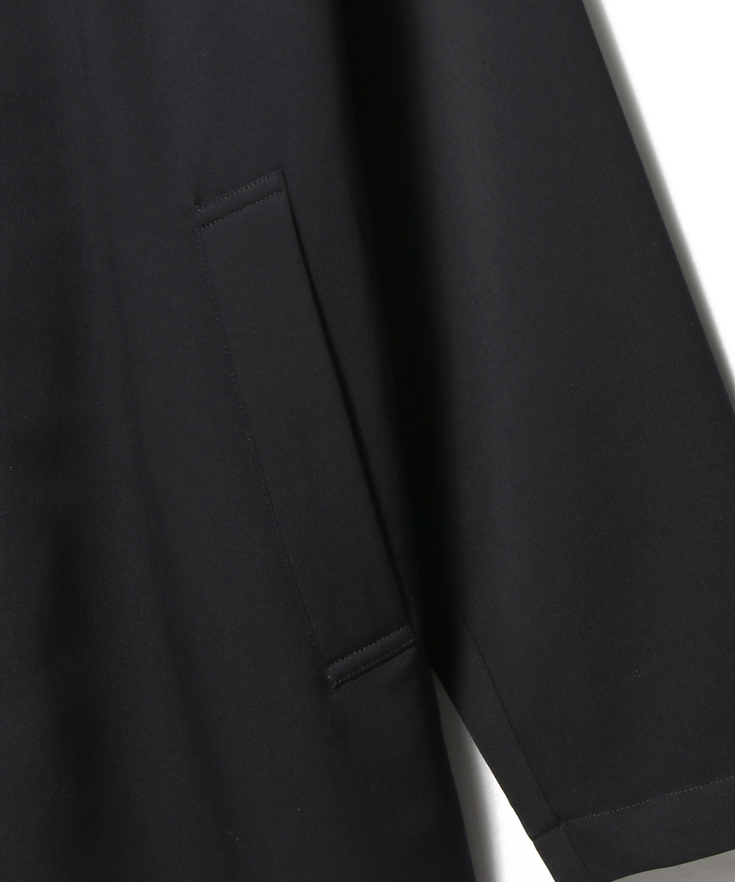 ノンミュールウールを使用し、糸を1000回転の強撚糸にした高密度ツイル素材を採用したロングコート。