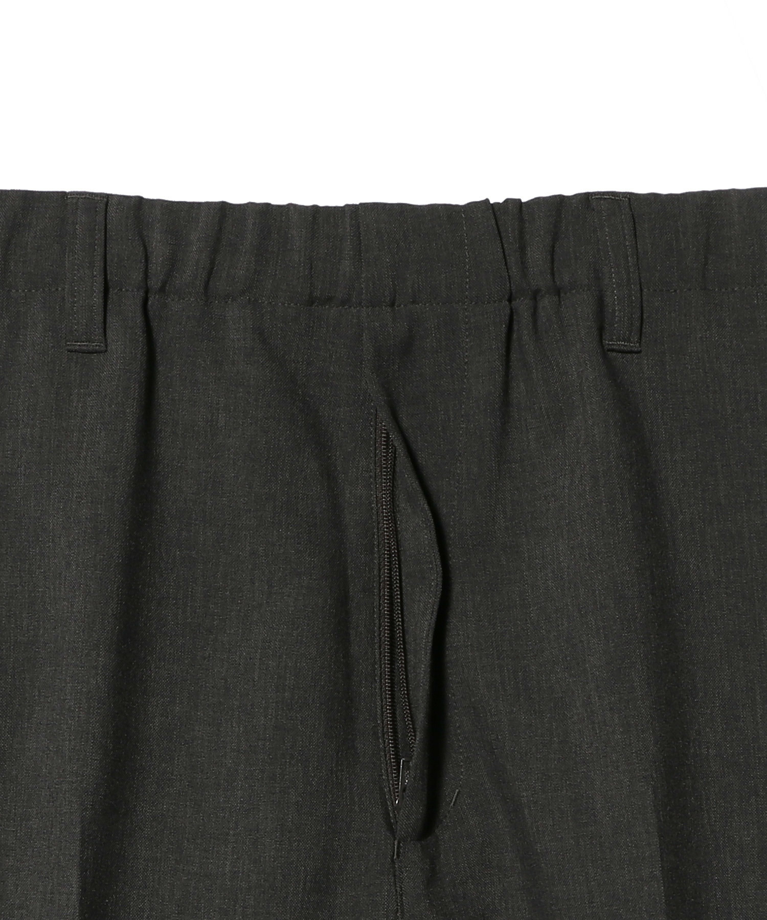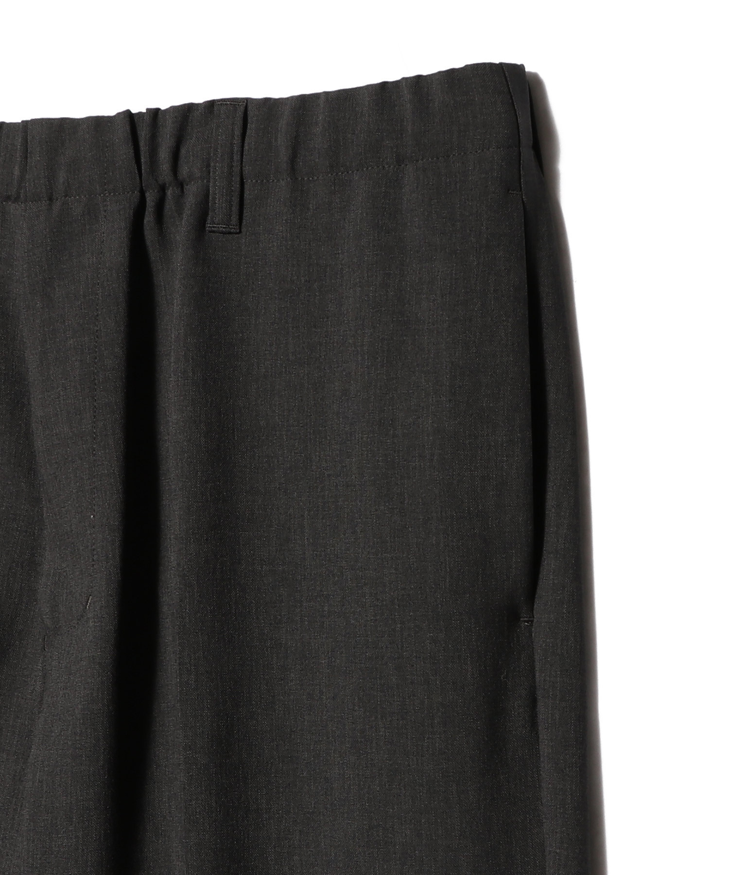 梳毛ウールで作られるトロピカル生地の風合いをポリエステルで再現した素材を使用したスラックス。