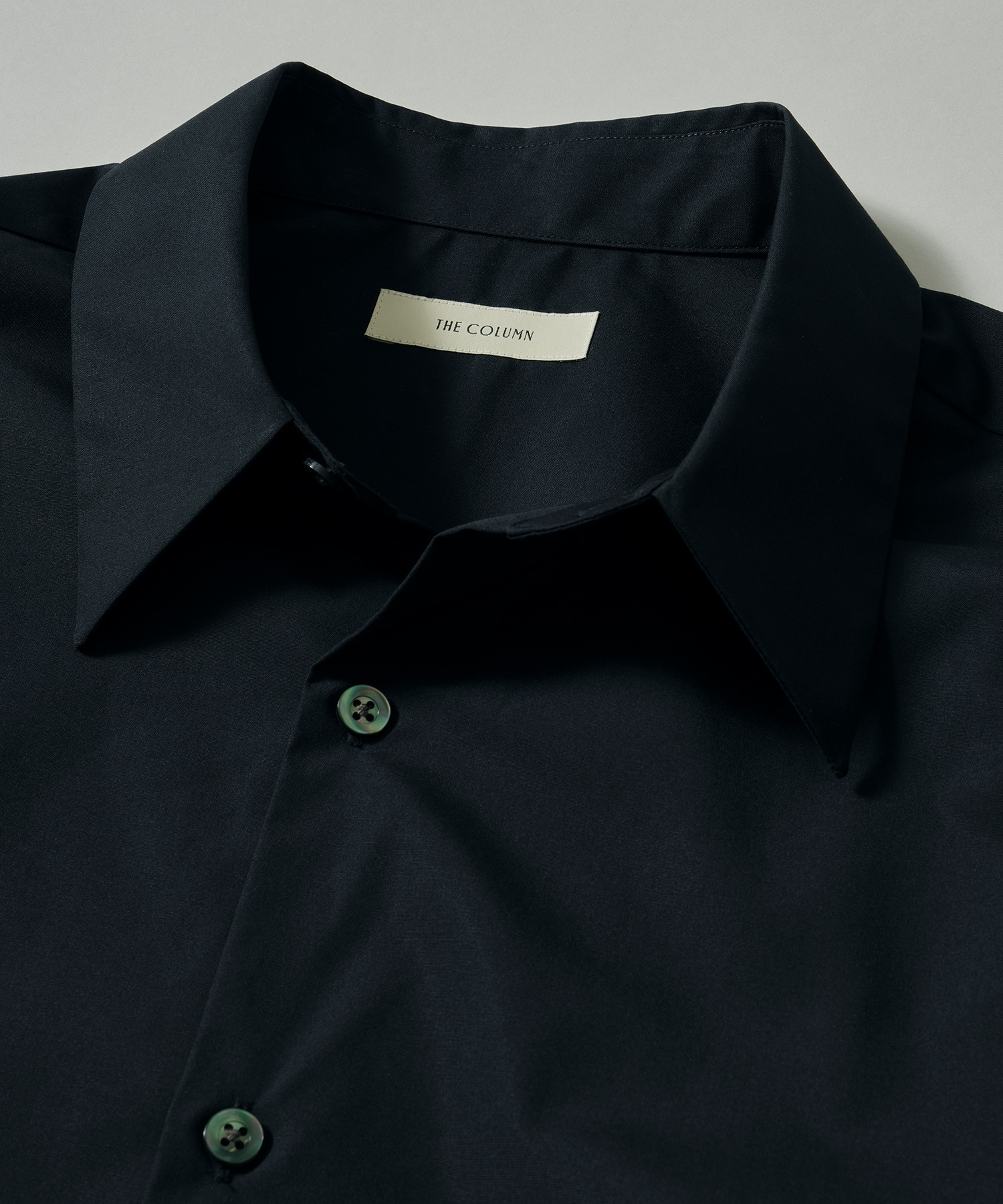 ハリ感のあるタイプライター素材を使用したミニマルなシャツ。