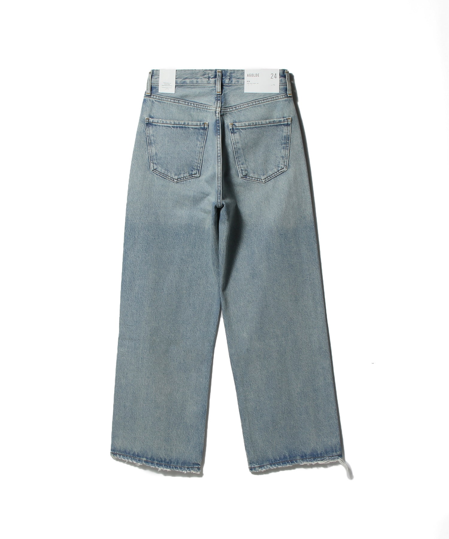 ウエストはスタイルアップ効果のあるハイウエスト設計に、ヒップ周りはゆとりを持たせたリラックスフィット。脚のラインを拾いにくいワイドレッグシルエットが、自然にスタイルを引き立てます。着古したようなミディアムインディゴウォッシュ加工により、時代を問わず愛用できるクリーンかつこなれた印象に。