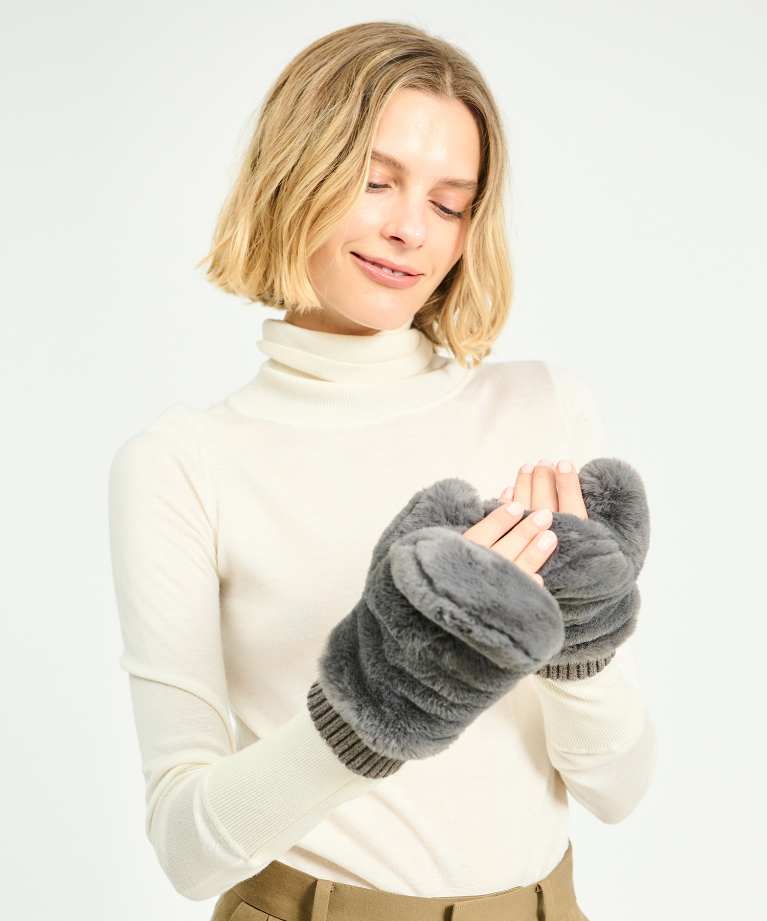 ポップなカラーリングがかわいらしく、ダークトーンが多くなる冬のカラーリングを華やかにしてくれます。人差し指から小指まではスリットが入っており、指を出せる仕様になっているので、スマホの操作も可能です。