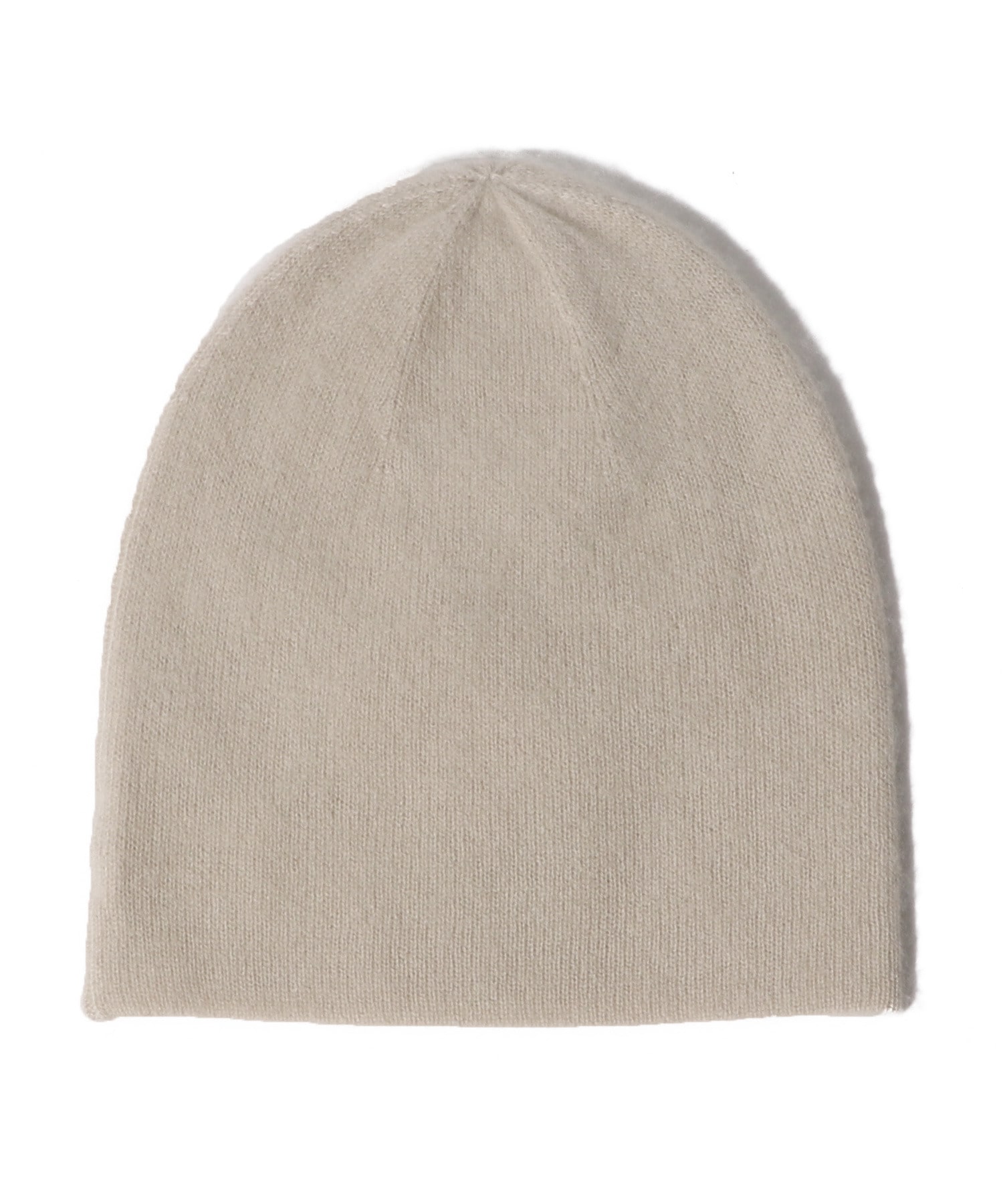 カシミヤ100%素材を使用した、トレンド感のあるビーニーキャップ。