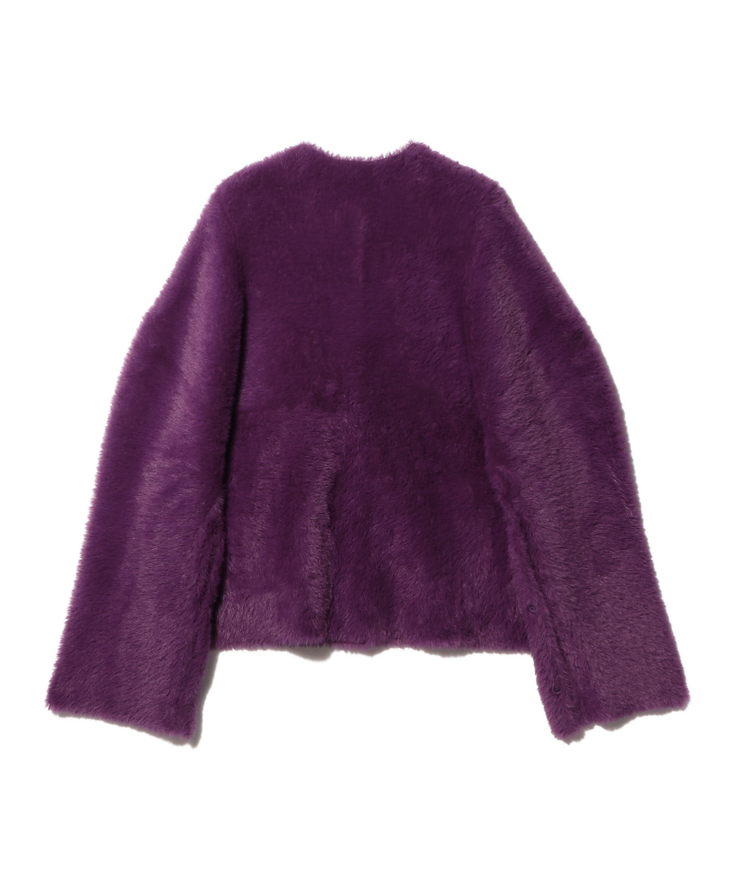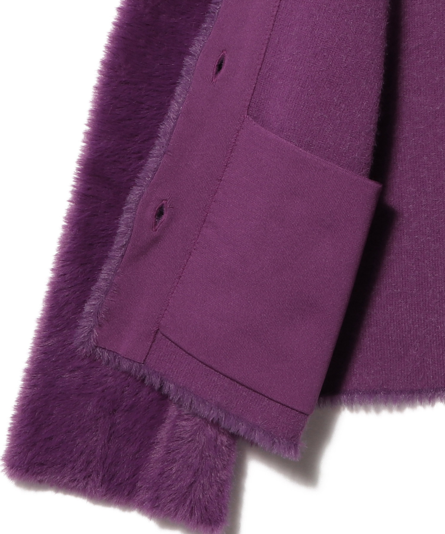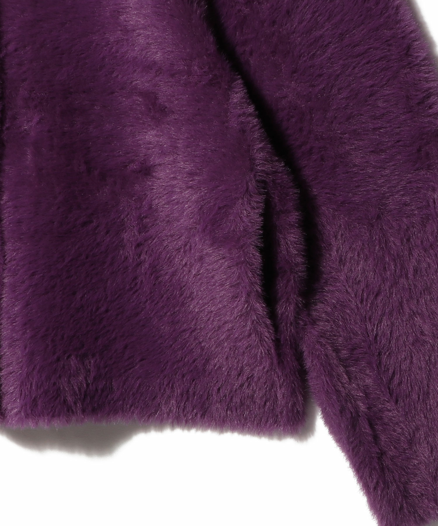 ナイロンファーを表面に、ポリエステルを裏面にしたダブルフェイスの編地を使用。程よく落ち感のある編地で、カーディガンのように羽織りやすい1枚。