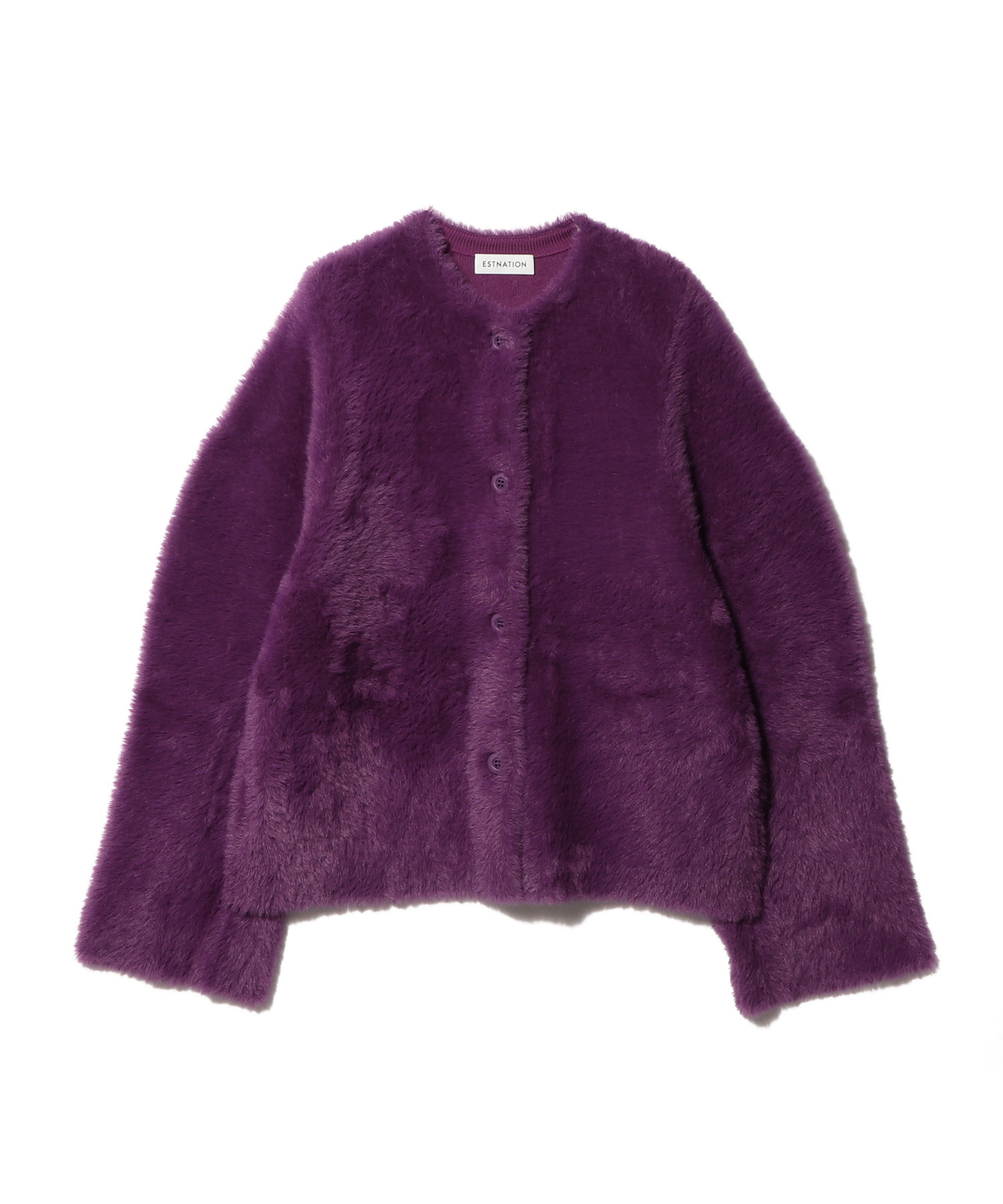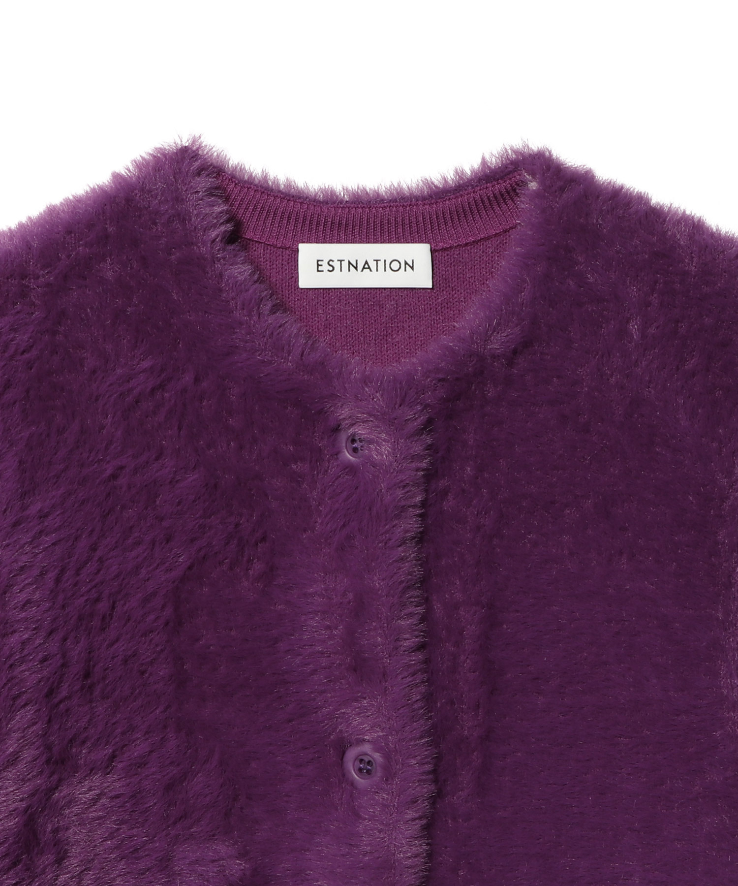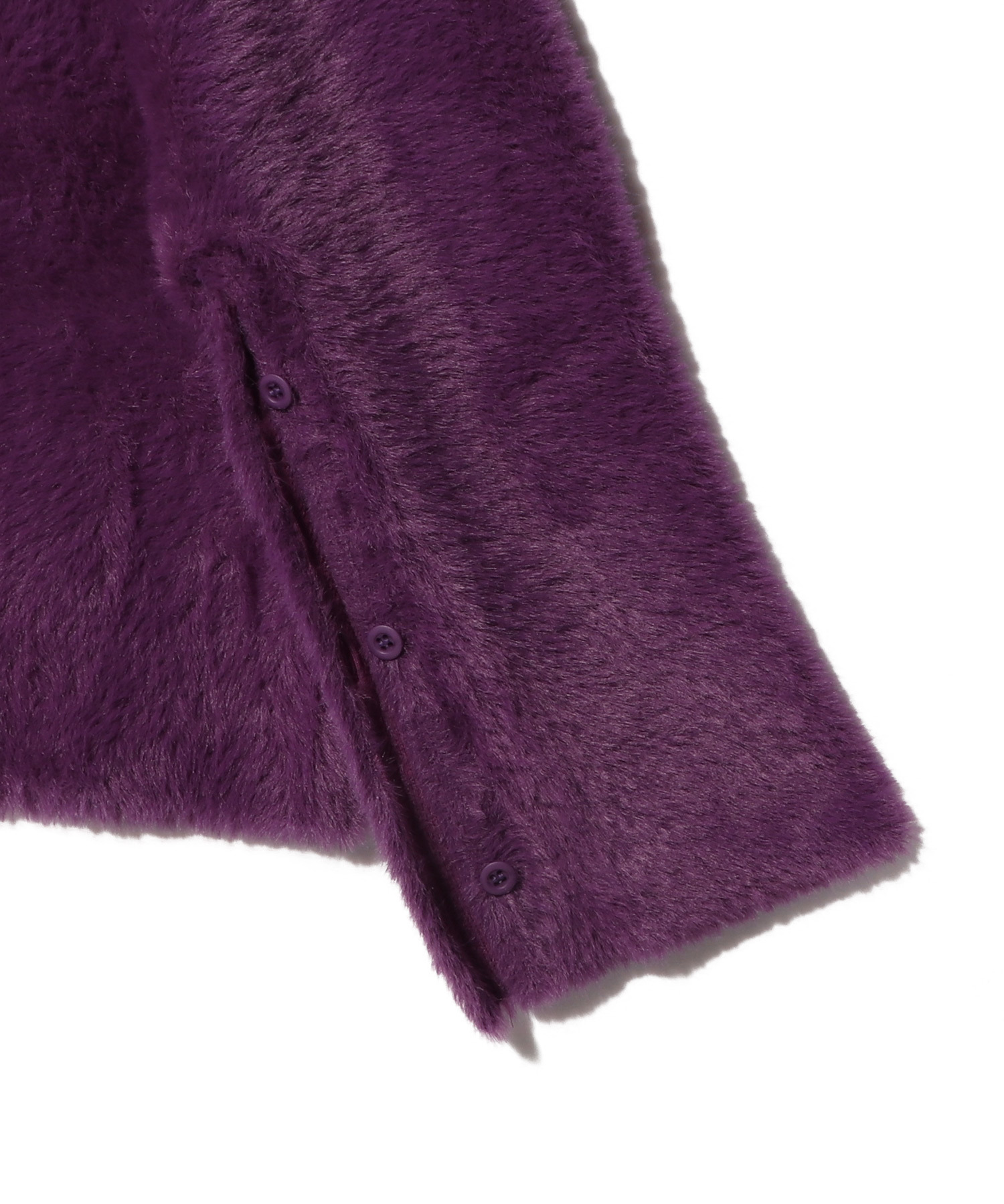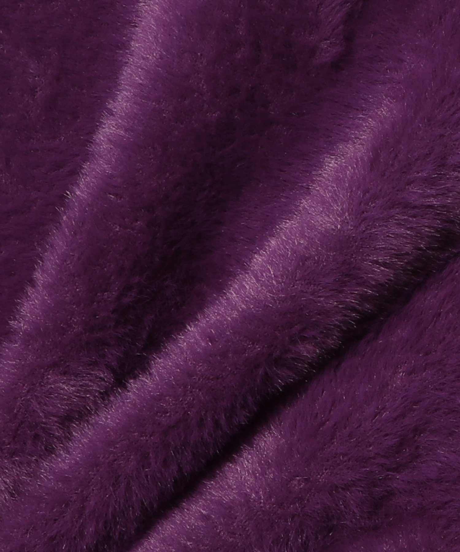ナイロンファーを表面に、ポリエステルを裏面にしたダブルフェイスの編地を使用。程よく落ち感のある編地で、カーディガンのように羽織りやすい1枚。