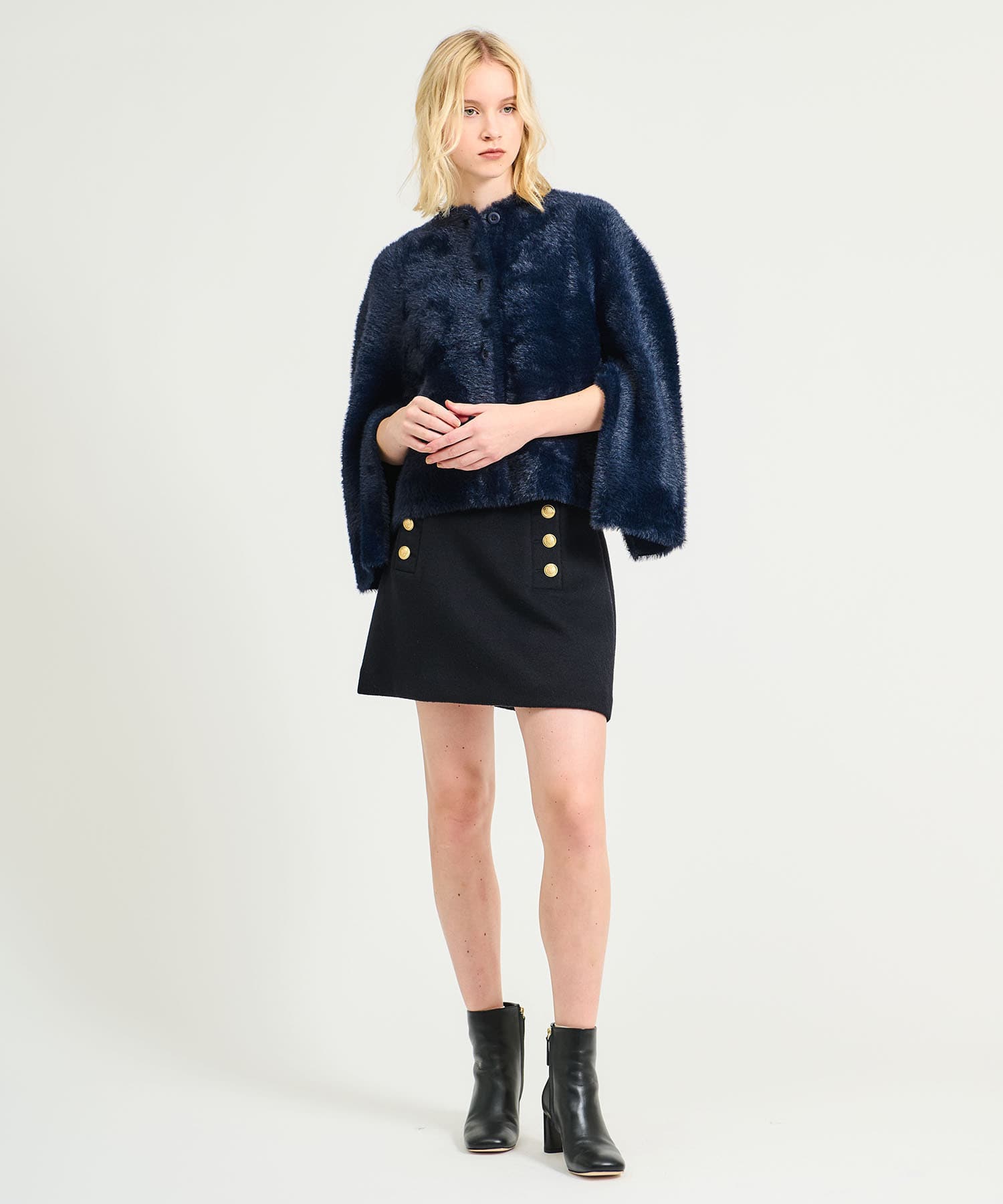 ふわっとしたファーが暖かみのあるショートアウター。