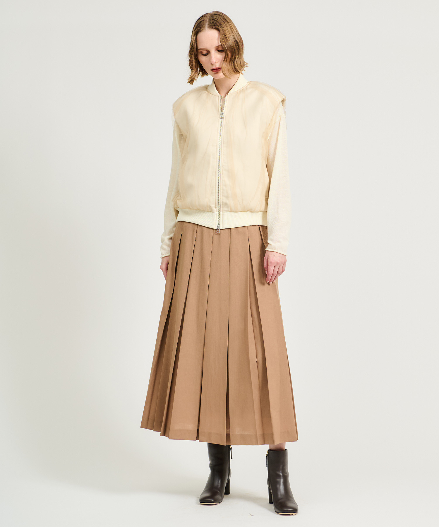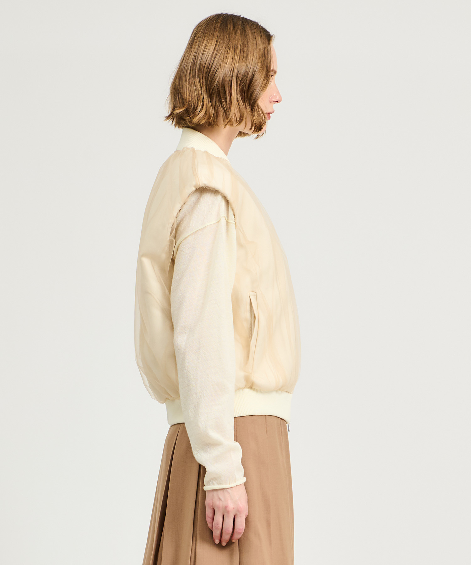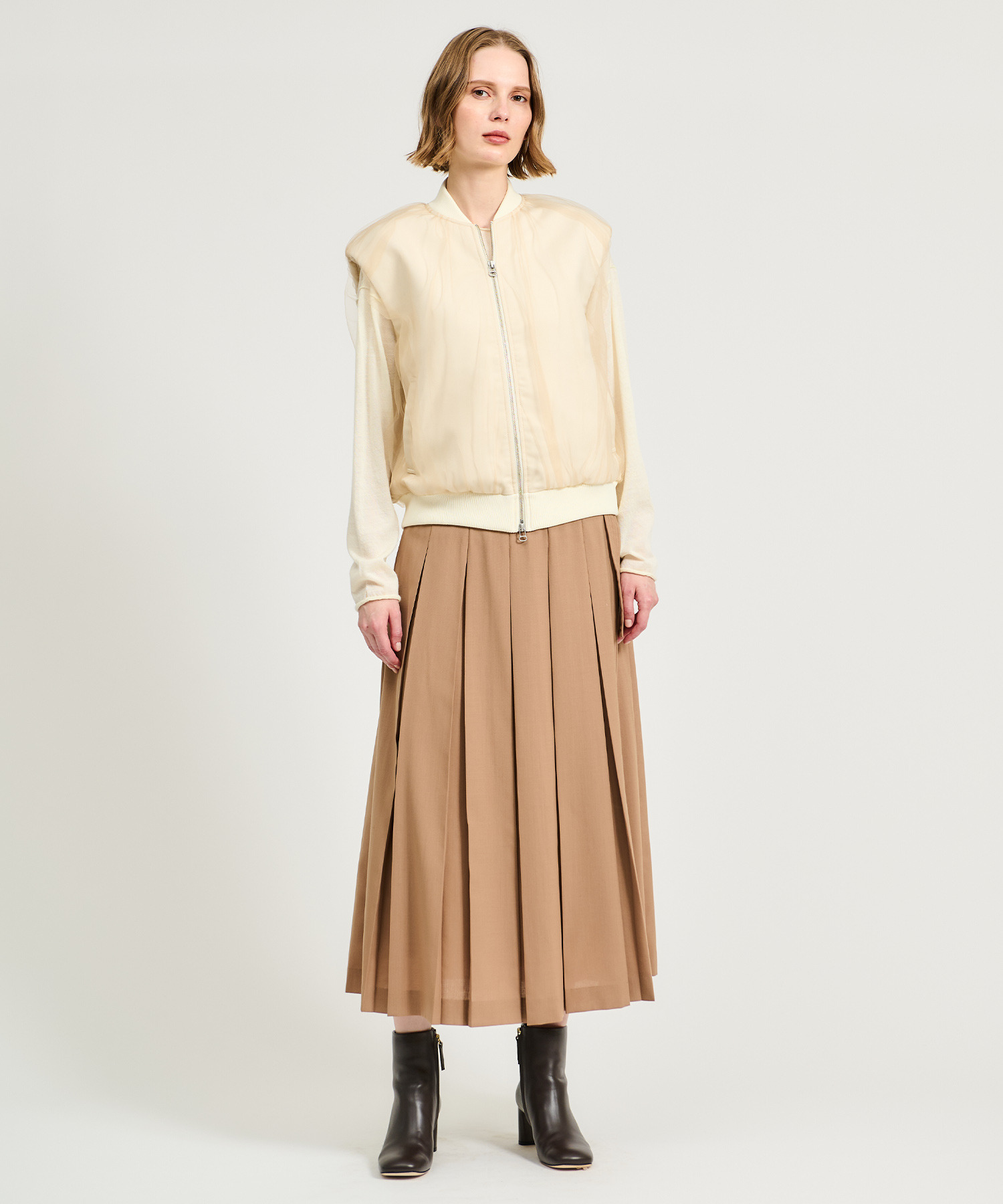 レイヤードスタイルも楽しめるジレブルゾン。