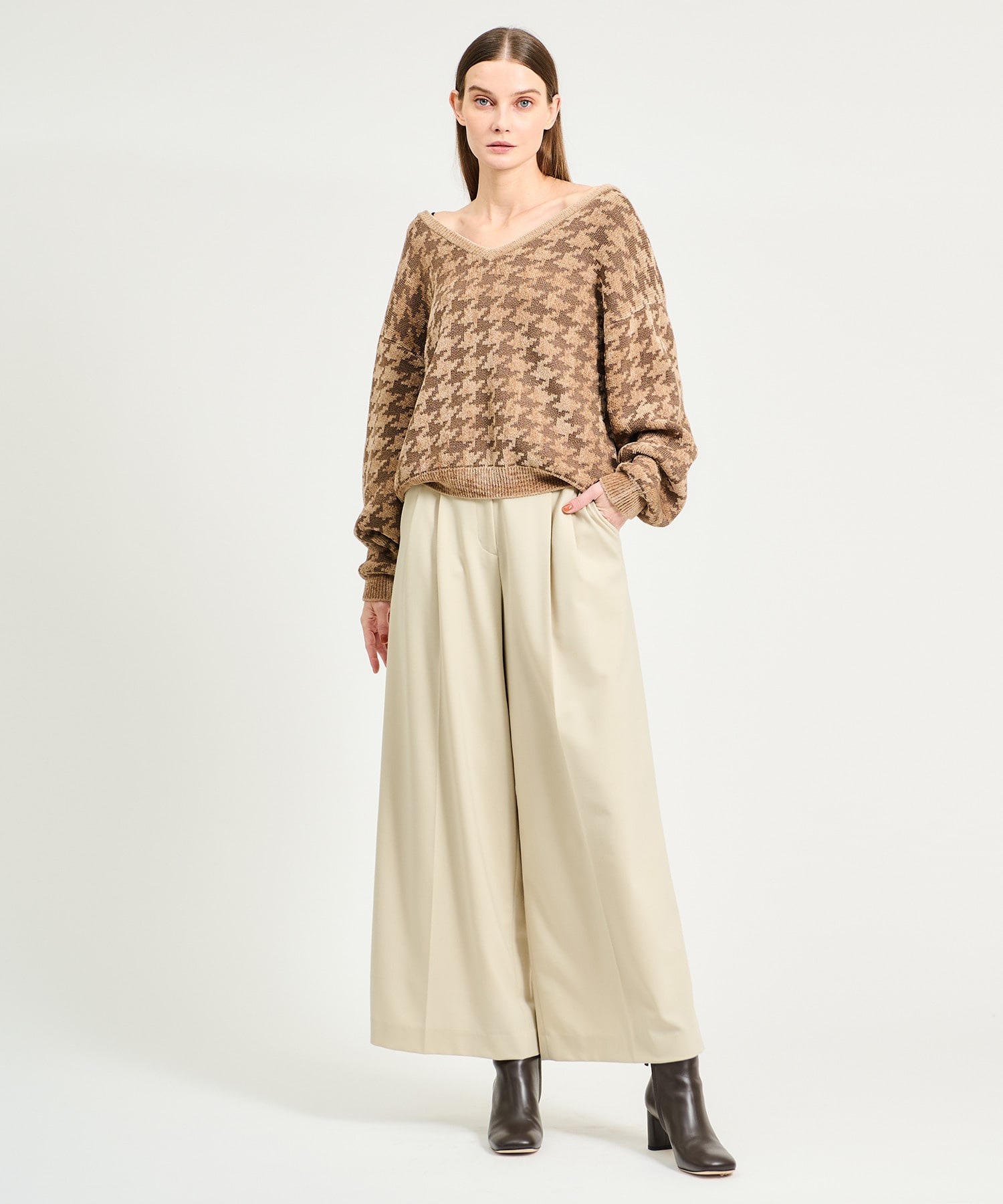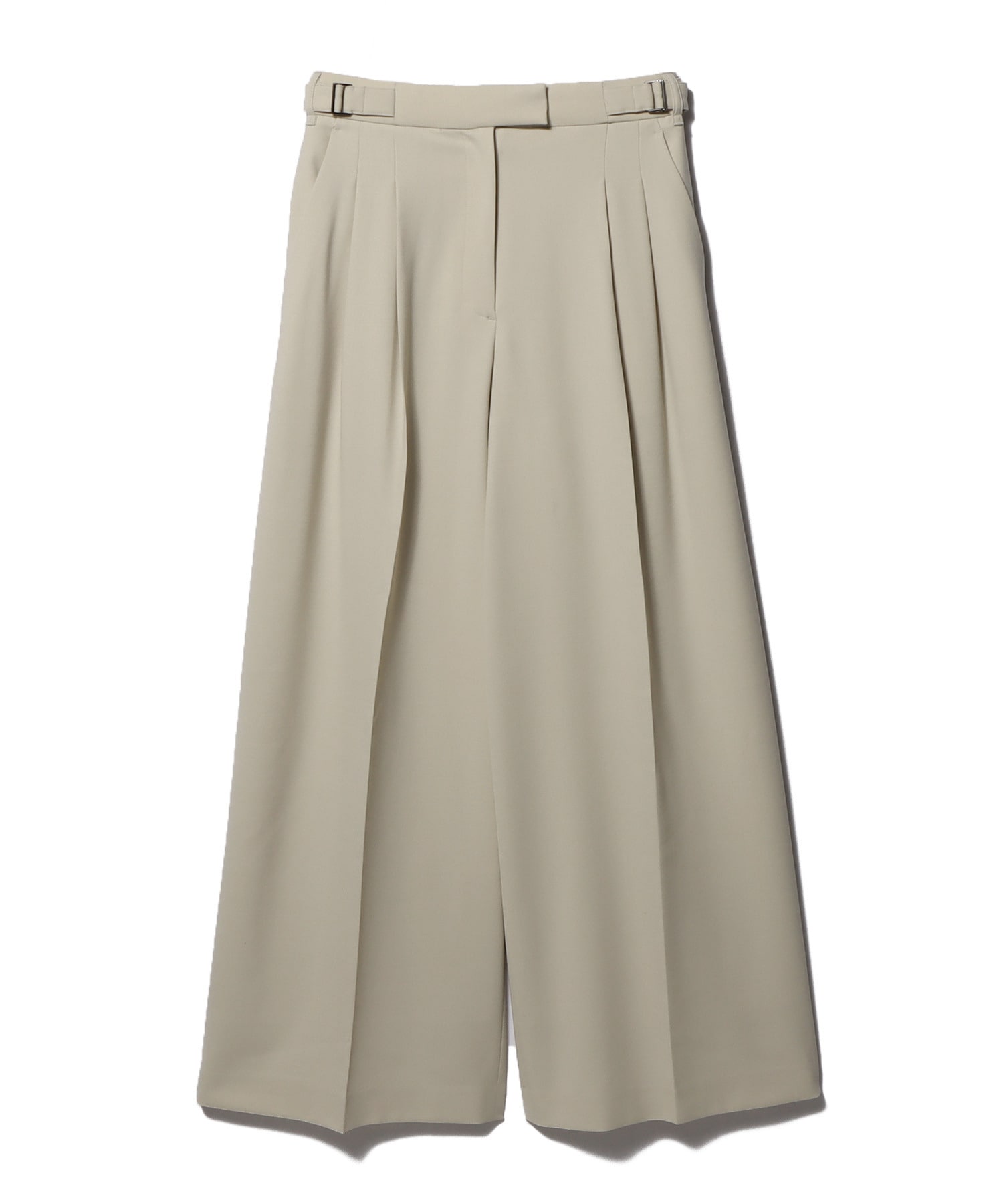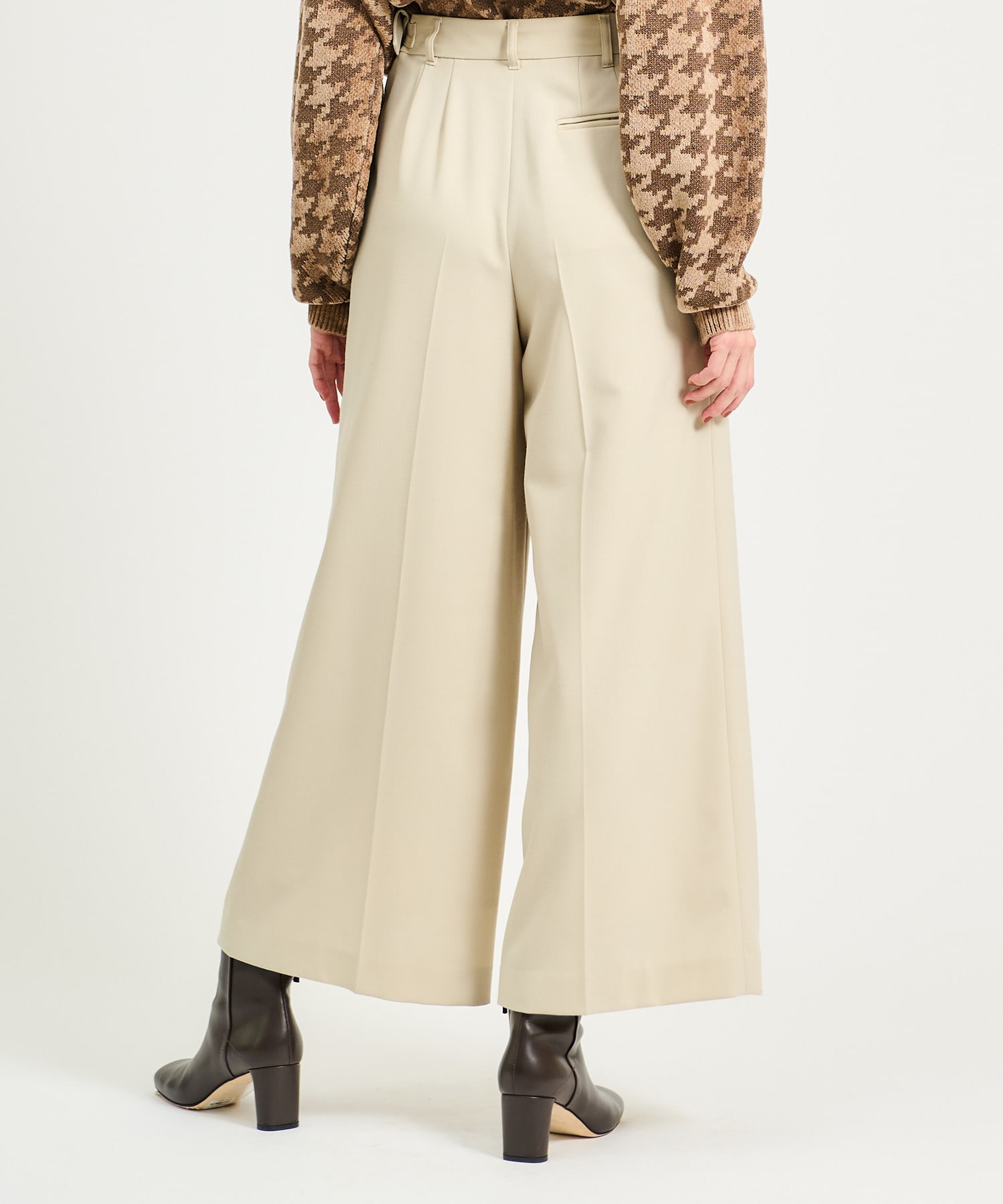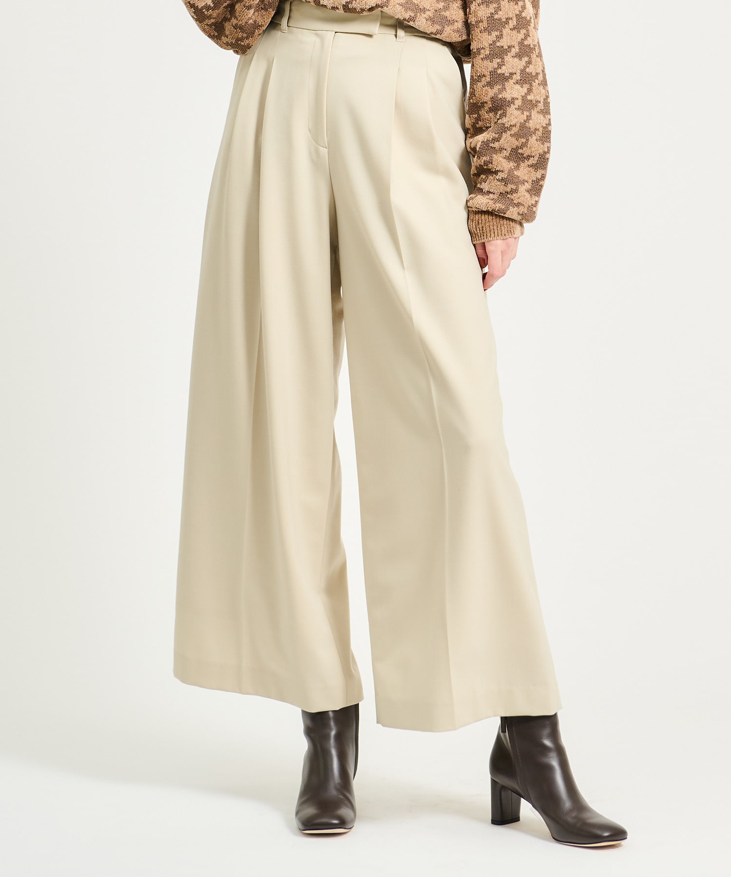 しなやかなドレープとマスキュリンな表情が魅力の、タック入りウール混ワイドパンツ。
