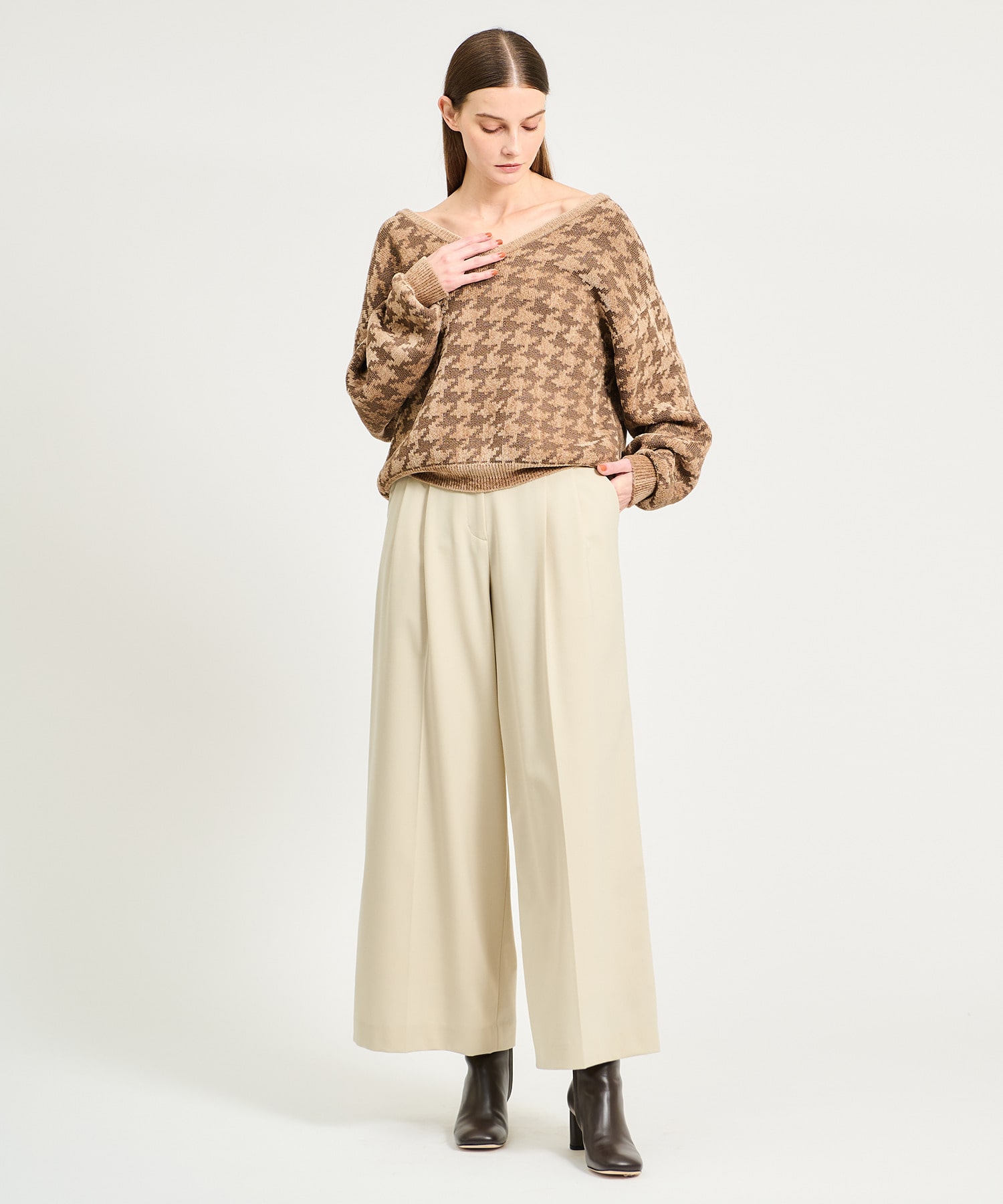 メンズライクなムードを纏いながらも、どこか女性らしさが薫る、今季の主役ボトムとして取り入れたい一本です。