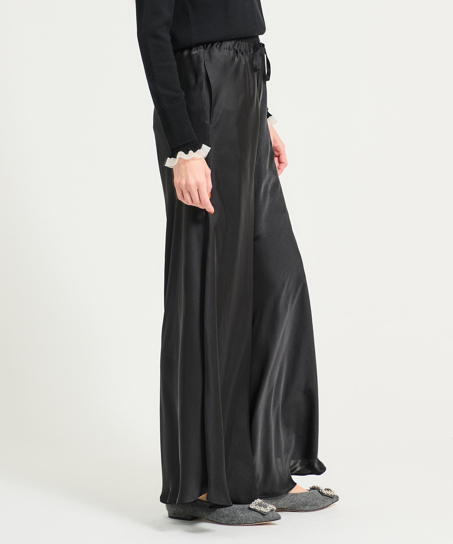 重たくなりがちな秋冬スタイルに、艶と動きを添えるバイアスパンツが登場。
