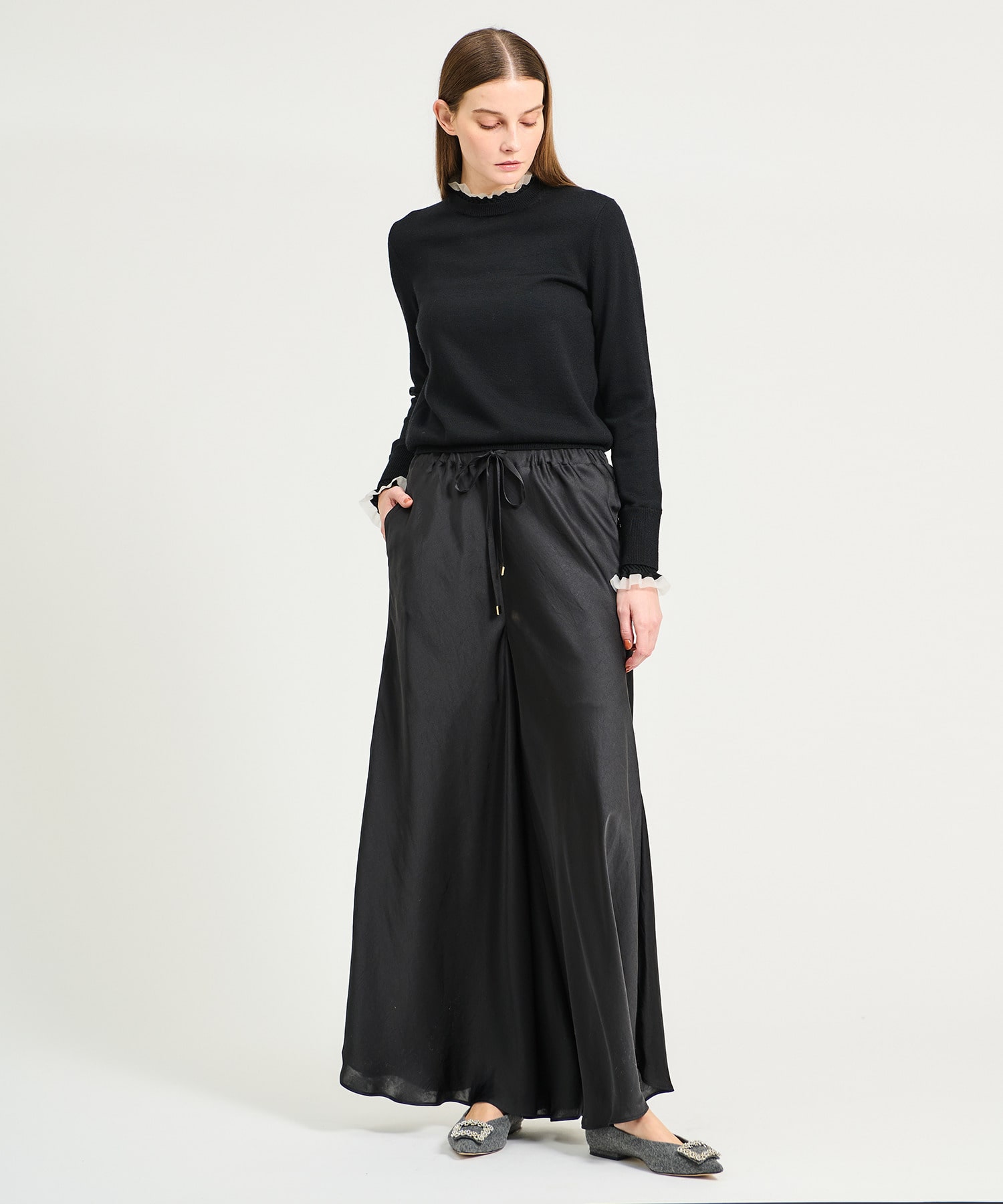 ウール素材が主役になるシーズンだからこそ、しなやかな落ち感とさりげない光沢が引き立つ一本は、コーディネートに程よい抜け感と女性らしさをプラスしてくれます。