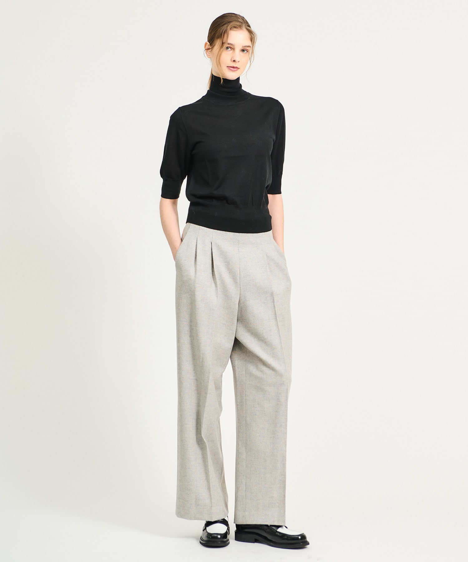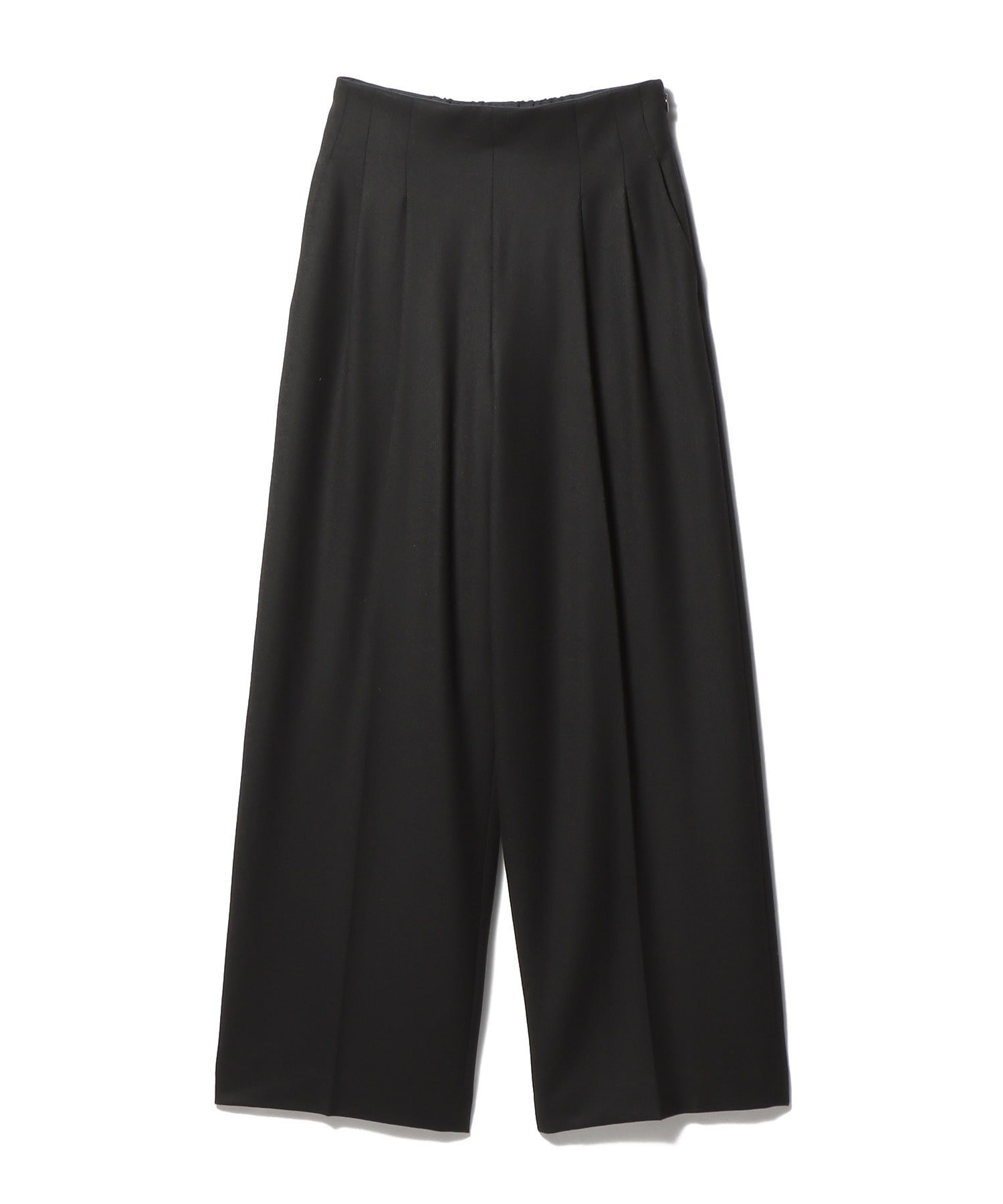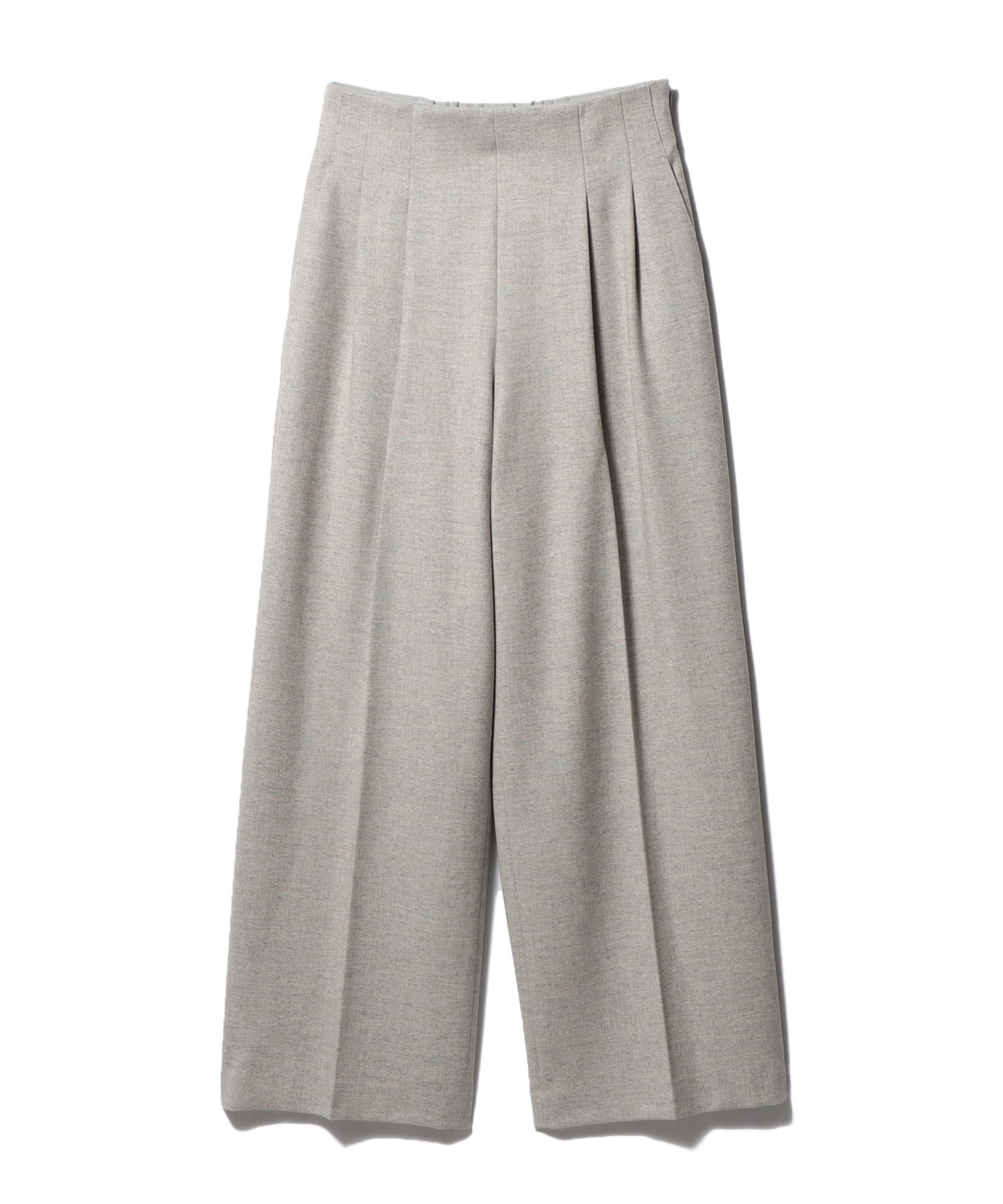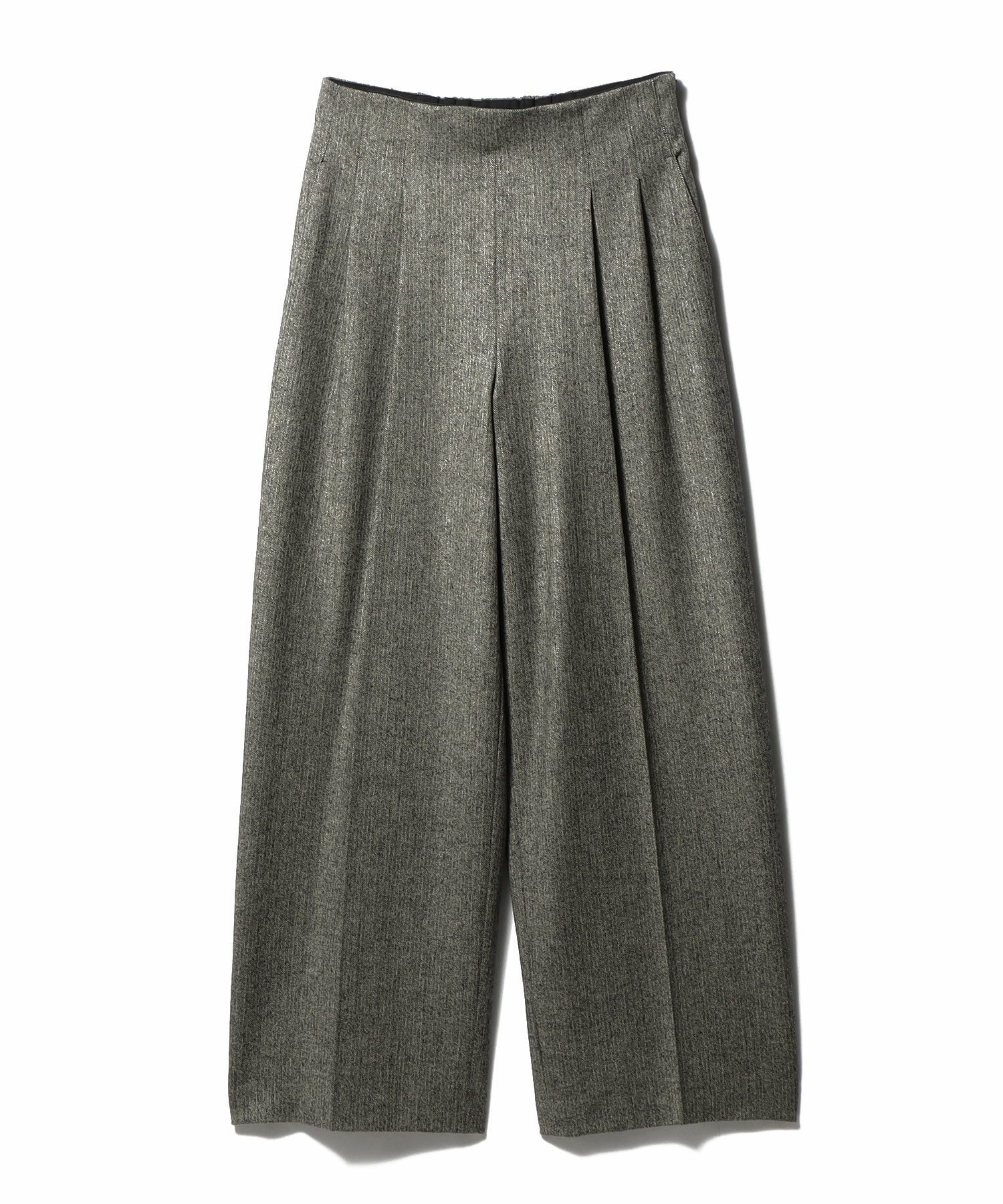 サスティナブルウールとウールを使用したストレッチツイードのハイウエストタックパンツ。