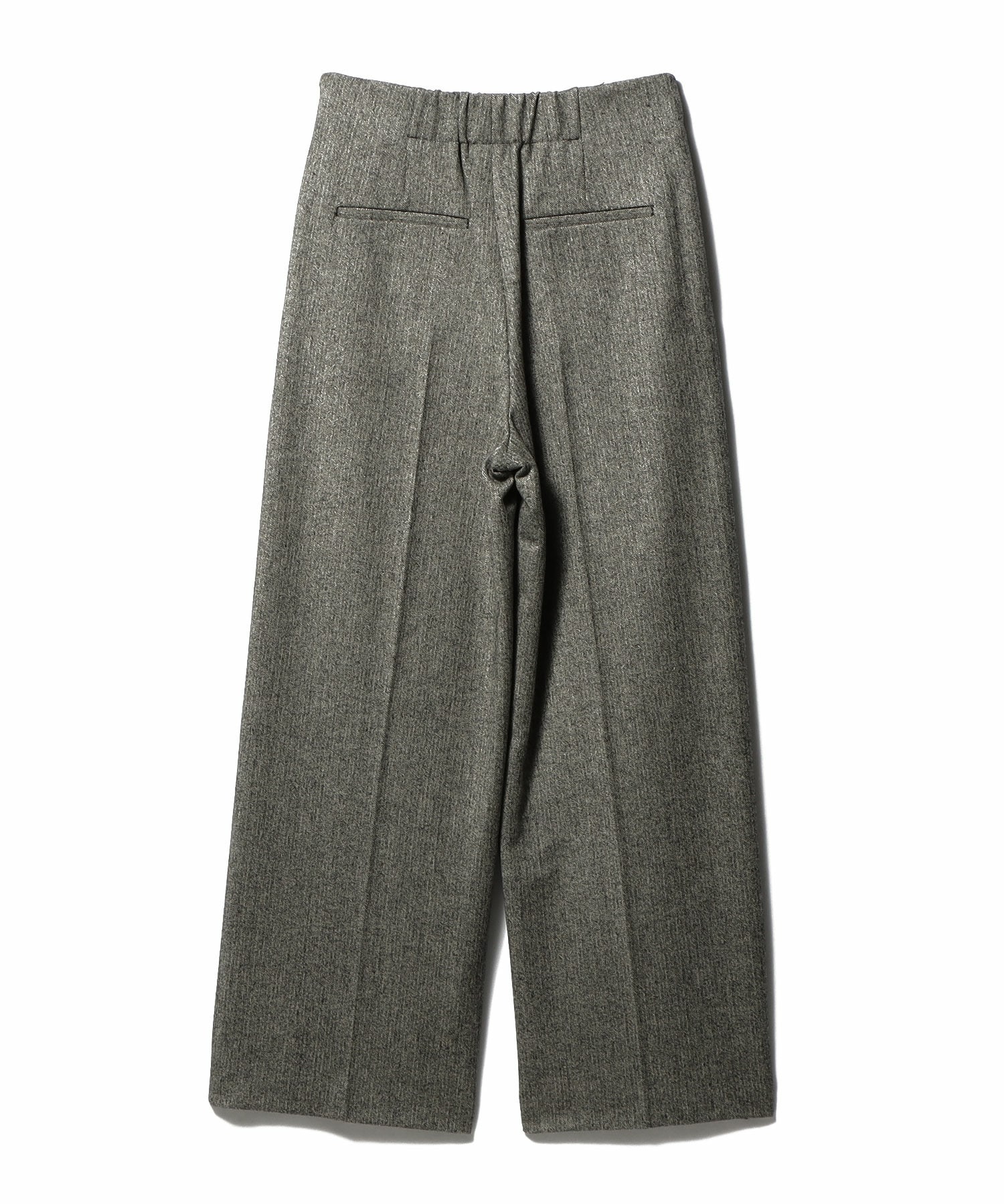 ウエストの後ろを平ゴムを入れることで着用しやすい仕様に。ウエストの位置を高めに設定しているので、スタイルアップ効果も期待できるデザインです。